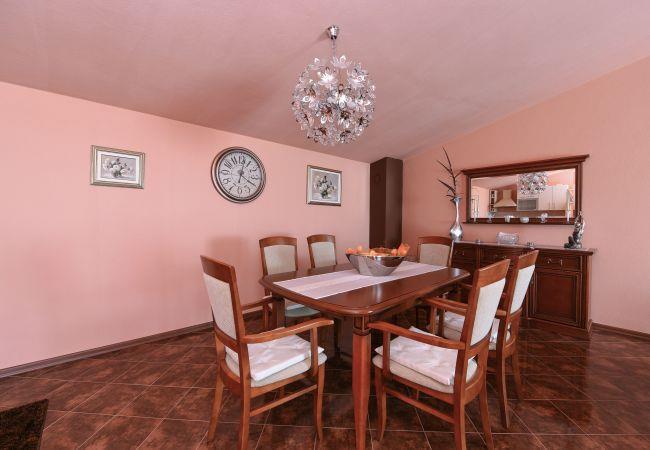 Villa consists of 3 bedrooms, 2 bathrooms and 2 kitchen. On the first floor is a spacious living room with dining room, kitchen, two bedrooms and a bathroom with shower and washing machine. There are 2 living rooms and two kitchen. Everything is decorated in traditional charming way. Lots of warm and pastel colors makes interior cozy and welcoming.