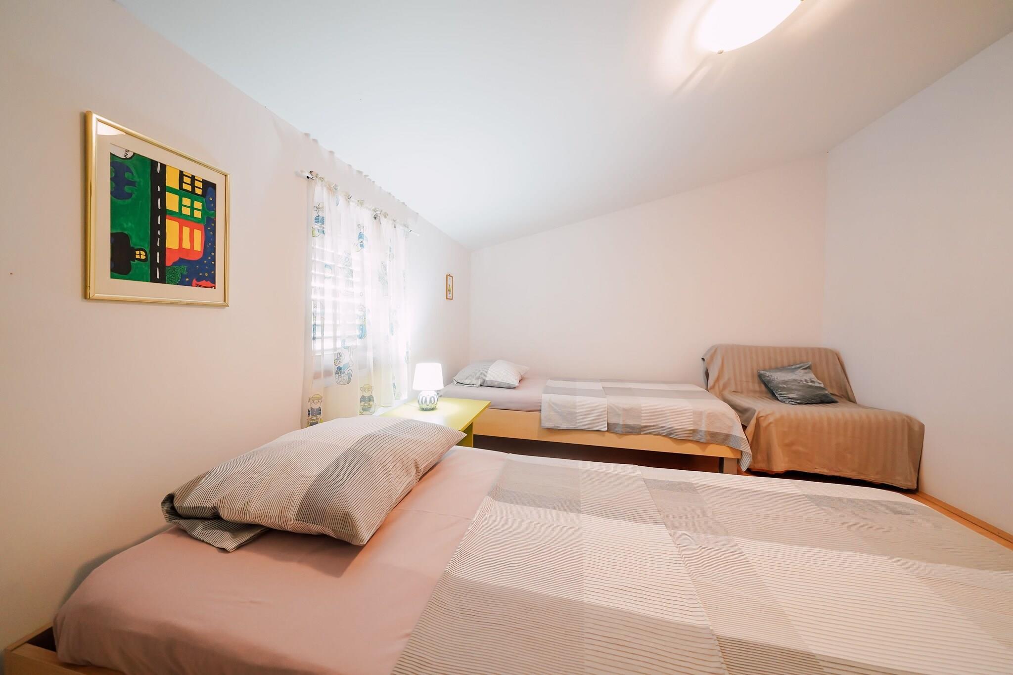 Denne komfortable 2-værelses lejlighed ligger i Ljubac og kan rumme op til 5 gæster. Beliggende kun 80 meter fra havet og stranden, er det perfekt for dem, der søger en flugt ved havet. Lejligheden ligger på 1. sal og har opholdsstue med tv og opholdsområde, fuldt udstyret køkken med spisebord og privat indhegnet terrasse på 30 m². Gæsterne kan nyde fælles faciliteter, herunder en swimmingpool, boblebad, terrasse, have med møbler, grill, liggestole, parasol og et loungesæt. Aircondition, vaskemaskine og gratis WiFi er til rådighed for din komfort. Parkering er tilgængelig på stedet. I nærheden finder du almindelige forsyninger inden for 300 meter og Ražanacs centrum kun 4 km væk. Det pulserende natteliv og hospital i Zadar ligger 15 km fra ejendommen, hvilket gør denne lejlighed til en ideel base for afslapning og bekvemmelighed.