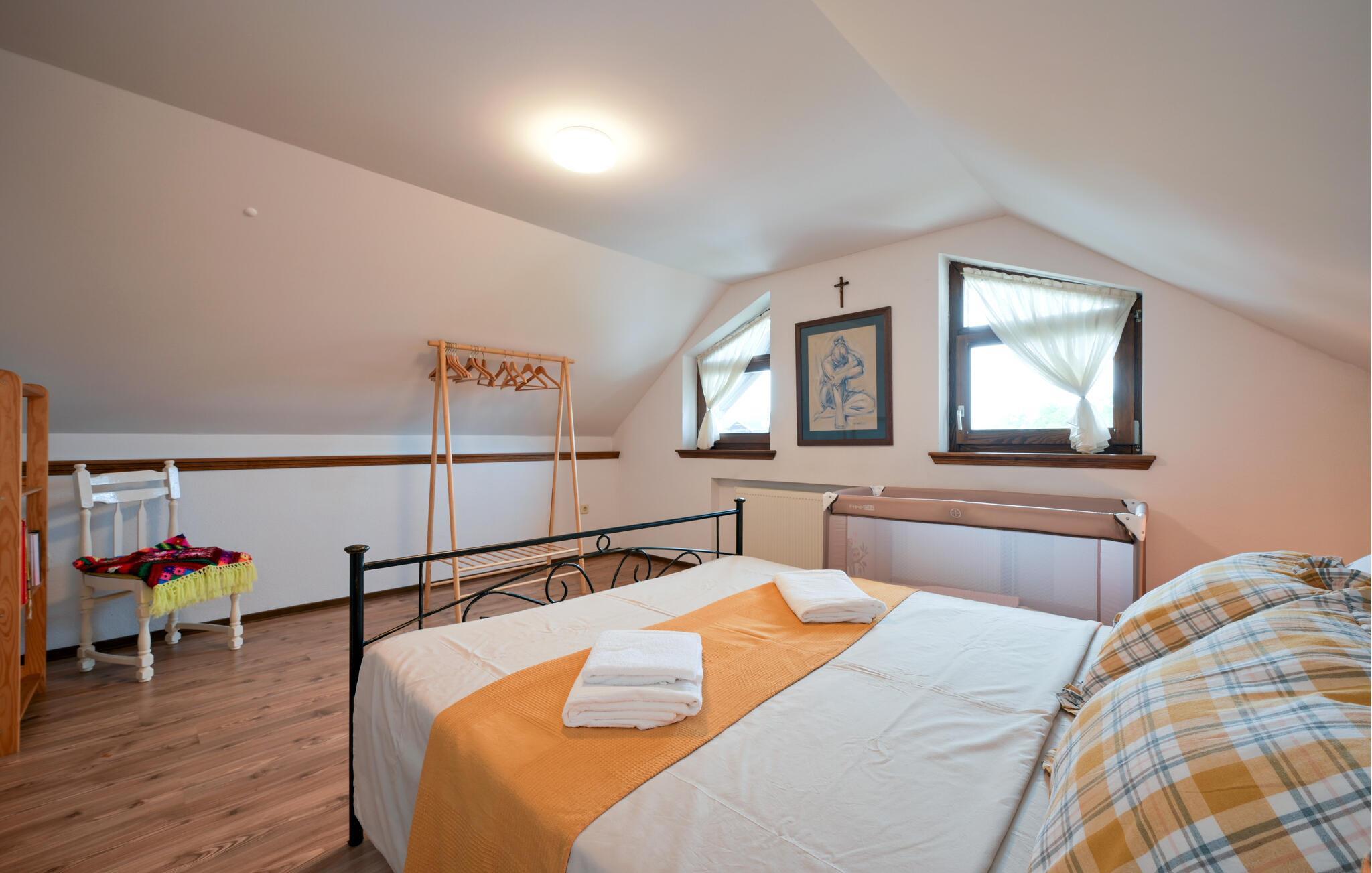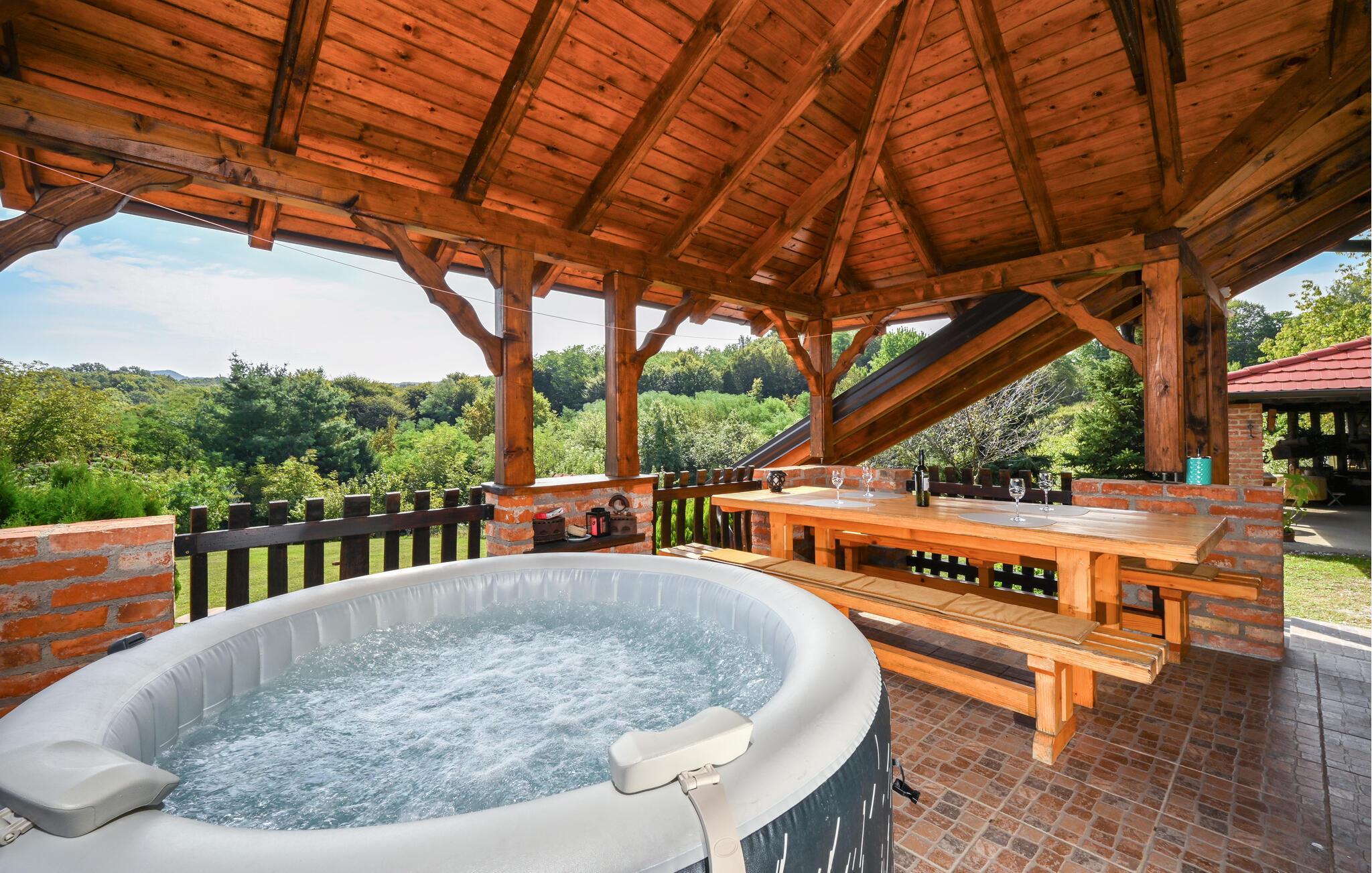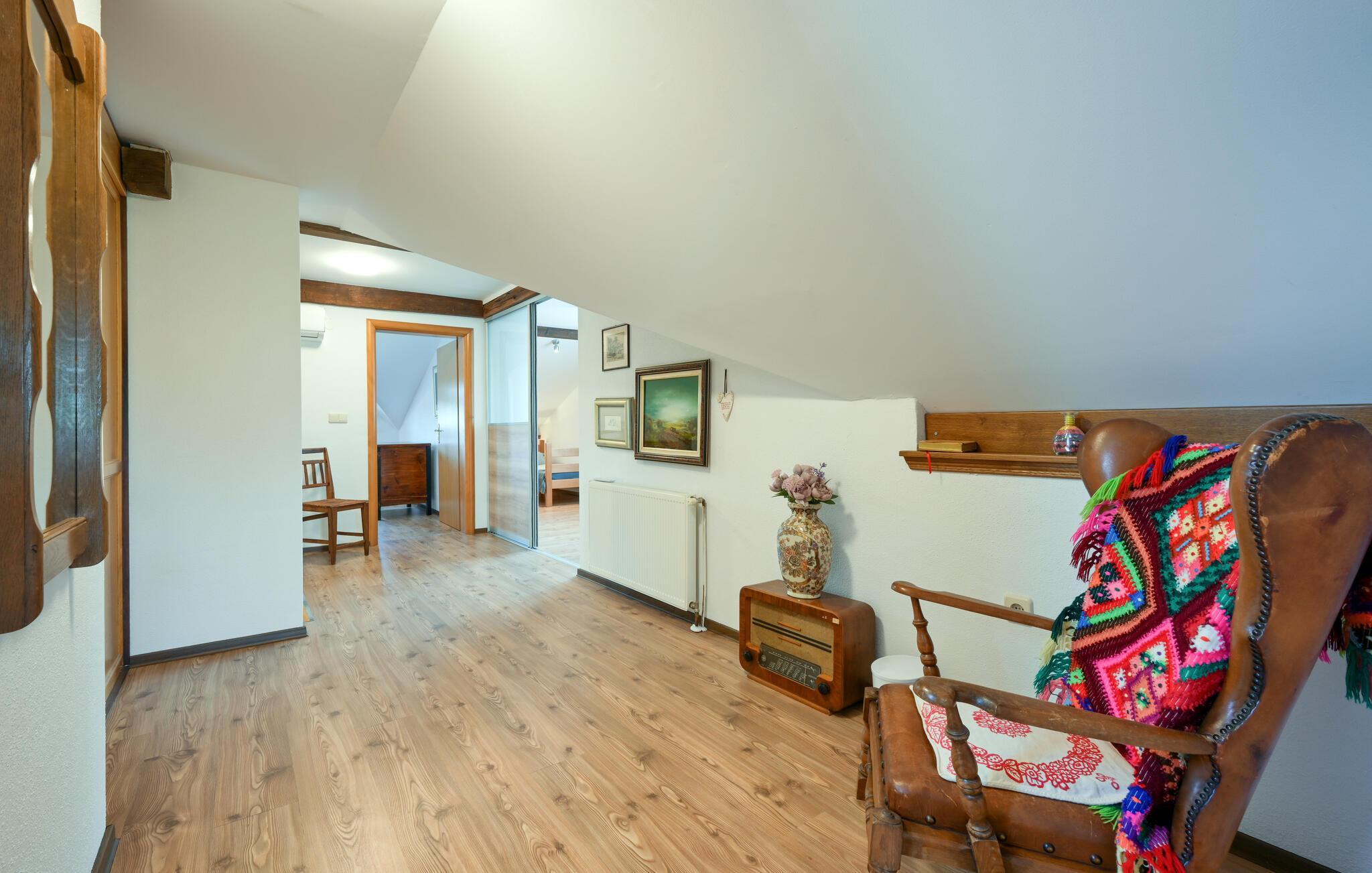 Forkæl jer selv med en drømmeferie i dette charmerende feriehus med pool. Dette hus byder jer velkommen med en hyggelig atmosfære, hvor tradition og komfort smelter harmonisk sammen. Lyse møbler, gennemtænkte detaljer og masser af plads sikrer, at I føler jer velkommen fra første øjeblik. De komfortable lædersofaer inviterer jer til sociale sammenkomster eller en rolig aften foran fjernsynet. I køkkenet med det lange spisebord kan familie og venner nemt finde plads til at spise sammen eller planlægge den næste feriedag. På den overdækkede altan kan I nyde afslappende øjeblikke når som helst på dagen, hvad enten det er til morgenmad med udsigt over de grønne områder eller til en hyggelig middag. I den rummelige have, omgivet af velplejede hække og blomstrende buske, har børnene masser af plads til at lege. Forfrisk jer selv i poolen eller find et roligt sted at nyde solen. Et særligt blikfang er det charmerende murstensfontæne, der tilføjer et malerisk præg til ejendommen. Tag en slentretur til vandet og nyd roen i den omkringliggende natur. Tag en tur til den nærliggende by Novi Marof og oplev dens charmerende torve, caféer og små butikker. Udforsk de grønne bakker på en vandretur eller cykeltur. Prøv regionale specialiteter på regionens traditionelle kroer og oplev de lokales varme gæstfrihed.