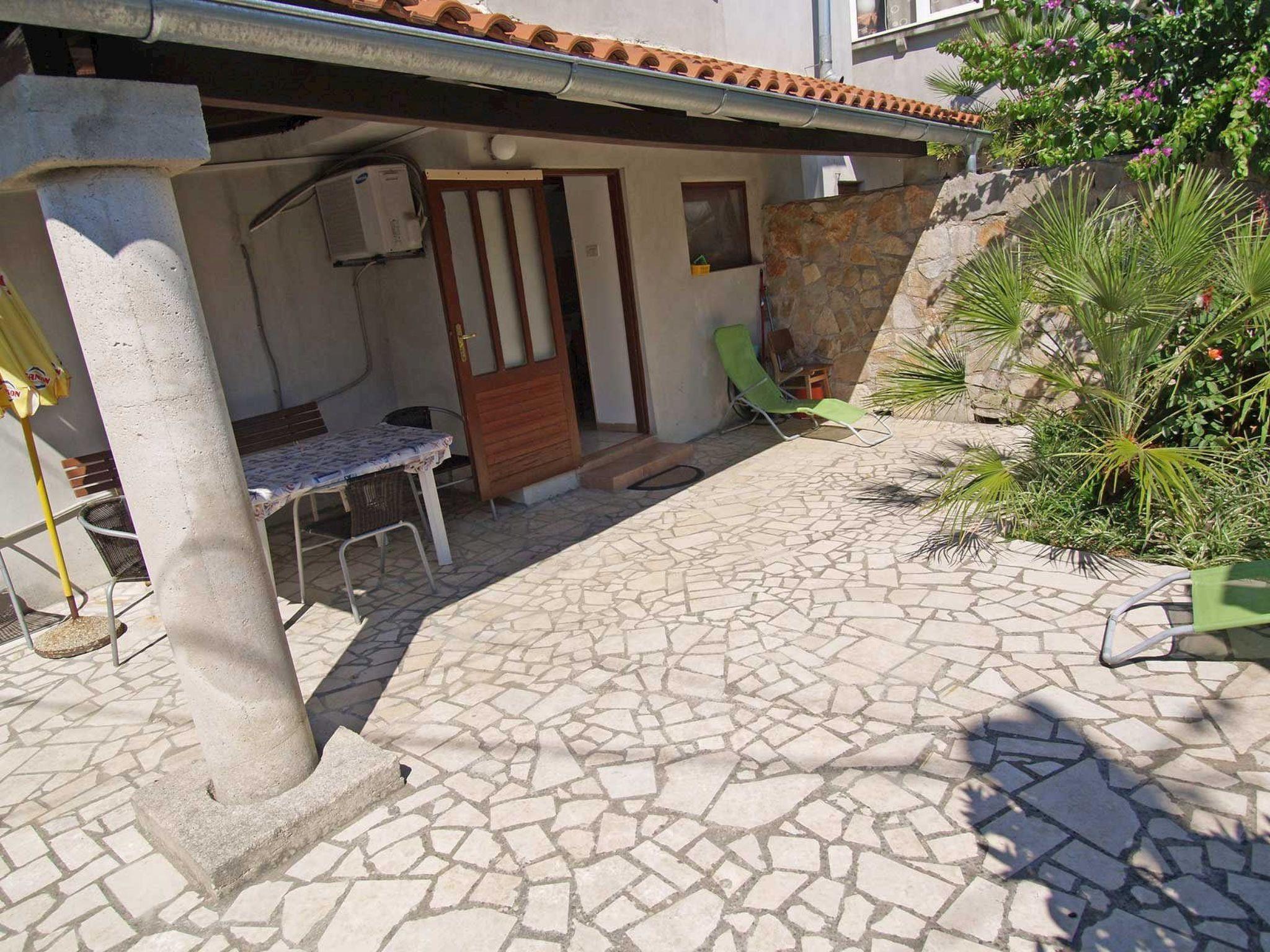 The outdoor area of Apartment Anastasia 1 adds to its appeal, offering a private garden for the exclusive use of its guests. The terrace provides a tranquil spot for morning coffees or evening relaxation, where the peaceful ambiance of Veli Lošinj can be fully appreciated. It's an inviting space where guests can unwind after a day of exploration or simply enjoy the company of each other in a lush, serene setting.