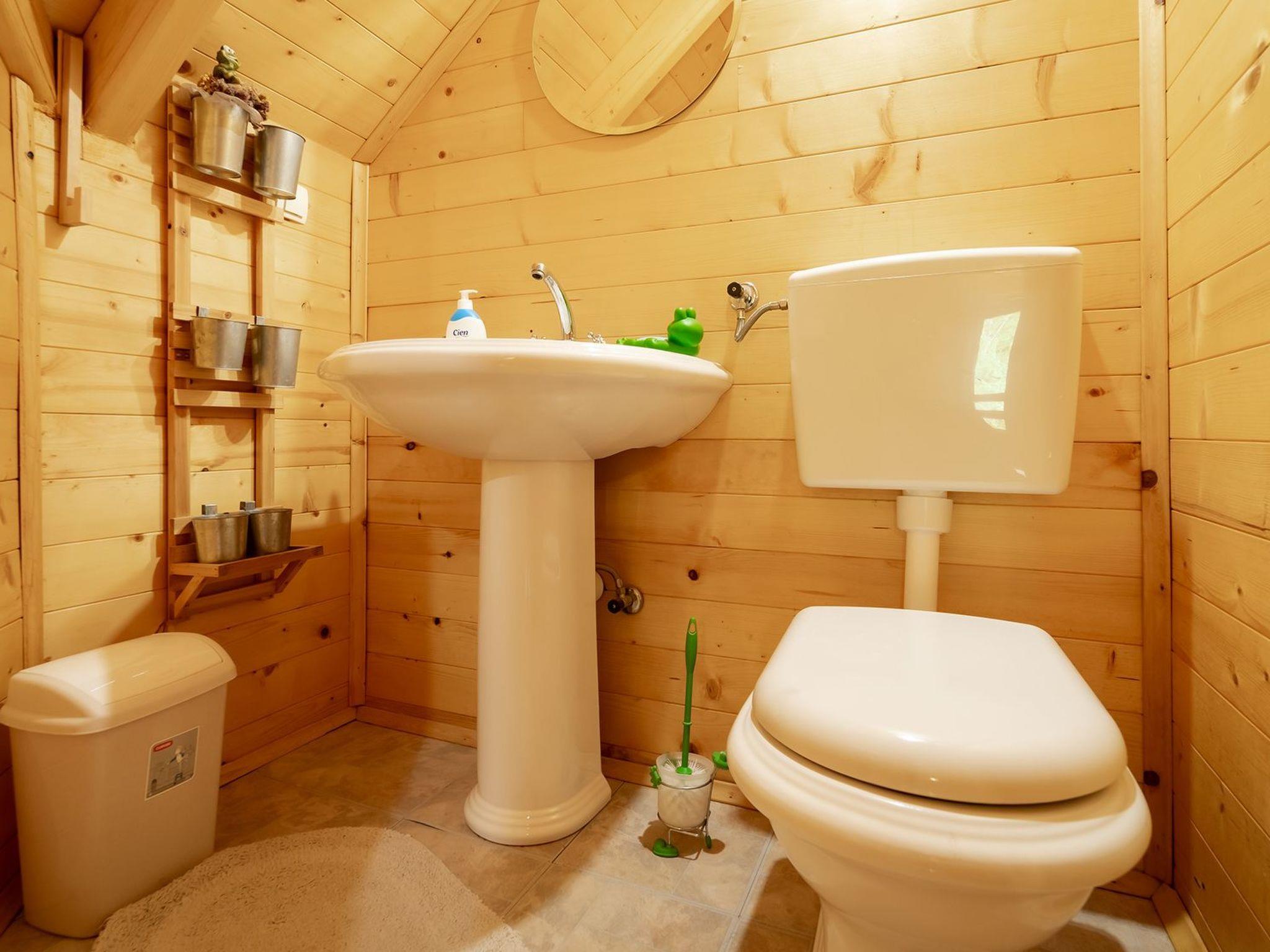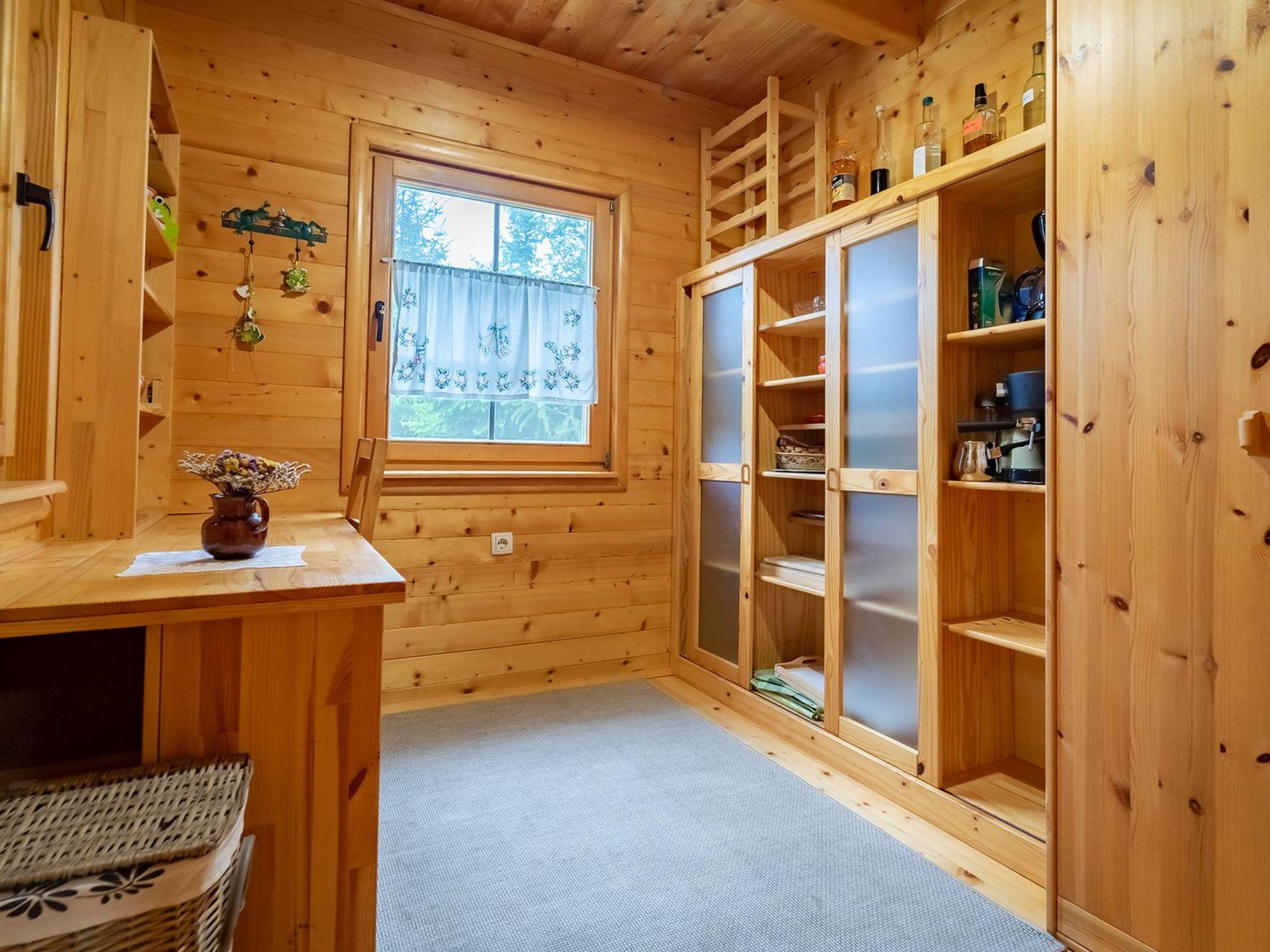 The beautiful wood cottage consists of two floors, 80 m² in total. Ground floor is about 40 m² and comprises of the following rooms: a living room with a fireplace, a flatscreen TV with SAT, a double sofa bed, bathroom with shower and toilet, kitchen/dining room with oven, ceramic hob, fridge, deep freezer microwave, toaster, coffee machine, electric kettle and dishwasher and washing machine. On the first floor there are three bedrooms and toilet. One bedroom has a double bed (1.60m), sofa bed for one person and a balcony with beautiful forest views. The second bedroom has a double bed (1.60m) and the third bedroom has two single beds ( 2x 0.90 m ).