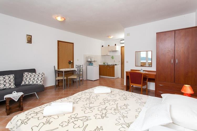 Apartments Ana er beliggende på den vidunderlige Lopud-ø i Dubrovniks øhav og kun 70 meter fra det smukke Adriaterhav. Ejendommen tilbyder seks boligenheder med balkoner, havudsigt og gratis WiFi-adgang.Denne dejlige studiolejlighed med havudsigt har gratis WiFi, aircondition og LCD-satellit-tv. Tekøkkenet er udstyret med komfur, brødrister, vandkedel, køleskab og kaffemaskine. Badeværelset har brusekabine og hårtørrer. Balkon med udendørs opholdsområde tilbyder en betagende udsigt over Adriaterhavet. Denne studiolejlighed kan være forbundet med lejlighed ved siden af, hvis det er nødvendigt for større grupper af mennesker op til syv voksne.Apartments Ana Lopud er beliggende på den smukke ø Lopud. Lopud er en del af øgruppen Elaphiti Islands og har som sådan bemærkelsesværdig skønhed og krystalklart hav. Denne ø er berømt for sine uberørte skove, overflod af fisk og skaldyr og den smukke sandstrand Šunj Ejendommen er beliggende i et roligt område på øen, 70 m fra s ea, og 5 minutters gang fra centrum af øen, hvor gæsterne kan finde mange barer og restauranter. Den nærmeste kaffebar kan nås på mindre end et minut.Dubrovnik Lufthavn ligger 30 km fra ejendommen.