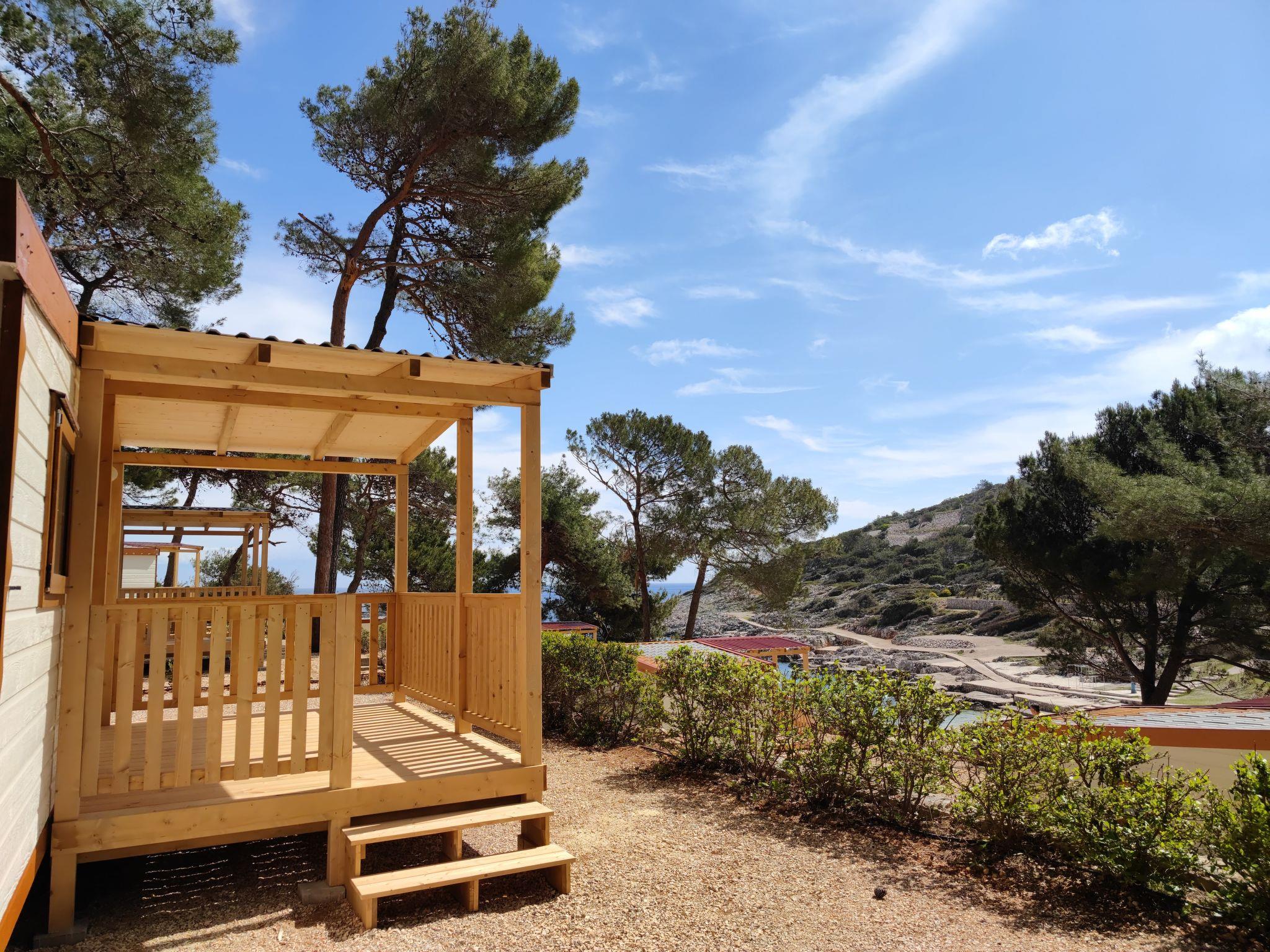 "Baia Comfort Plus", 3-room mobile home 22 m2. Practical furnishings: living/dining room with satellite TV and air conditioning. 1 room with 1 french bed (140 cm), separate WC. 1 room with 2 beds (70 cm). Kitchenette (4 gas rings, freezer). Shower/WC. Air-conditioning (extra). Terrace 10 m2, roofed. Terrace furniture. Parking (1 car). Please note: non-smoking house. Maximum 2 small pets/ dogs allowed.