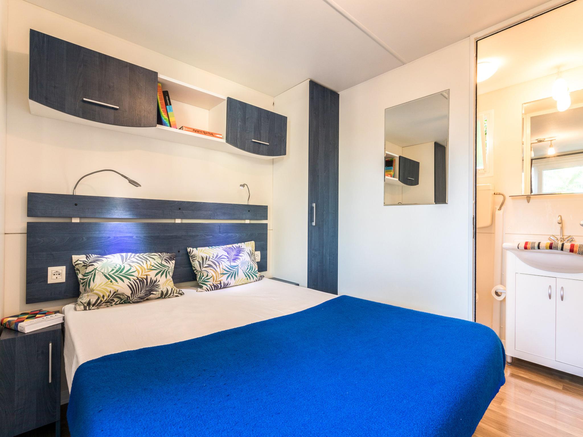 "Baia Comfort Superior", 3-room mobile home 32 m2. Practical furnishings: living/dining room with 1 sofabed, satellite TV and air conditioning. 1 room with 1 french bed (140 cm), shower/WC. 1 room with 2 beds (70 cm). Kitchenette (4 gas rings, freezer). Shower/WC. Air-conditioning (extra). Heating not available in all rooms. Terrace 10 m2, roofed. Terrace furniture. Parking (1 car). Please note: non-smoking house. Maximum 2 small pets/ dogs allowed. Bed layout is flexible. There are more sleeping options available than the maximum number of people allowed which may, however, not be exceeded.