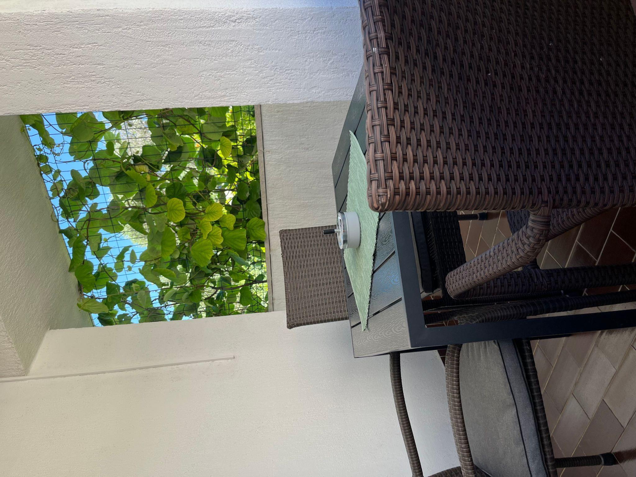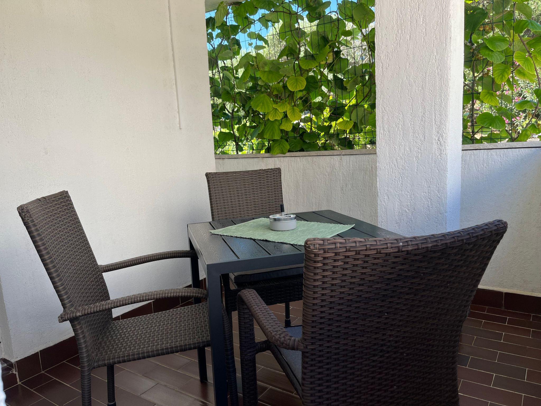 This apartmanet is for 3 people is on the ground floor and comprises a bathroom with a shower and WC, a living room with a double bed and an adjoining dining room, a kitchen and a terrace with a sea view. The kitchen is equipped with crockery for preparing and serving meals, cutlery for all guests, washing up liquid, a fridge, a stove. The dining room has a table and chairs for all guests.