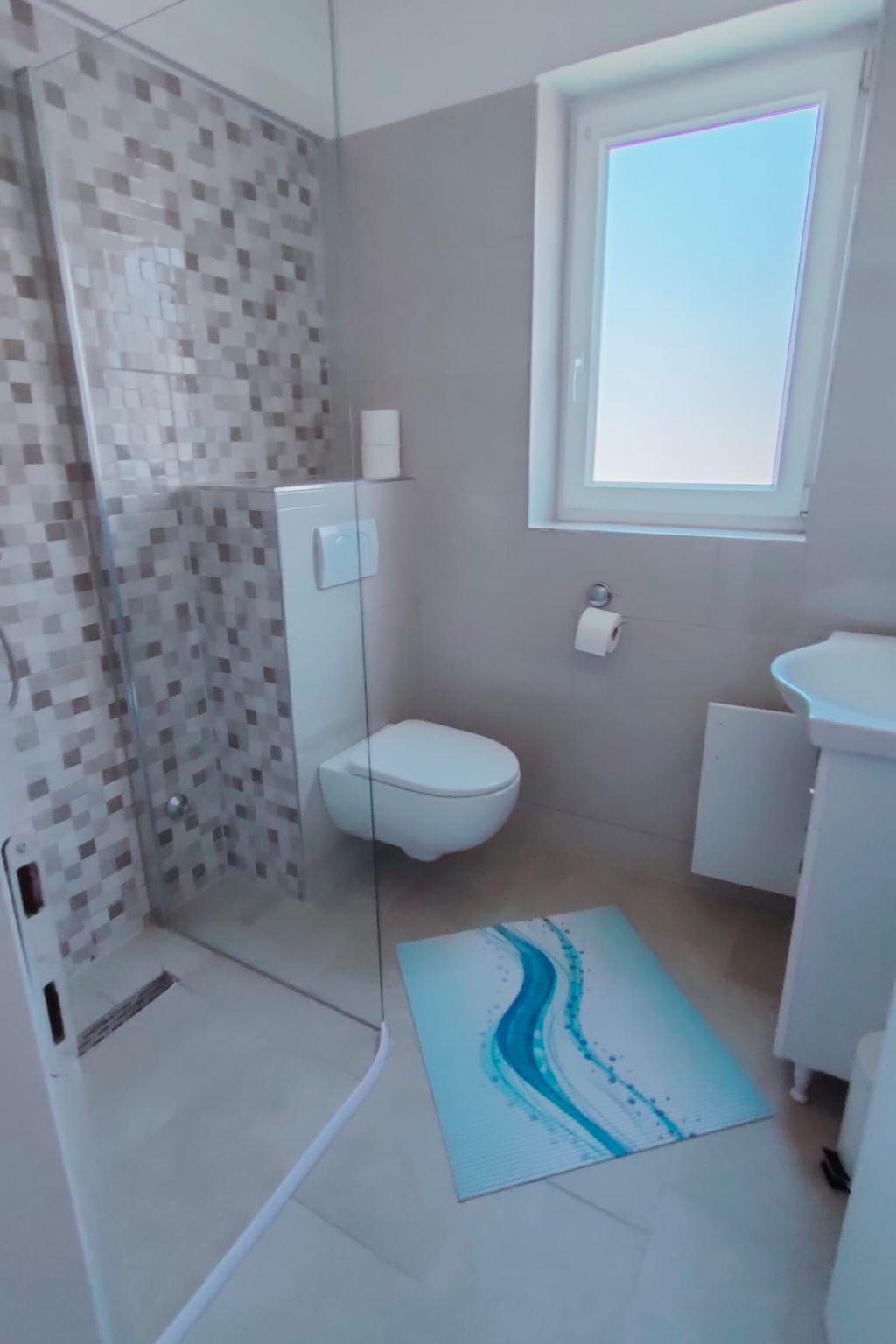 It is near the sea and the beautiful pine forest with a view of Veli Losinj, the Velebit mountain and the islands Rab and Pag. Sometimes you can see dolphins. Distances are as follows, as the crow flies: sea 130 m, nearest beach 130 m, nudist beach 500 m entfernt, town centre 450 m, sports facilities 350 m, grocery shop 400 m, restaurant 150 m, heavy traffic road 30 m, ambulance 850 m, bus stop 350 m, ferry harbour 850 m, nearest sports airport 10 km, nearest airport 90 km (Rijeka).