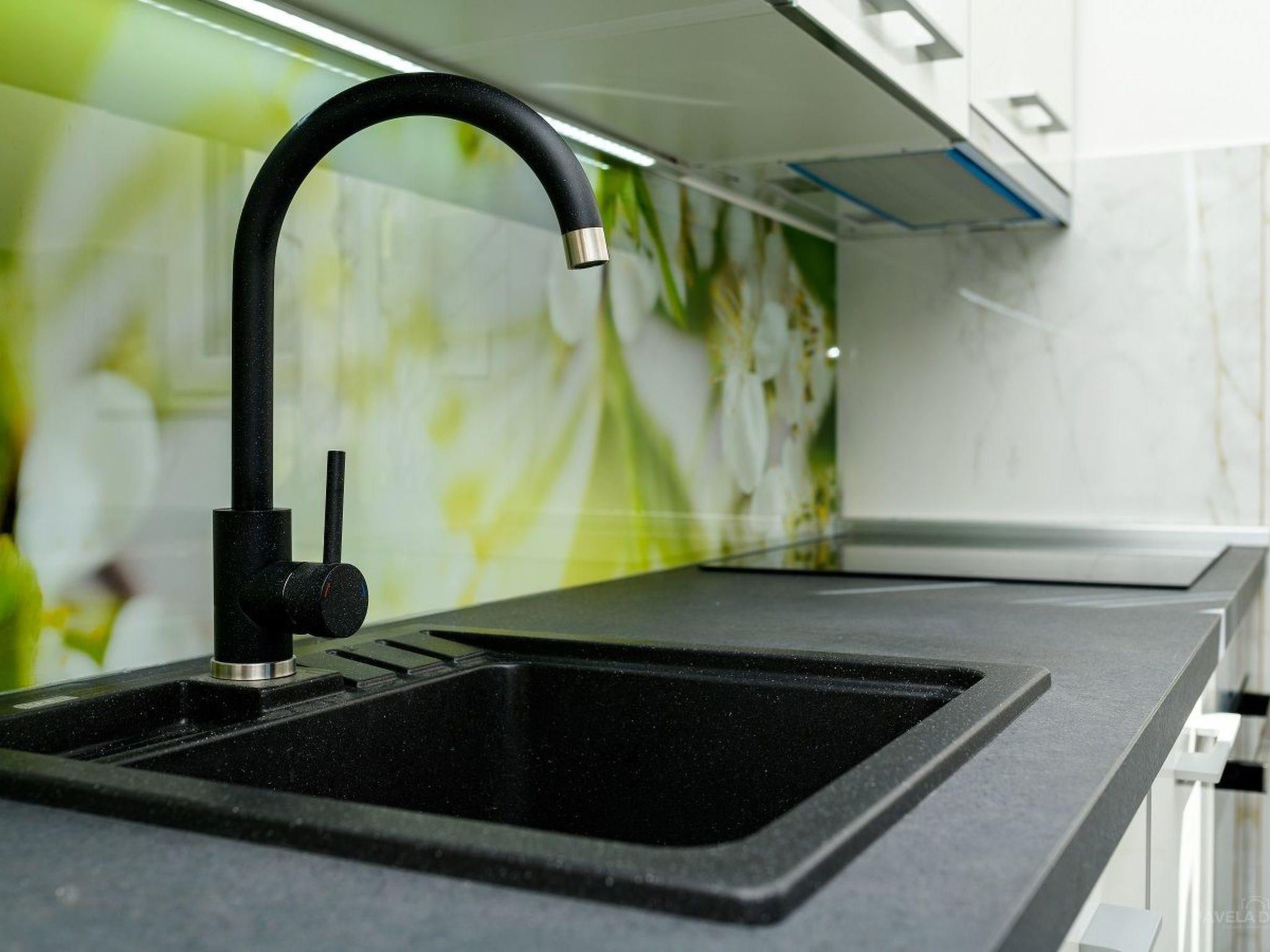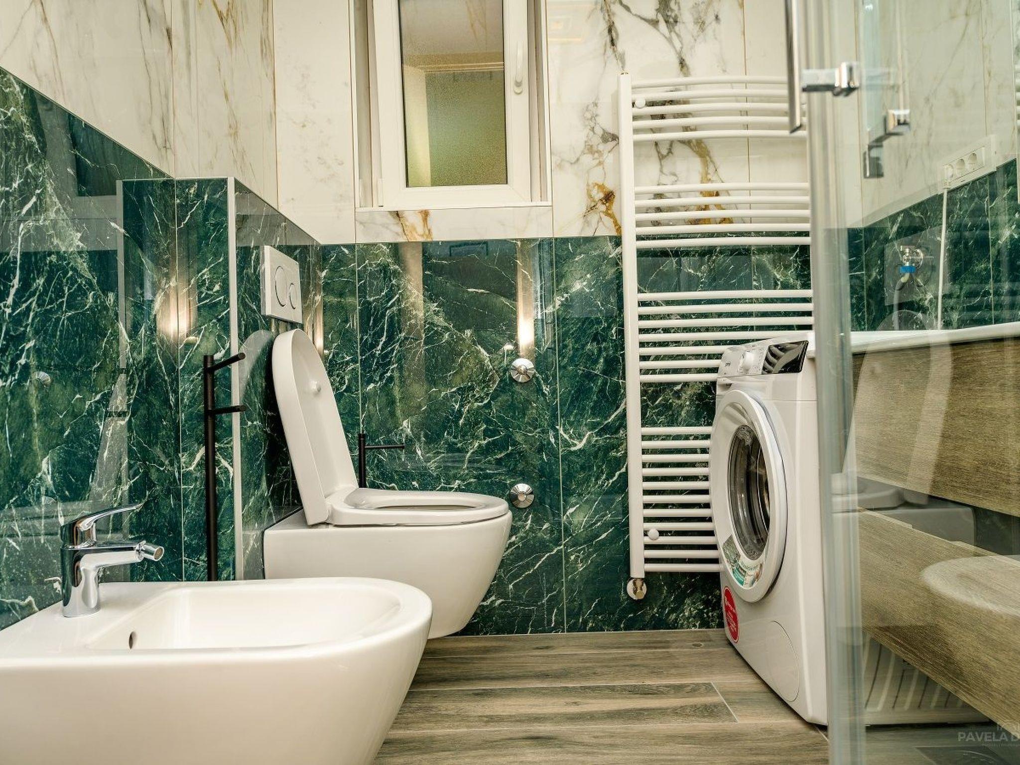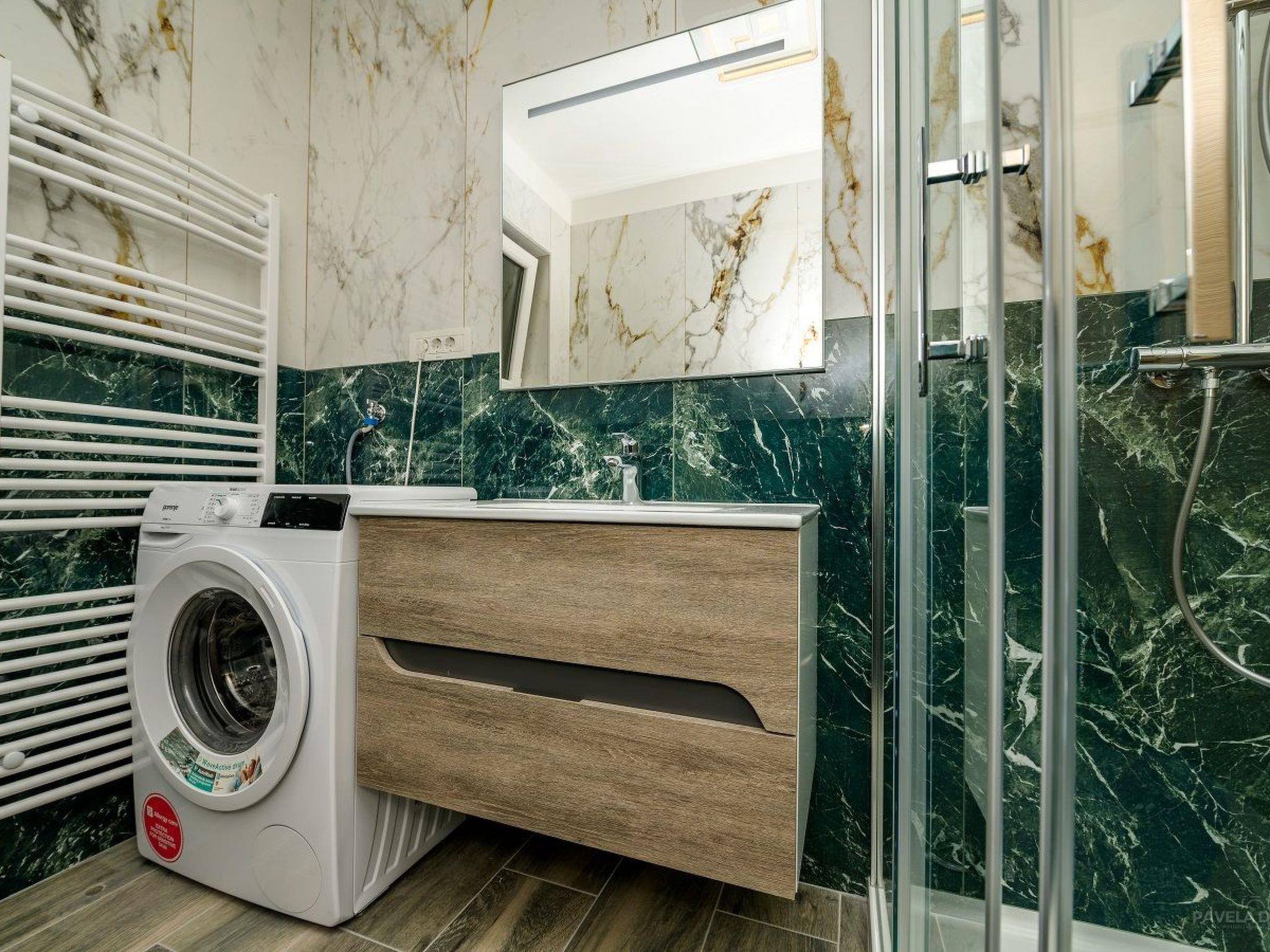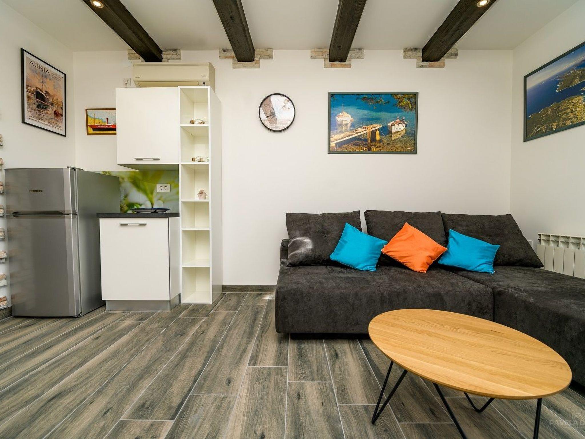 The apartments for 3 people Kamelia, Lavanda and Magnolia consist of a bedroom with a double bed, a kitchenette with all appliances, and a large living room with a dining room from which there is a view of the sea and an exit to the balcony. The living room also has two single beds. The apartment also has a bathroom with a shower.