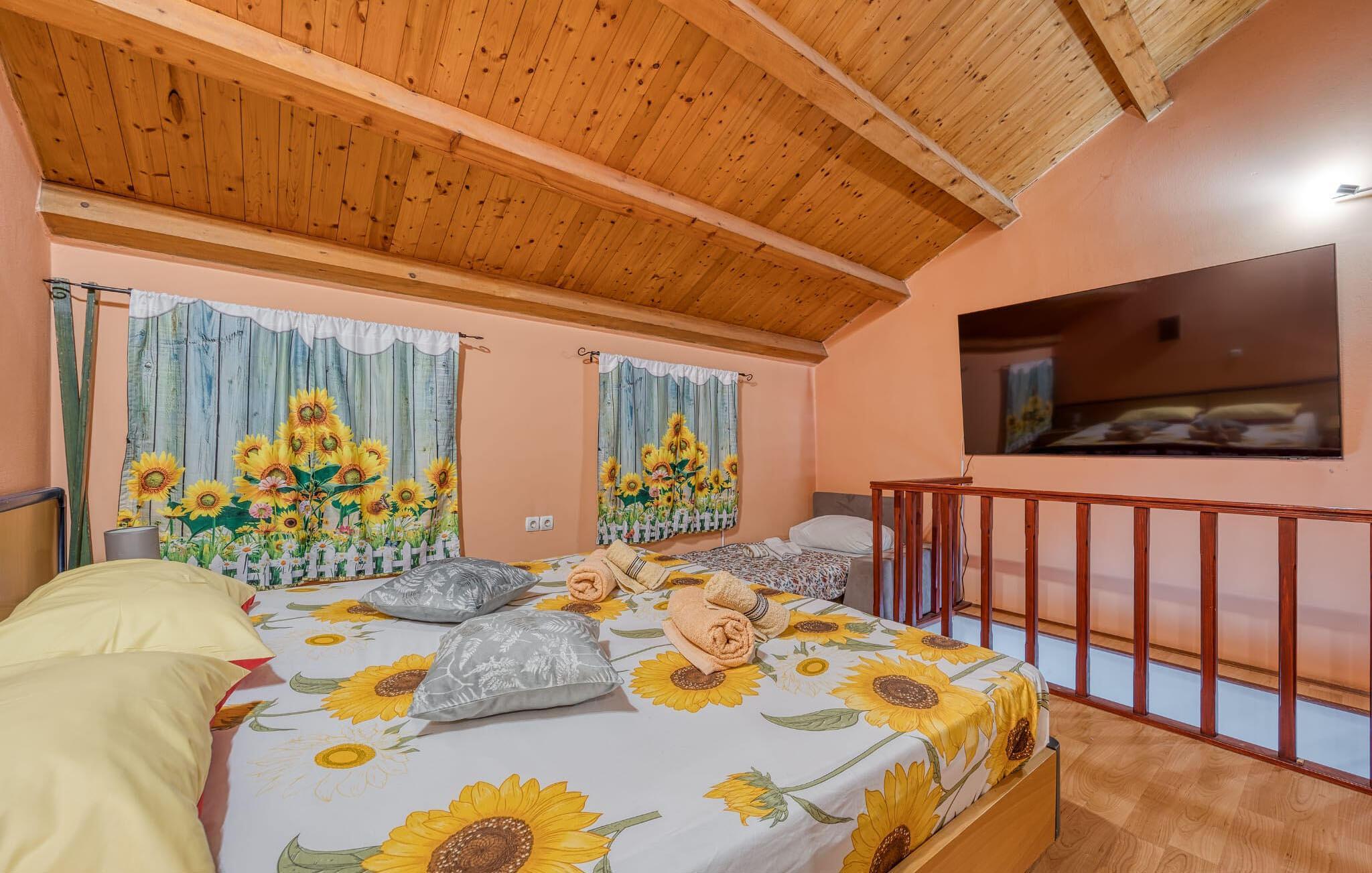 Læg hverdagen bag jer og tilbring en afslappende ferie i denne charmerende lejlighed, der byder jeres gæster velkommen i smukke omgivelser, kun en kort køretur fra havet. Brug boligen som base for dejlige dage på stranden og udforskning af øen, og gør det behageligt sammen efter jeres aktiviteter.