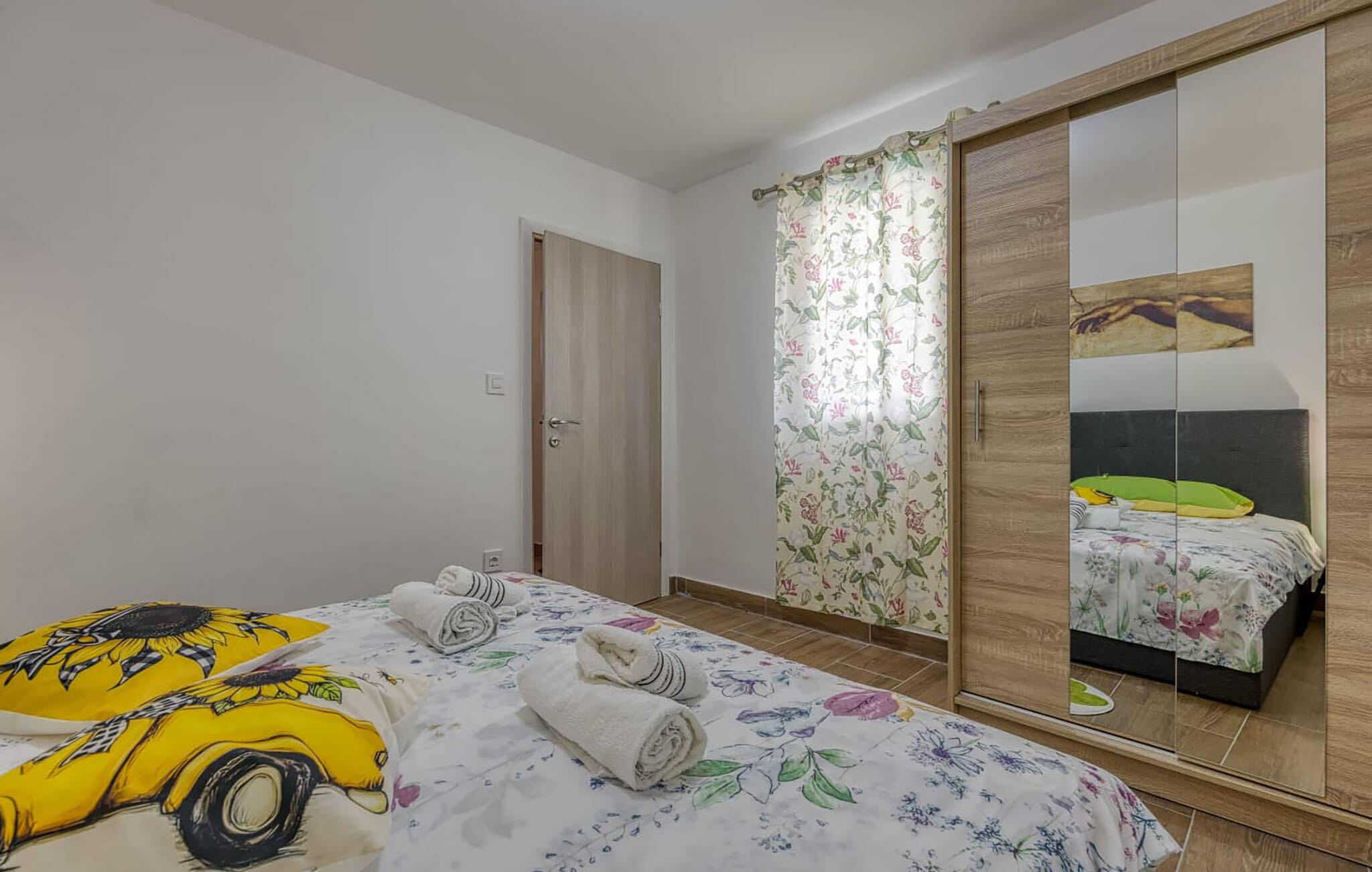 Kør til stranden og dyk ned i det turkisblå hav – uanset om I svømmer i afsidesliggende bugter, snorkler langs klippefyldte kystlinjer eller tager en guidet kajaktur rundt på øen. Fra feriehuset kan I gå gennem de smalle, farverige gader i den historiske bymidte og lade jer fortrylle af middelhavsstemningen. Oplev den lille havnepromenade, hvor fiskerbåde blidt vugger i det krystalklare vand, og hyggelige caféer med dalmatiske specialiteter lægger op til hyggestunder.
