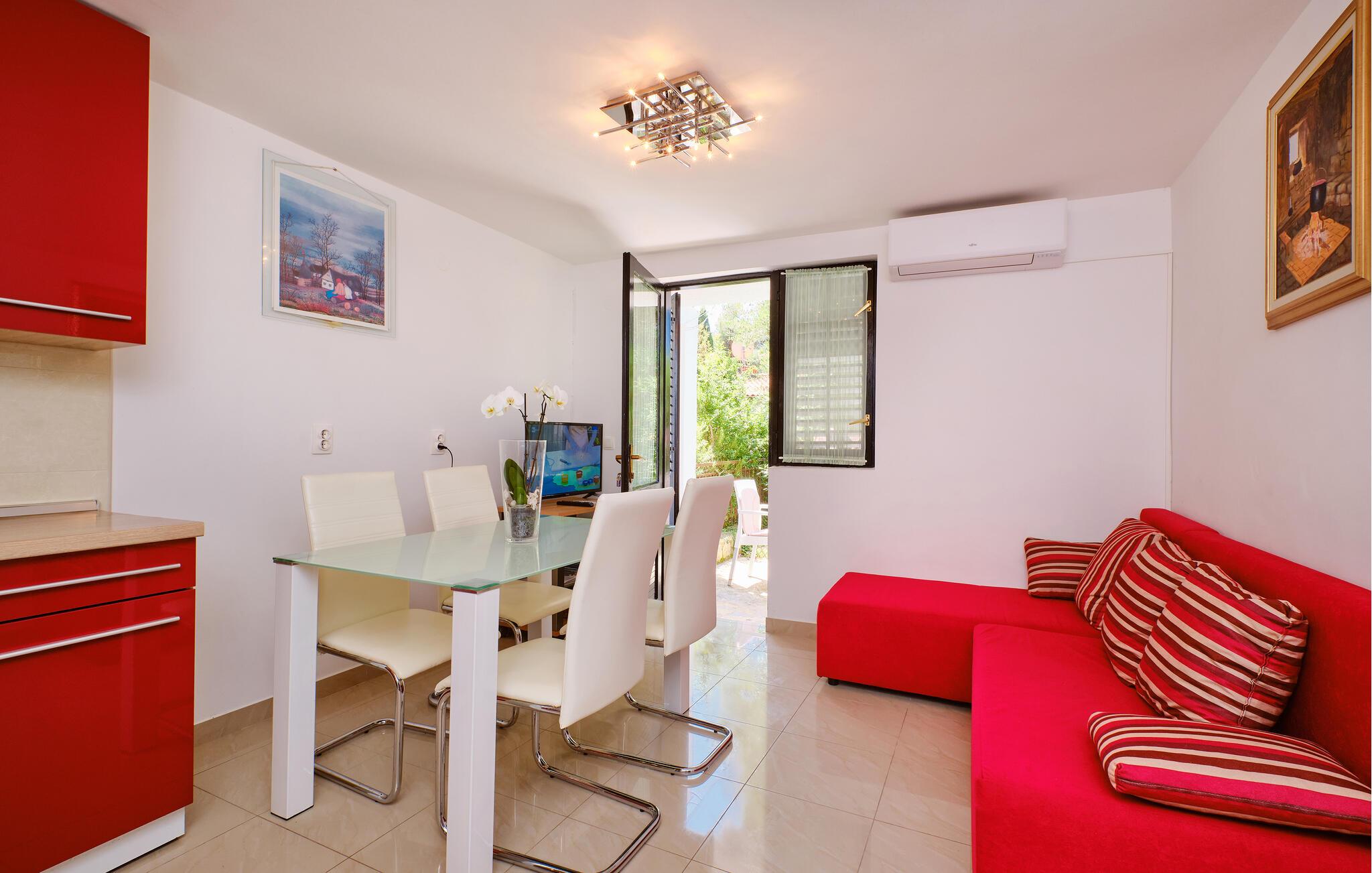Denne moderne møblerede lejlighed ligger i et roligt kvarter og er omgivet af frodig middelhavsvegetation og tilbyder et fredfyldtt tilflugtssted Nogle få skridt fra stranden. Begynd dagene med en solid morgenmad, pak lækre retter til en romantisk strandpicnic, og afslut en lang dag i solen med et brætspil eller en stille bog – i kystbyen Artatore, nær centrum af Mali Lošinj.