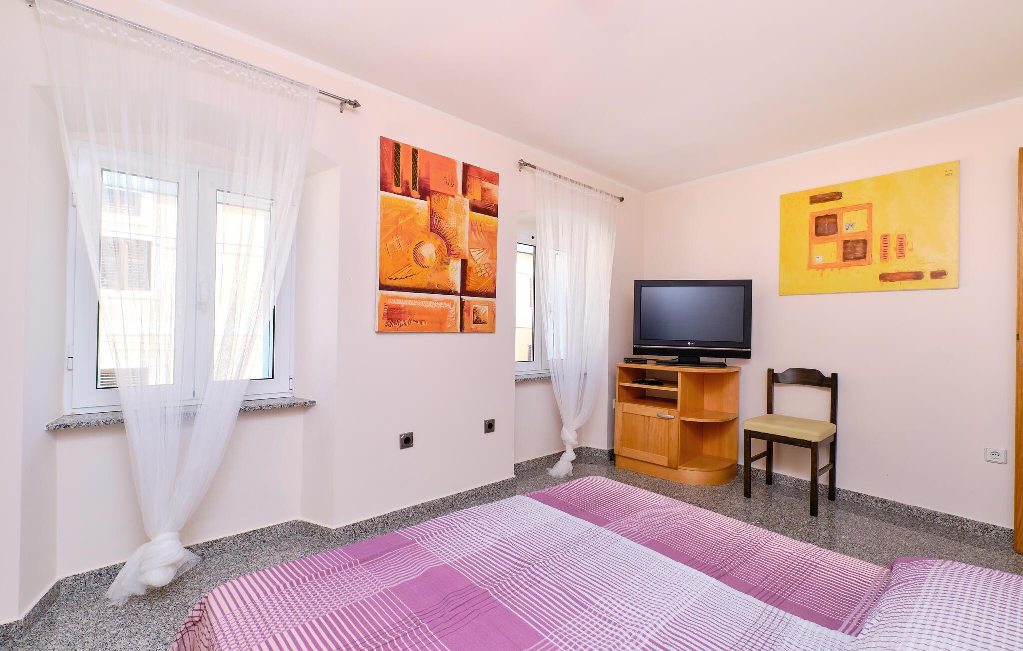 Tag familien under armen og rejs til Kroatien, hvor I i dette fine toetagershus får de ideelle rammer for årets ø-ferie på Losinj. Indretningen fremtræder flot og rustikt med livlige farveskalaer og pæn kunst på væggene, der giver det indre et hjemligt udtryk og gør det nemt at slappe af med det samme, I stiller kufferterne. Huset er veludstyret med alle de faciliteter, I behøver for at kræse om livretterne i køkkenet, nyde måltiderne ved spisebordet og dække op til hyggelige filmaftener efter dagens muntre leg.