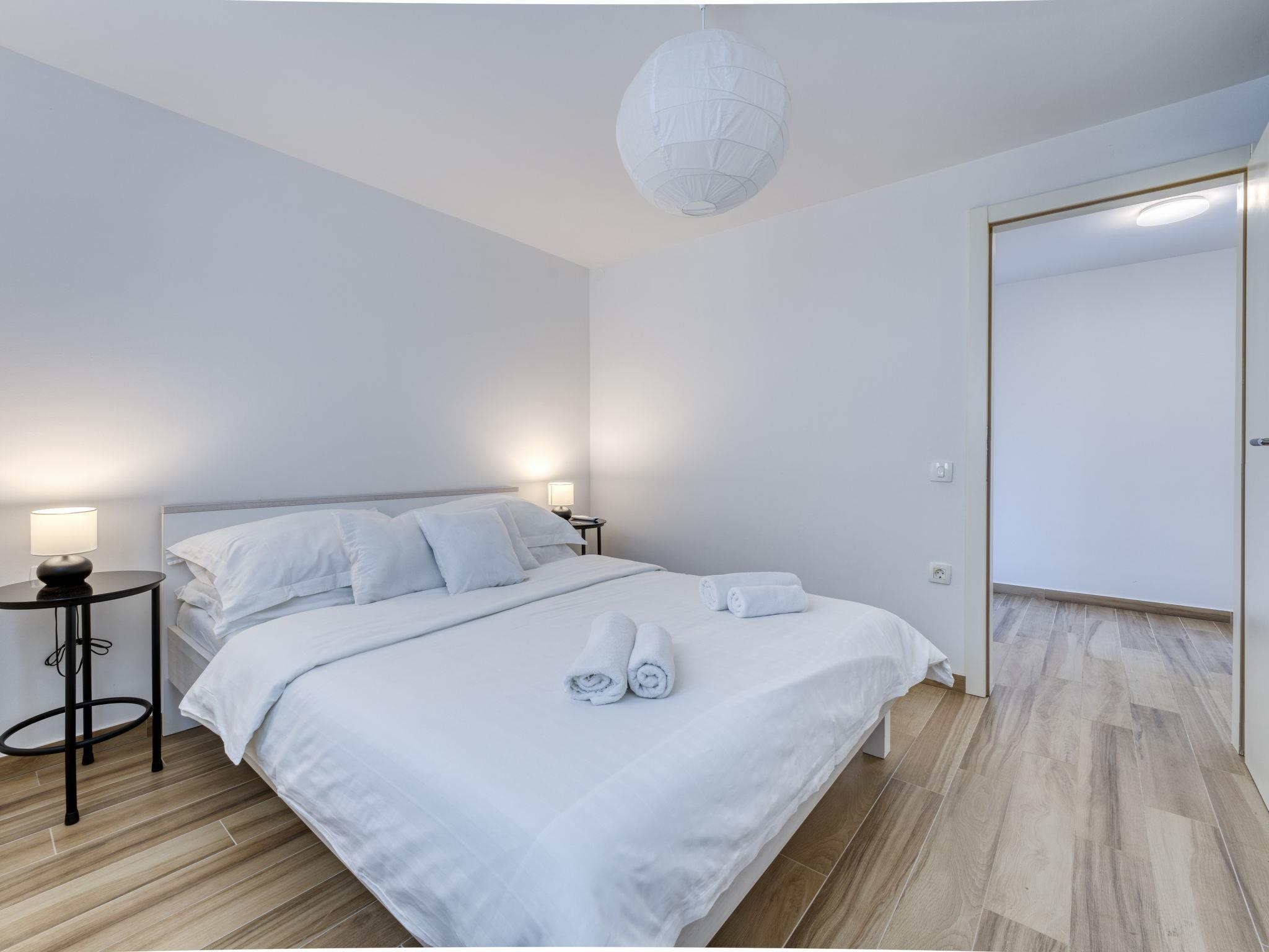 Beautiful apartment house "Villa Palma", renovated in 2023. 1.1 km from the centre of Lovran, in a sunny position, 600 m from the sea, 600 m from the beach. For shared use: property 900 m2 (fenced), garden with plants, swimming pool angular (8 x 4 m, depth 150 cm, seasonal availability: 01.May. - 15.Oct.) with internal staircase and salt-electrolysis pool-cleaning system. WC in the pool area, poolhouse with fridge and cooking stove, terrace (30 m2), garden furniture, barbecue. In the house: internet access. Parking at the house on the premises. Supermarket 300 m, restaurant 700 m, bar 300 m, bus stop 400 m, pebble beach 600 m. Tennis 400 m, walking paths from the house 600 m.