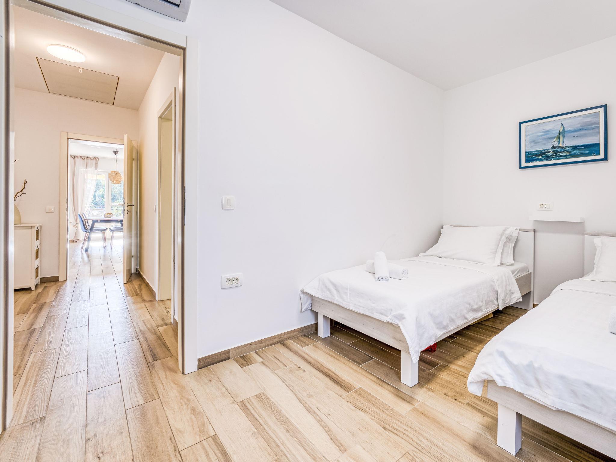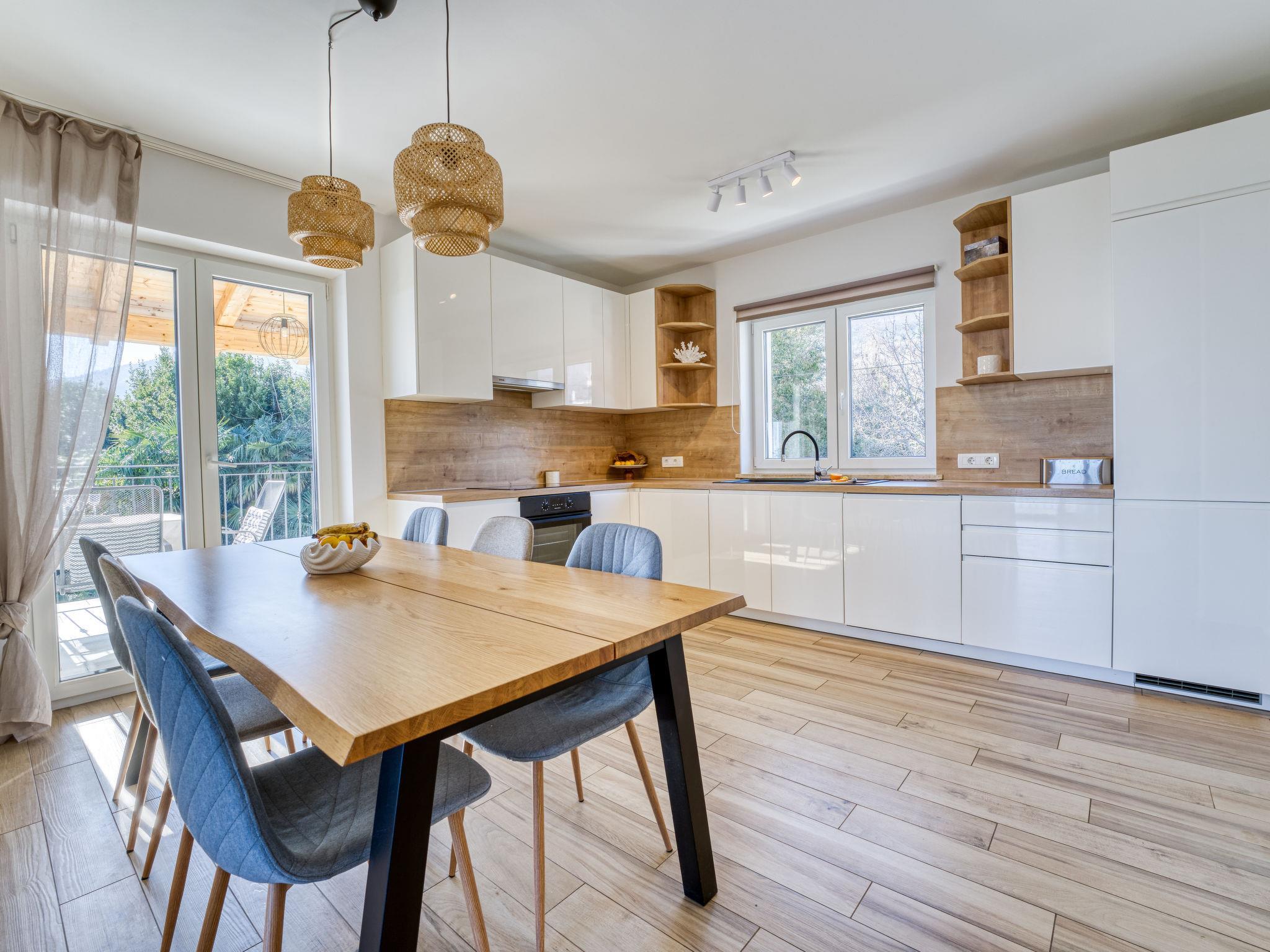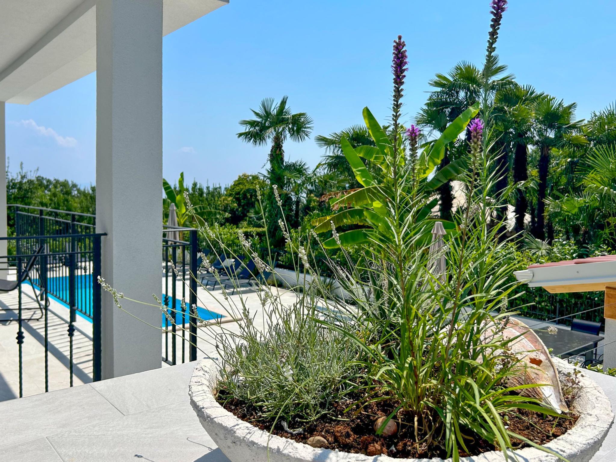 Beautiful apartment house "Villa Palma", renovated in 2023. 1.1 km from the centre of Lovran, in a sunny position, 600 m from the sea, 600 m from the beach. For shared use: property 900 m2 (fenced), garden with plants, swimming pool angular (8 x 4 m, depth 150 cm, seasonal availability: 01.May. - 15.Oct.) with internal staircase and salt-electrolysis pool-cleaning system. WC in the pool area, poolhouse with fridge and cooking stove, terrace (30 m2), garden furniture, barbecue. In the house: internet access. Parking at the house on the premises. Supermarket 300 m, restaurant 700 m, bar 300 m, bus stop 400 m, pebble beach 600 m. Tennis 400 m, walking paths from the house 600 m.
