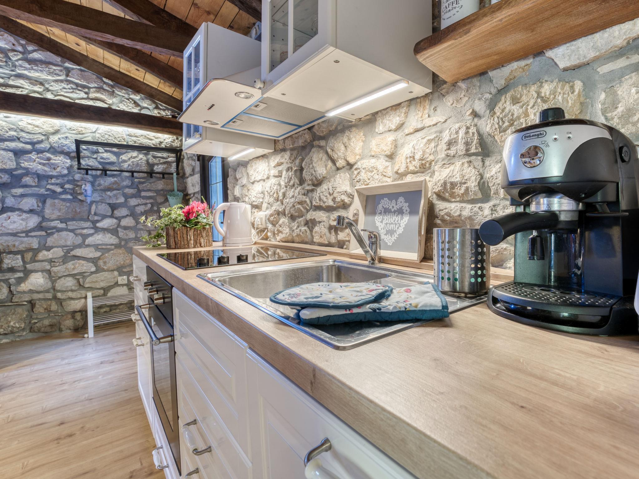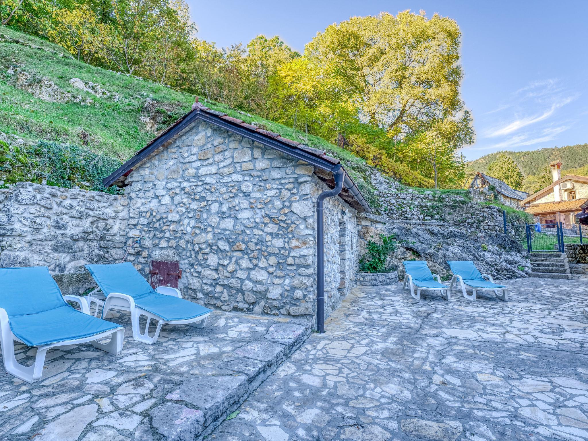Lovranska Draga 8 km from Lovran: Old, rustic single-family house "Sirotnjak 2". Above Lovran, in a quiet, sunny position on a slope, along the wooded area, 8 km from the sea, 8 km from the beach, in the countryside. For shared use: swimming pool (6 x 4 m, depth 150 cm, seasonal availability: 01.May. - 30.Sep.). Outdoor shower. In the house: internet access, billiard table, table football, air conditioning, washing machine (for shared use). Parking at the house on the premises. Shop 3.6 km, supermarket 8.2 km, restaurant 1 km, bus stop 400 m, pebble beach 8 km, public bathing area 8 km. Walking paths from the house 50 m. Groups of teenagers on request only. Please note: Property ref. HR3055.101.1 is situated on the same property. Available at the object HR3055.101.1 for shared use: traditional tavern with dining table, refrigerator and dishwasher.