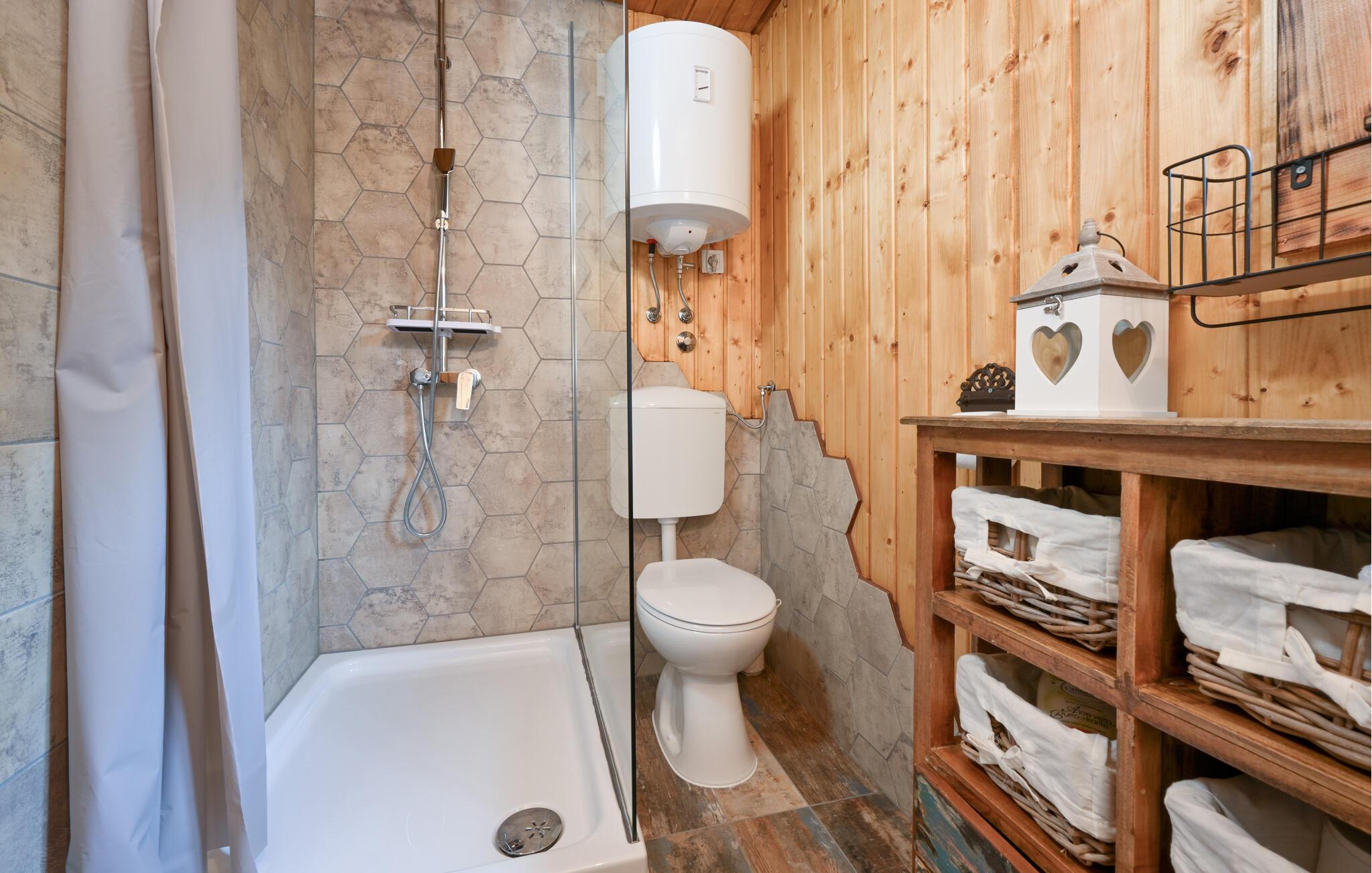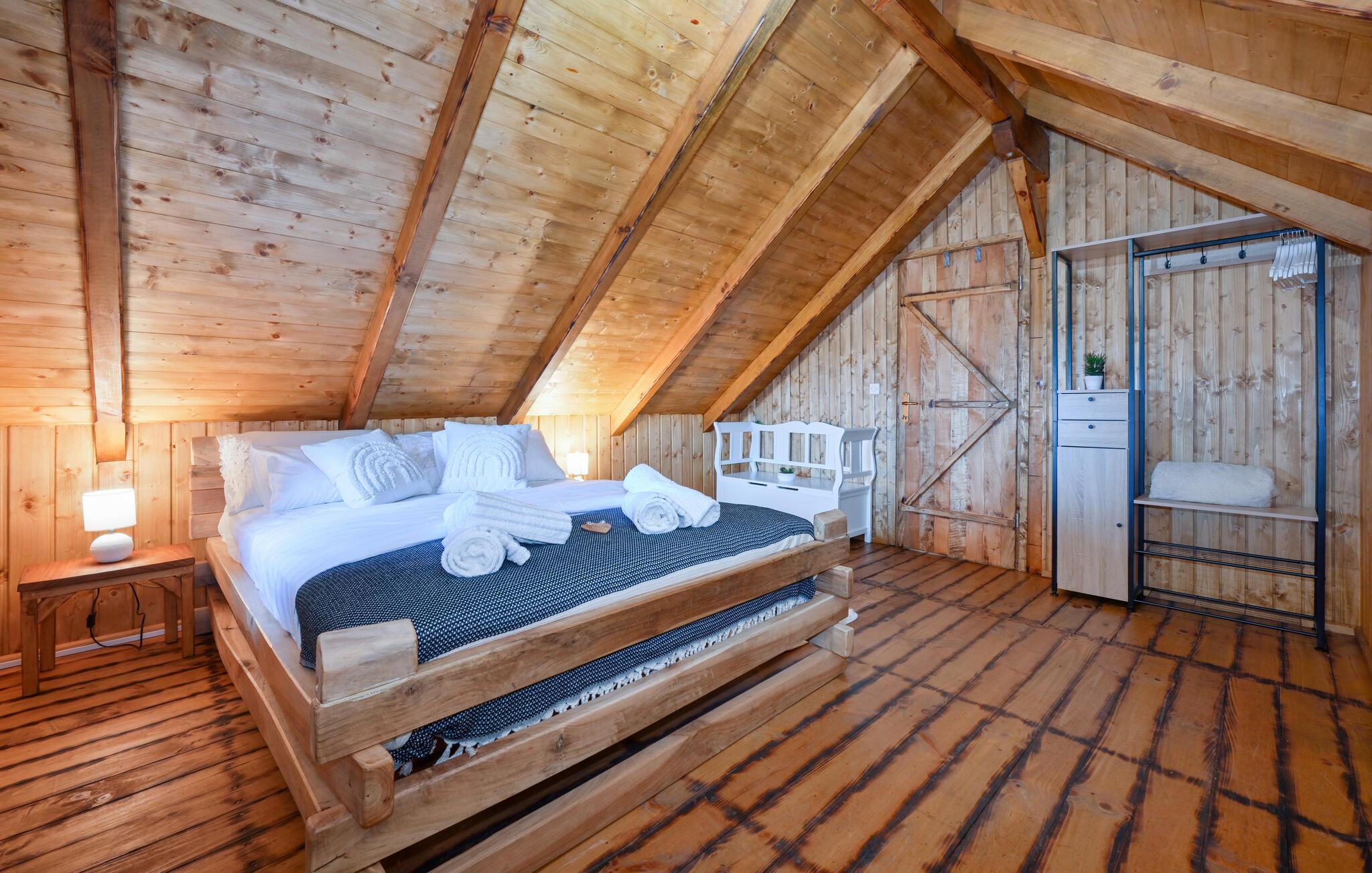 Nyd en afslappende ferie i dette rustikke feriehus med spabad. Slap af fra hverdagen og genoplad batterierne i dette komfortabelt møblerede hus. De naturfarvede træpaneler, komfortable lædersofaer og en pejs skaber en rolig atmosfære. Tilbered jeres måltider og nyd dem ved det store spisebord med en fin flaske vin. Slap af med en bog eller spil et spil skak. Start dagen med en dukkert i spabadet, inden I sætter jer til rette i hængestolen. Forfrisk jer med en kølig drink og nyd roen i den grønne have, mens jeres børn spiller badminton eller volleyball. Om aftenen griller I sammen og reflekterer over dagens eventyr. Oplev de grønne bakker omkring Ludbreg på lange gåture eller cykelture gennem naturen. Besøg den charmerende by Ludbreg, kendt som Kroatiens geografiske centrum, og slentr gennem dens historiske gader. Tag på udflugter til nærliggende vingårde og prøv regionale specialiteter direkte fra producenten. Nyd roen i omgivelserne og lad jer fortrylle af den landlige charme i det nordlige Kroatien.