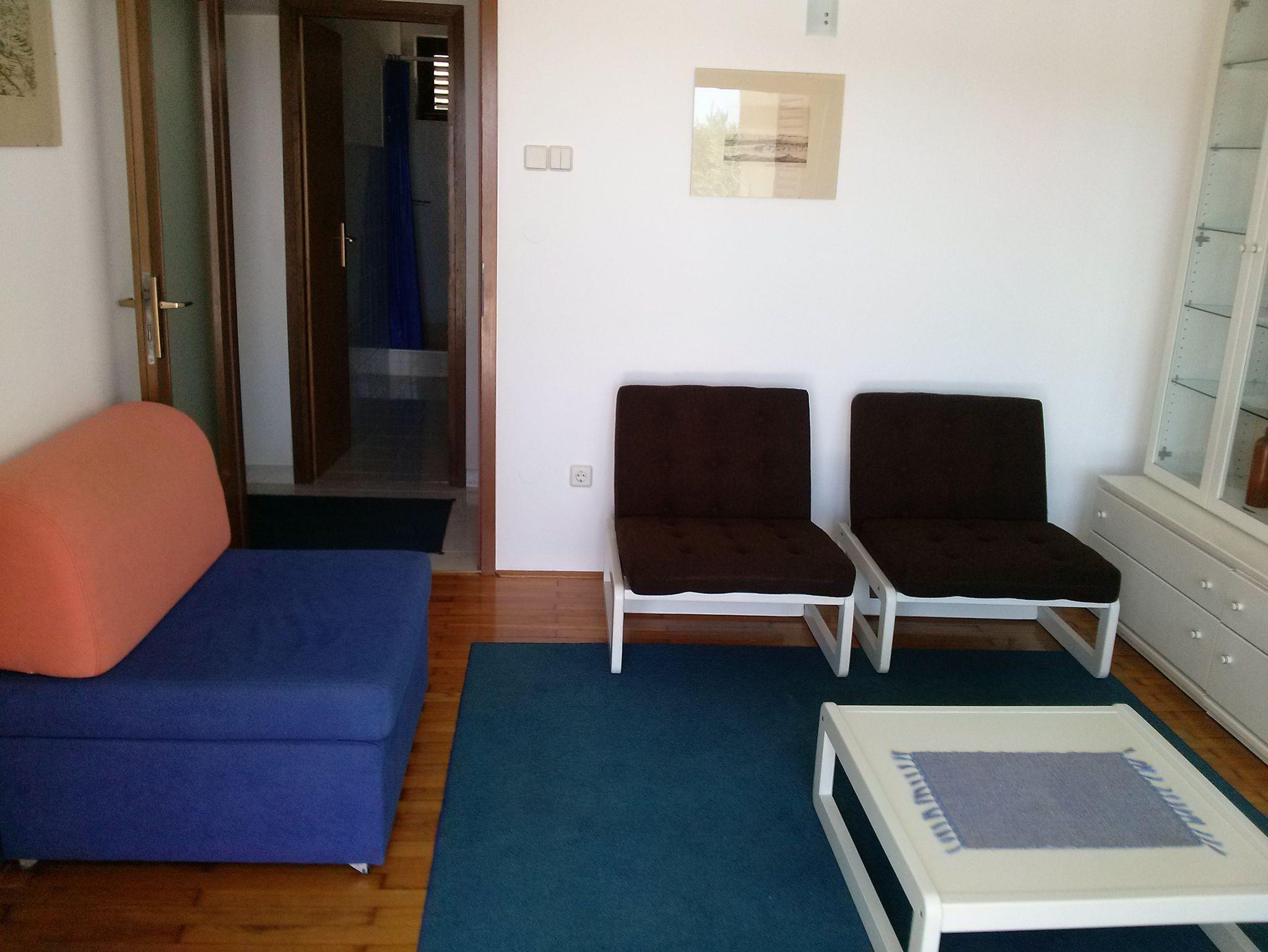 Ferienwohnung bietet Platz für 4 Gäste. Die Betten sind in Schlafzimmern, die es 2 gibt, innerhalb einer Gesamtfläche von 38m2, angeordnet. Die Gäste haben eine eigene Terrasse zur Verfügung, auf der sie in warmen Sommernächten genießen können. Das Apartment bietet Meerblick. Es ist erlaubt, Speisen auf dem Gemeinschafts-Grill vorzubereiten. In der Unterkunftseinheit besteht die Möglichkeit des Mitbringens von Haustieren gegen Aufpreis. IM PREIS INBEGRIFFEN: Kurtaxe, Endreinigung, Internet, tragbarer Grill, Sonnenschirm, Liegestühle. VERBINDLICHE ZUSÄTZLICHE KOSTEN: Aufzahlung für Kurzaufenthalte (prozentualer Zuschlag pro Nächtigungsanzahl: 30% - 1, 20% - 2, 10% - 3). UNVERBINDLICHE ZUSÄTZLICHE KOSTEN: Klimatisierung (10,00 € pro Nacht), Haustiere (10,00 € pro Nacht), Zusatzbett (20,00 € pro Nacht). Die Verfügbarkeit zusätzlicher Dienstleistungen in Ihrem reservierten Termin und die Preise derselben (falls nicht aufgeführt) müssen im Voraus überprüft werden. Zusätzliche Dienstleistungen die in der Zahlungsaufforderung nicht aufgeführt sind werden direkt beim Vermieter bezahlt, angenommen der Gast nutzt auch diese.
