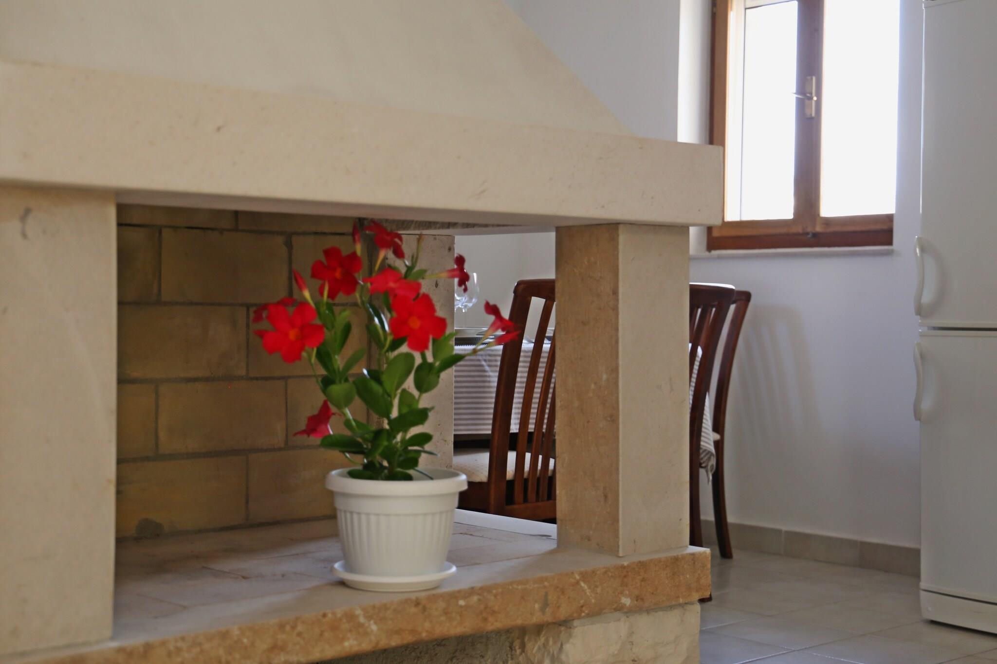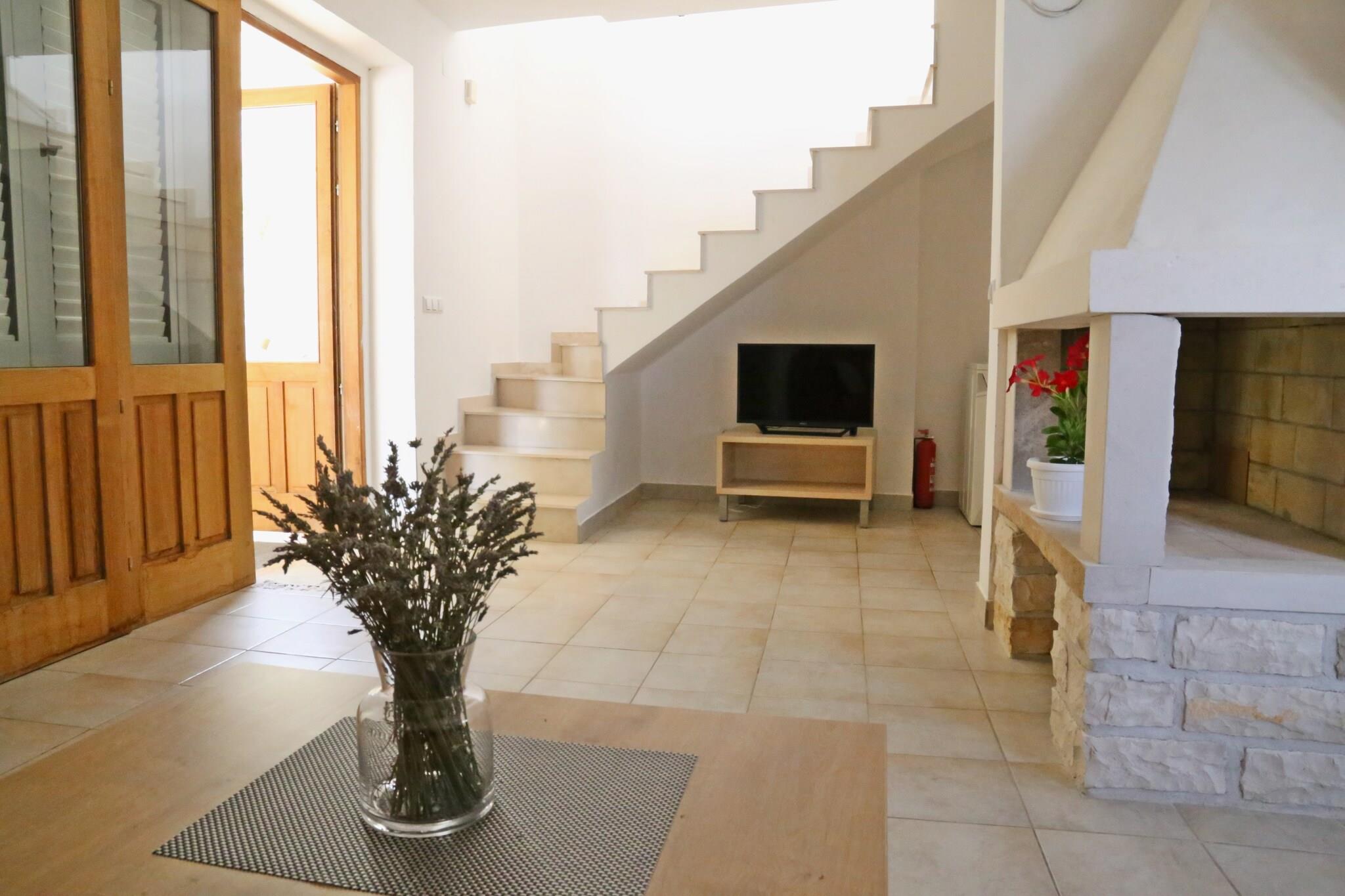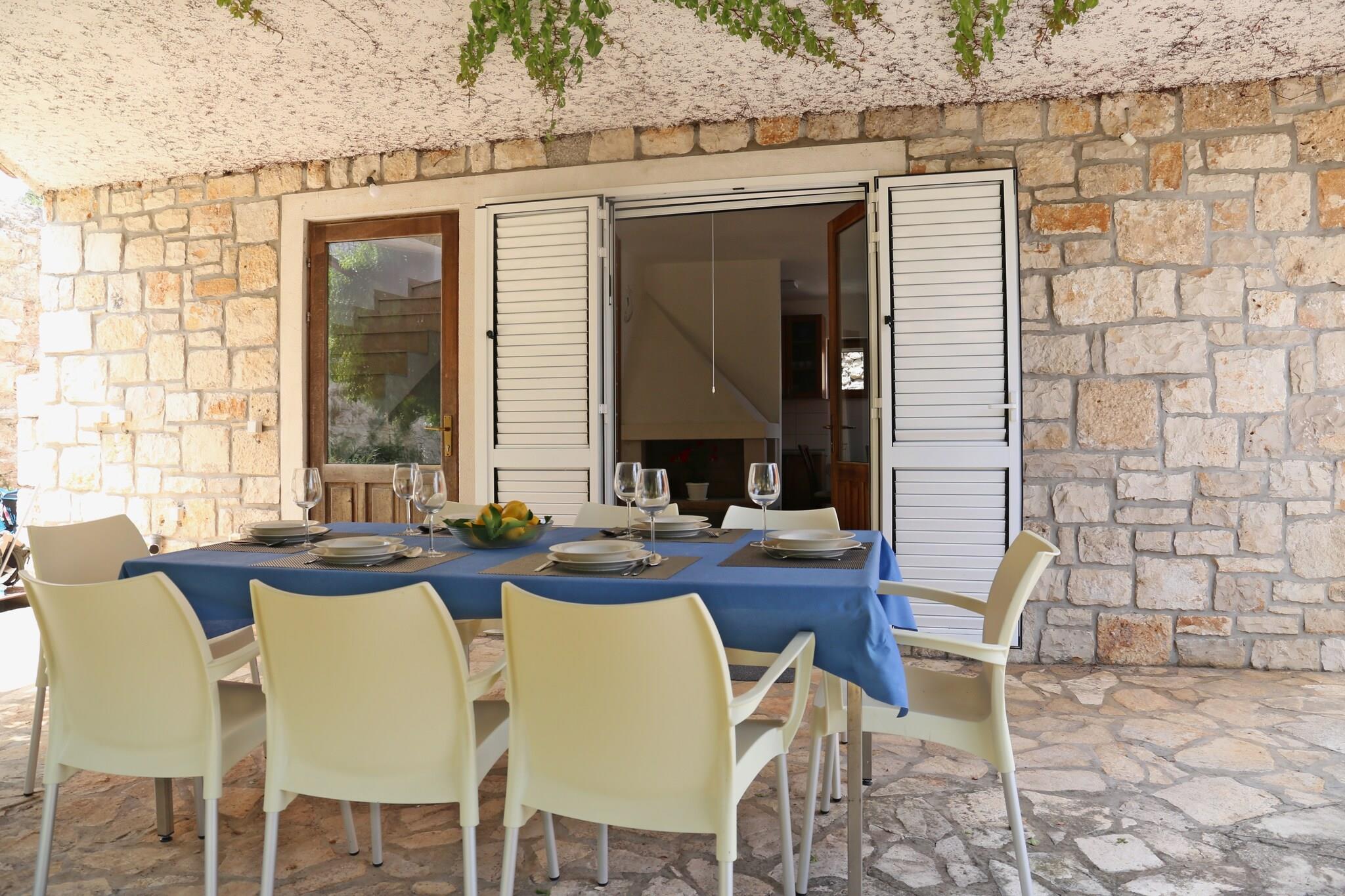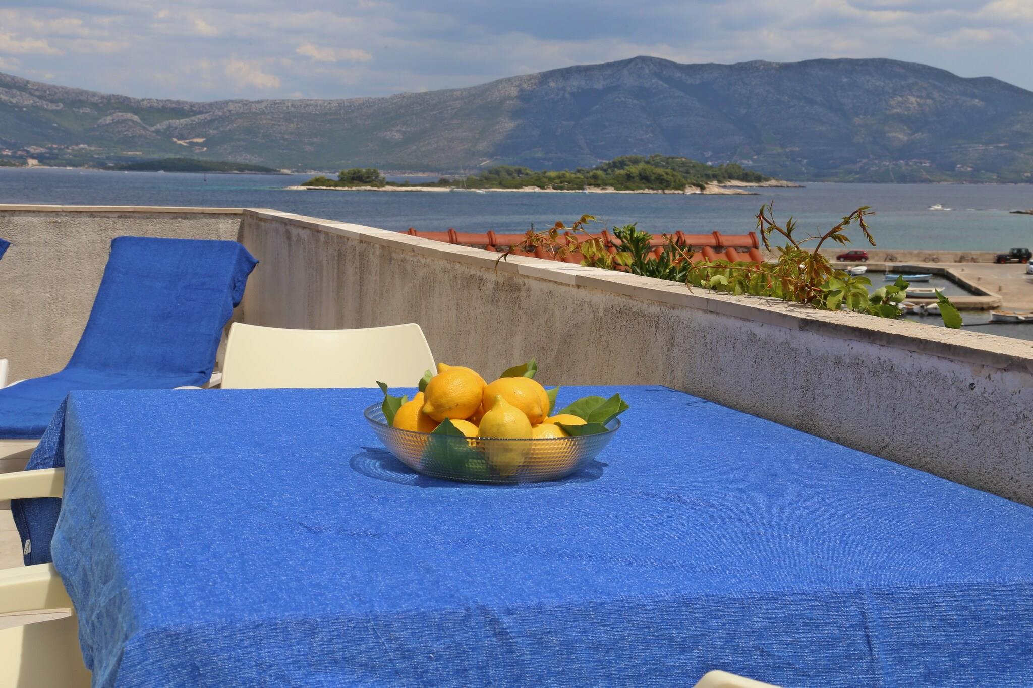 Denne dejlige stenferiehus med stor terrasse og havudsigt er beliggende i landsbyen Lumbarda på øen Korcula. Dit hjem tilbyder komplet komfort, udstyret køkken, moderne møbleret interiør, aircondition, havemøbler, rummelige soveværelser og badeværelser. Terrasse med spisemøbler og grill er et vidunderligt sted at sidde. Huset er 20 meter langt fra sandstranden og det er et ideelt sted for familieferie. I landsbyen Lumbarda kan du finde fantastiske strande, ekstra kvalitet olivenolie og berømt hvidvin Posip. Vingården og olivenpressen ligger tæt på marken og vinsmagning i en familie vingårde, du bør ikke gå glip af. By Korcula er en historisk fæstningsby på den beskyttede østkyst på øen Korcula.