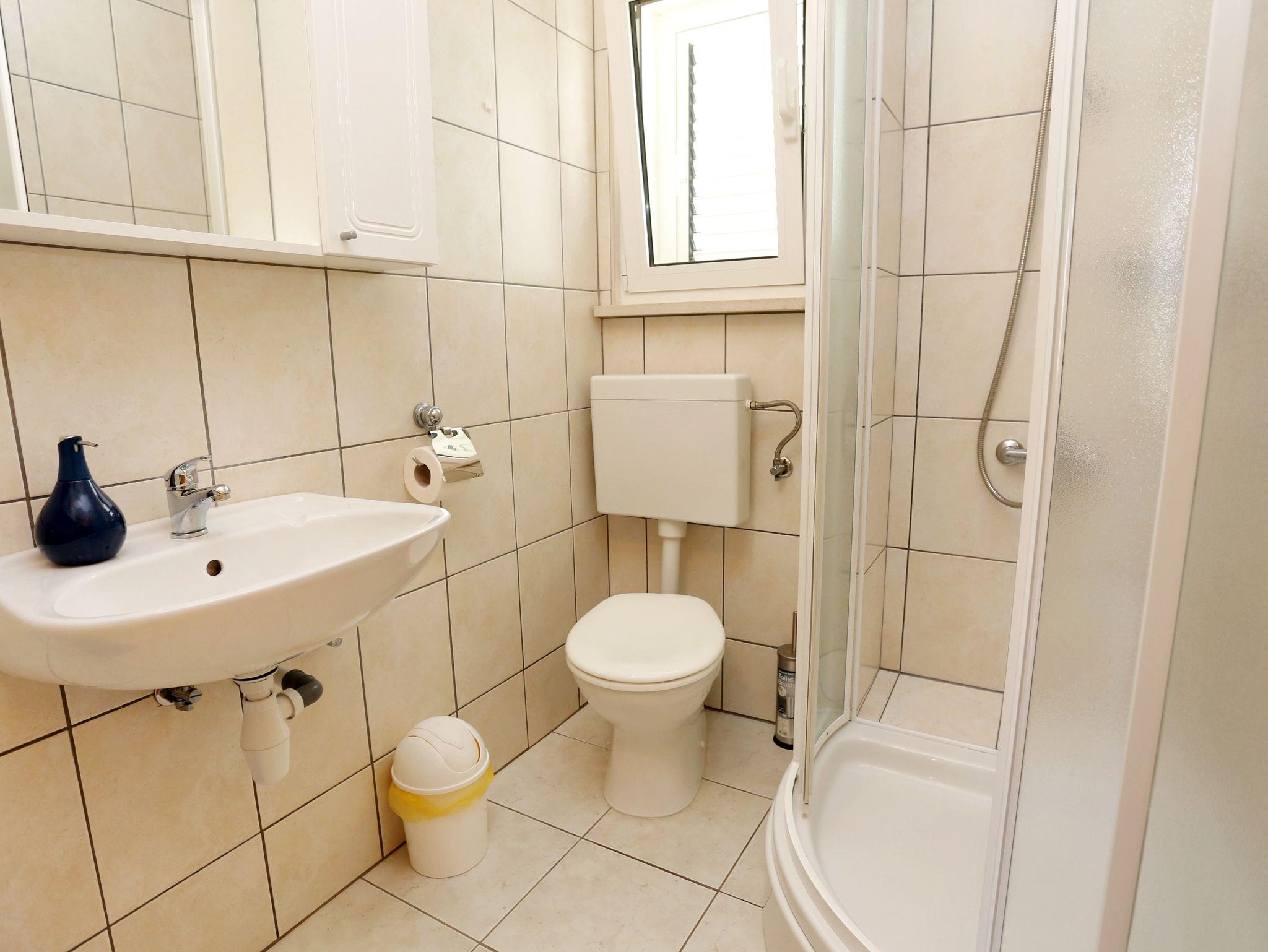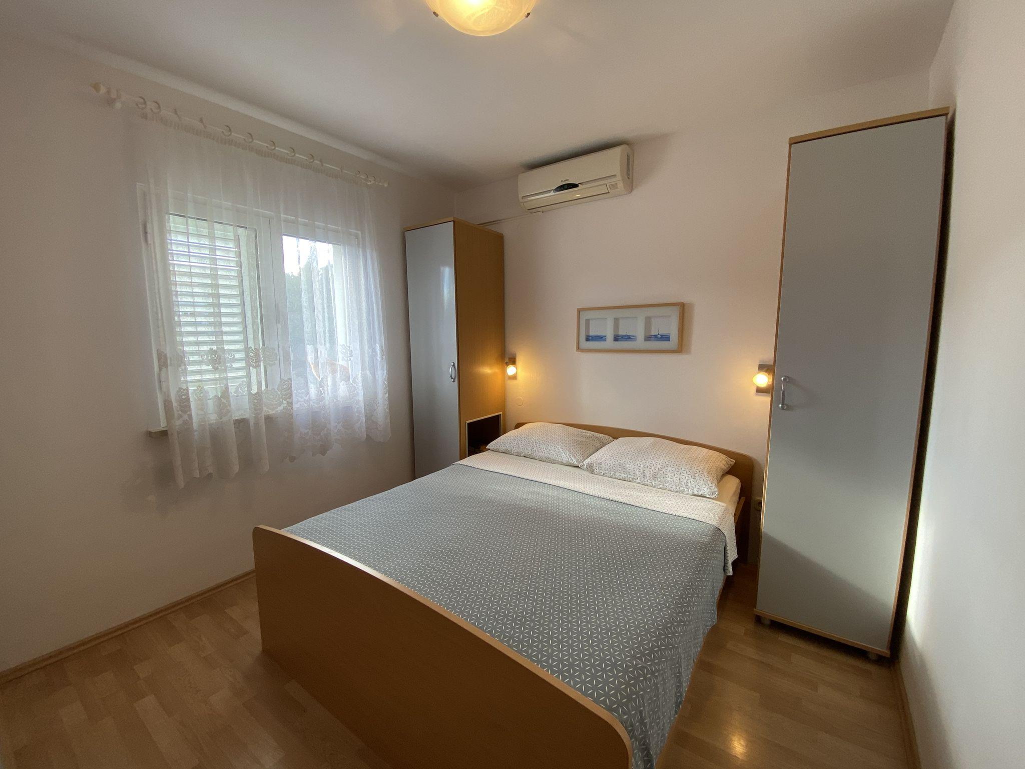 Ferienwohnung bietet Platz für 4 Gäste. Die Betten sind in Schlafzimmern, die es 1 gibt, und in Esszimmer, innerhalb einer Gesamtfläche von 30m2, angeordnet. Die Gäste haben eine eigene Terrasse zur Verfügung, auf der sie in warmen Sommernächten genießen können. Das Apartment bietet Meerblick. Es ist erlaubt, Speisen auf dem Gemeinschafts-Grill vorzubereiten. In der Unterkunftseinheit besteht die Möglichkeit des Mitbringens von Haustieren, und die Dienstleistung ist im Preis der Unterkunft enthalten. IM PREIS INBEGRIFFEN: Kurtaxe, Endreinigung, Klimatisierung, Parkplatz, Internet, Bootsanlegeplatz, Haustiere, Kinderbett, Bügeleisen, Bügelbrett, Föhn. VERBINDLICHE ZUSÄTZLICHE KOSTEN: Aufzahlung für Kurzaufenthalte (prozentualer Zuschlag pro Nächtigungsanzahl: 30% - 1, 20% - 2, 10% - 3). UNVERBINDLICHE ZUSÄTZLICHE KOSTEN: Frühstück (10,00 €, 50% Nachlass für Kinder zwischen 4 und 12 Jahren, Kinder bis 4 Jahre sind frei.), Fahrrad (10,00 € täglich (pro Stück)). Die Verfügbarkeit zusätzlicher Dienstleistungen in Ihrem reservierten Termin und die Preise derselben (falls nicht aufgeführt) müssen im Voraus überprüft werden. Zusätzliche Dienstleistungen die in der Zahlungsaufforderung nicht aufgeführt sind werden direkt beim Vermieter bezahlt, angenommen der Gast nutzt auch diese.