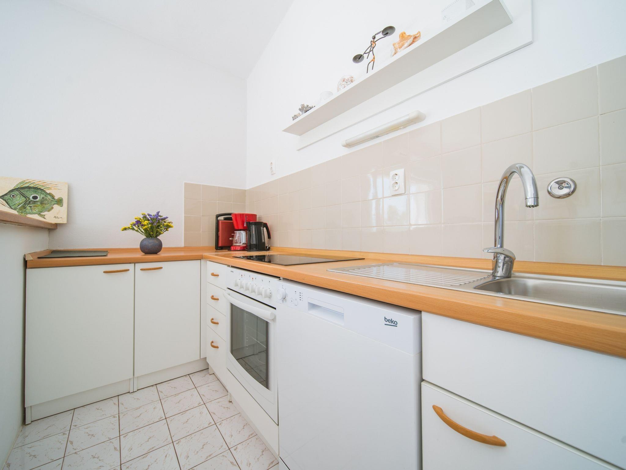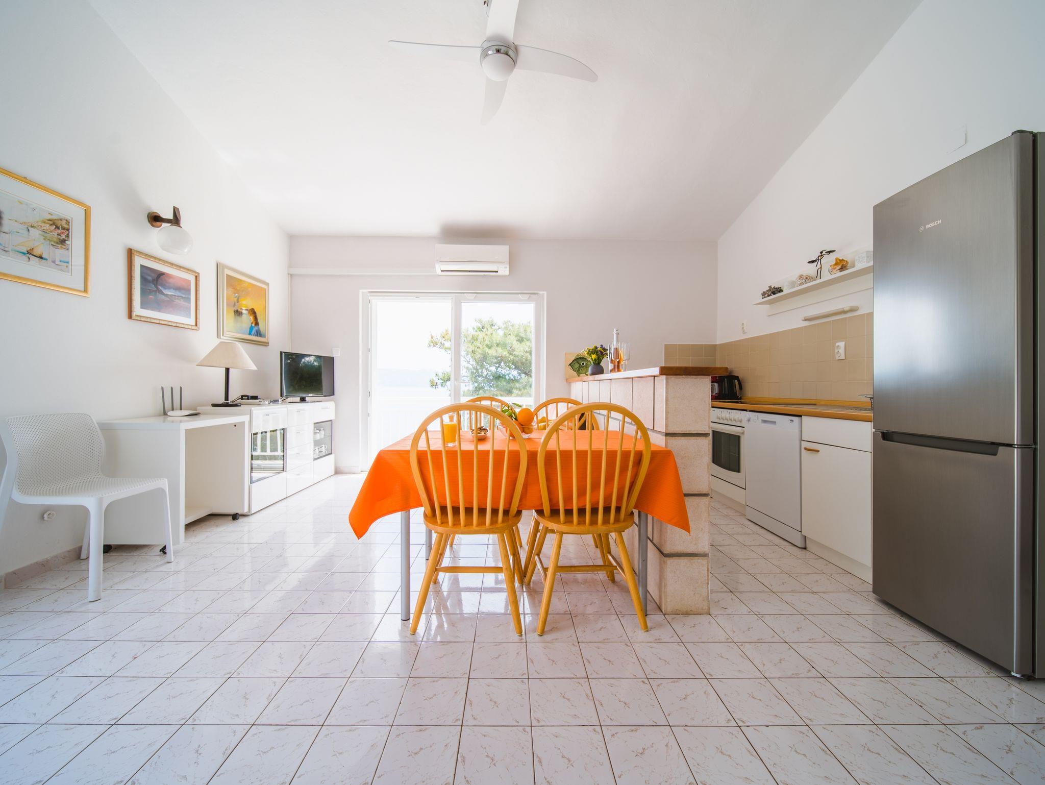 Ferienwohnung bietet Platz für 5 Gäste. Die Betten sind in Schlafzimmern, die es 3 gibt, innerhalb einer Gesamtfläche von 62m2, angeordnet. Die Gäste haben eine eigene Terrasse zur Verfügung, auf der sie in warmen Sommernächten genießen können. Das Apartment bietet Meerblick. Es ist erlaubt, Speisen auf dem Gemeinschafts-Grill vorzubereiten. In der Unterkunftseinheit besteht die Möglichkeit des Mitbringens von Haustieren, und die Dienstleistung ist im Preis der Unterkunft enthalten. IM PREIS INBEGRIFFEN: Kurtaxe, Endreinigung, Klimatisierung, Parkplatz, Internet, Haustiere, Bügeleisen, Bügelbrett, Föhn, Sonnenschirm. Die Verfügbarkeit zusätzlicher Dienstleistungen in Ihrem reservierten Termin und die Preise derselben (falls nicht aufgeführt) müssen im Voraus überprüft werden. Zusätzliche Dienstleistungen die in der Zahlungsaufforderung nicht aufgeführt sind werden direkt beim Vermieter bezahlt, angenommen der Gast nutzt auch diese. Ermäßigung auf den Grundpreis: Gratistag 14=13 (bei einem Aufenthalt von 14 Tagen oder mehr erhalten Sie einen Gratistag für den Aufenthalt bis 31.12.26).