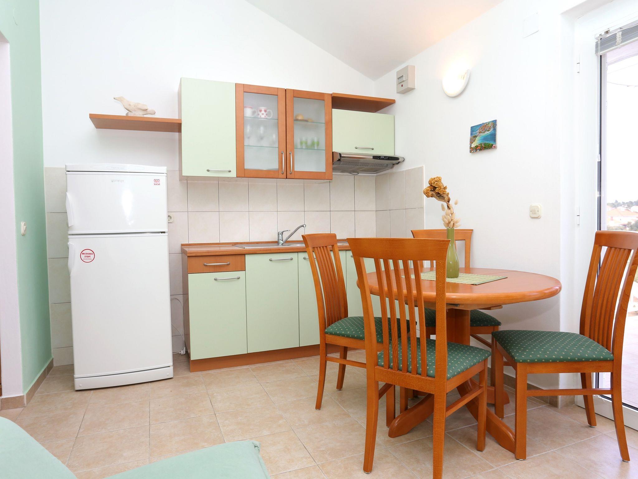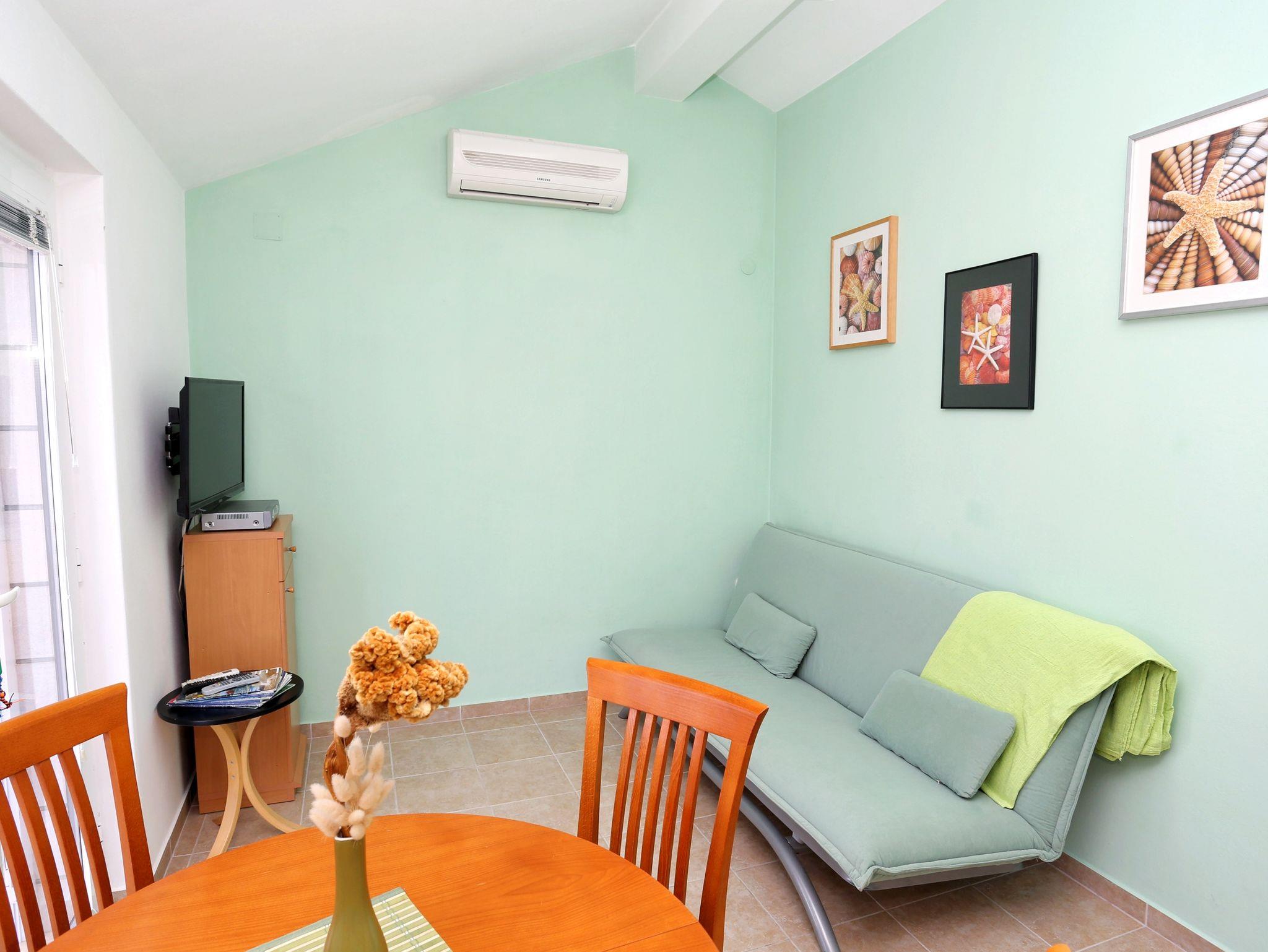 Ferienwohnung bietet Platz für 3 Gäste. Die Betten sind in Schlafzimmern, die es 1 gibt, und in Wohnzimmer, innerhalb einer Gesamtfläche von 26m2, angeordnet. Die Gäste haben eine eigene Terrasse zur Verfügung, auf der sie in warmen Sommernächten genießen können. Das Apartment bietet Meerblick. Es ist erlaubt, Speisen auf dem Gemeinschafts-Grill vorzubereiten. In der Unterkunftseinheit besteht die Möglichkeit des Mitbringens von Haustieren, und die Dienstleistung ist im Preis der Unterkunft enthalten. IM PREIS INBEGRIFFEN: Kurtaxe, Endreinigung, Klimatisierung, Parkplatz, Internet, Bootsanlegeplatz, Haustiere, Kinderbett, Bügeleisen, Bügelbrett, Föhn. VERBINDLICHE ZUSÄTZLICHE KOSTEN: Aufzahlung für Kurzaufenthalte (prozentualer Zuschlag pro Nächtigungsanzahl: 30% - 1, 20% - 2, 10% - 3). UNVERBINDLICHE ZUSÄTZLICHE KOSTEN: Frühstück (10,00 €, 50% Nachlass für Kinder zwischen 4 und 12 Jahren, Kinder bis 4 Jahre sind frei.), Fahrrad (10,00 € täglich (pro Stück)). Die Verfügbarkeit zusätzlicher Dienstleistungen in Ihrem reservierten Termin und die Preise derselben (falls nicht aufgeführt) müssen im Voraus überprüft werden. Zusätzliche Dienstleistungen die in der Zahlungsaufforderung nicht aufgeführt sind werden direkt beim Vermieter bezahlt, angenommen der Gast nutzt auch diese.