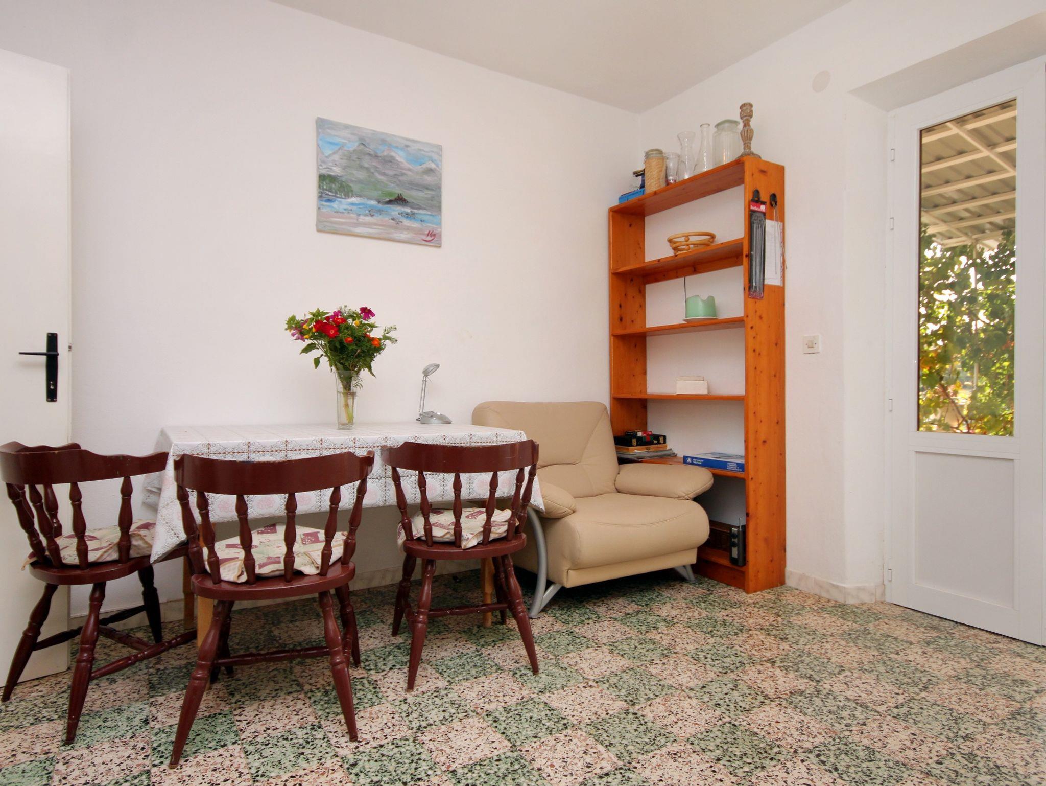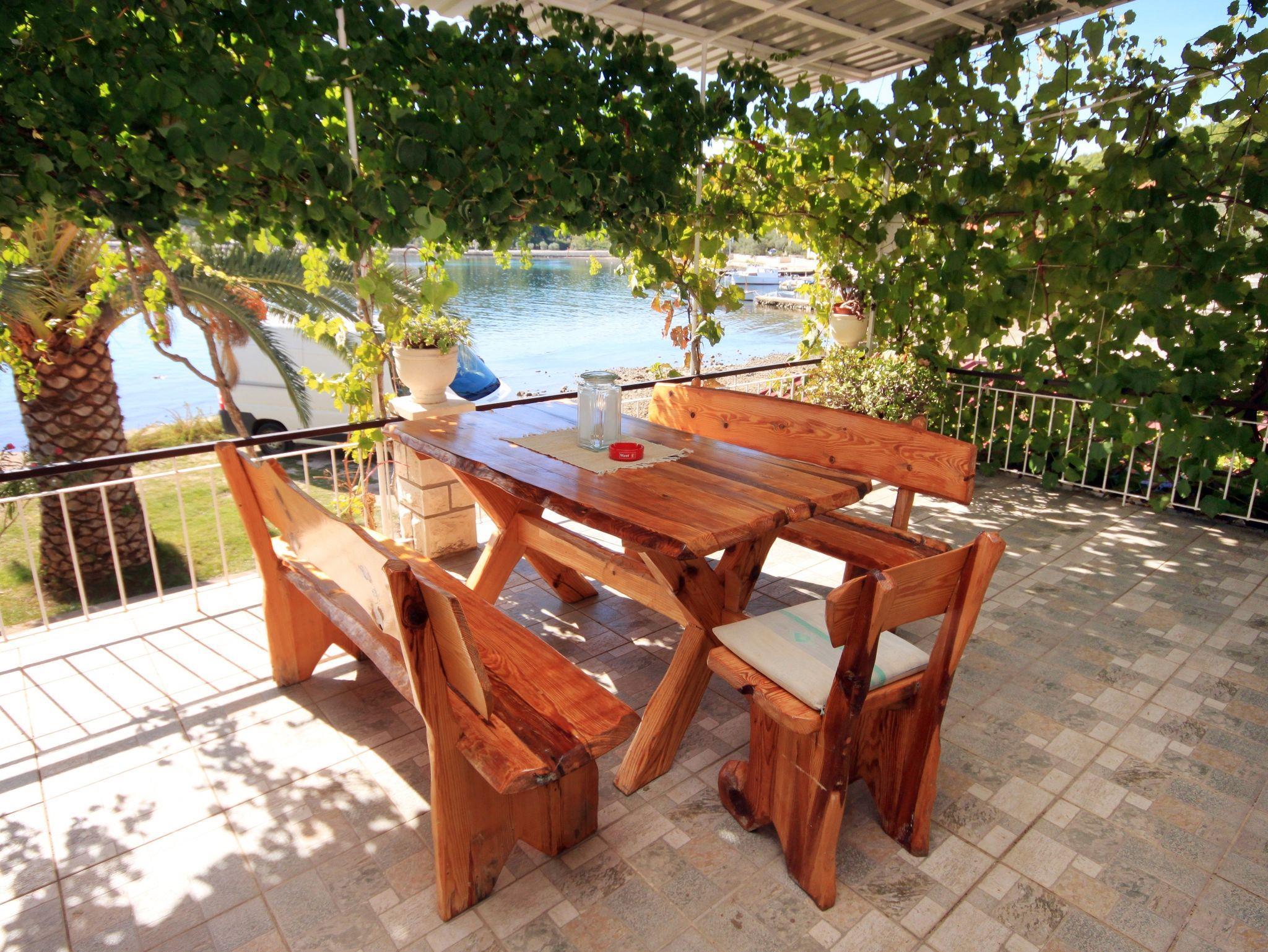 Ferienwohnung bietet Platz für 4 Gäste. Die Betten sind in Schlafzimmern, die es 2 gibt, innerhalb einer Gesamtfläche von 60m2, angeordnet. Die Gäste haben eine eigene Terrasse zur Verfügung, auf der sie in warmen Sommernächten genießen können. Das Apartment bietet Meerblick. Es ist erlaubt, Speisen auf dem Gemeinschafts-Grill vorzubereiten. IM PREIS INBEGRIFFEN: Kurtaxe, Endreinigung, Parkplatz, Internet, Bootsanlegeplatz, Kinderbett, Bügeleisen, Föhn, tragbarer Grill. VERBINDLICHE ZUSÄTZLICHE KOSTEN: Aufzahlung für Kurzaufenthalte (prozentualer Zuschlag pro Nächtigungsanzahl: 30% - 1, 20% - 2, 10% - 3). UNVERBINDLICHE ZUSÄTZLICHE KOSTEN: Klimatisierung (5,00 € pro Nacht), Wäschewaschen (6,00 € Waschen). Die Verfügbarkeit zusätzlicher Dienstleistungen in Ihrem reservierten Termin und die Preise derselben (falls nicht aufgeführt) müssen im Voraus überprüft werden. Zusätzliche Dienstleistungen die in der Zahlungsaufforderung nicht aufgeführt sind werden direkt beim Vermieter bezahlt, angenommen der Gast nutzt auch diese.