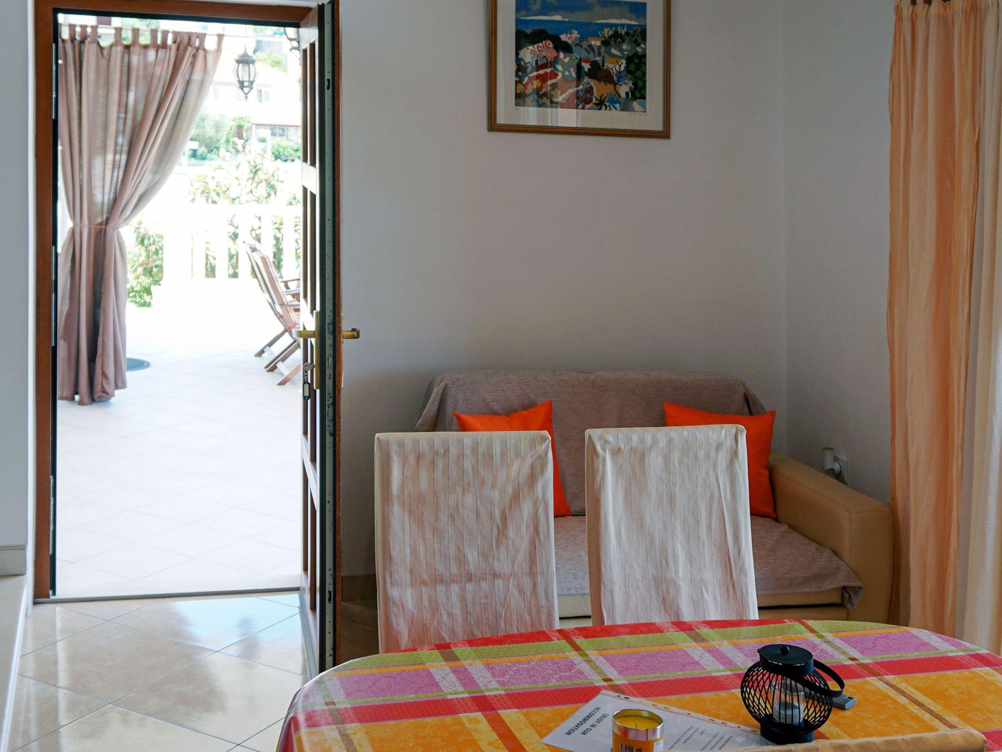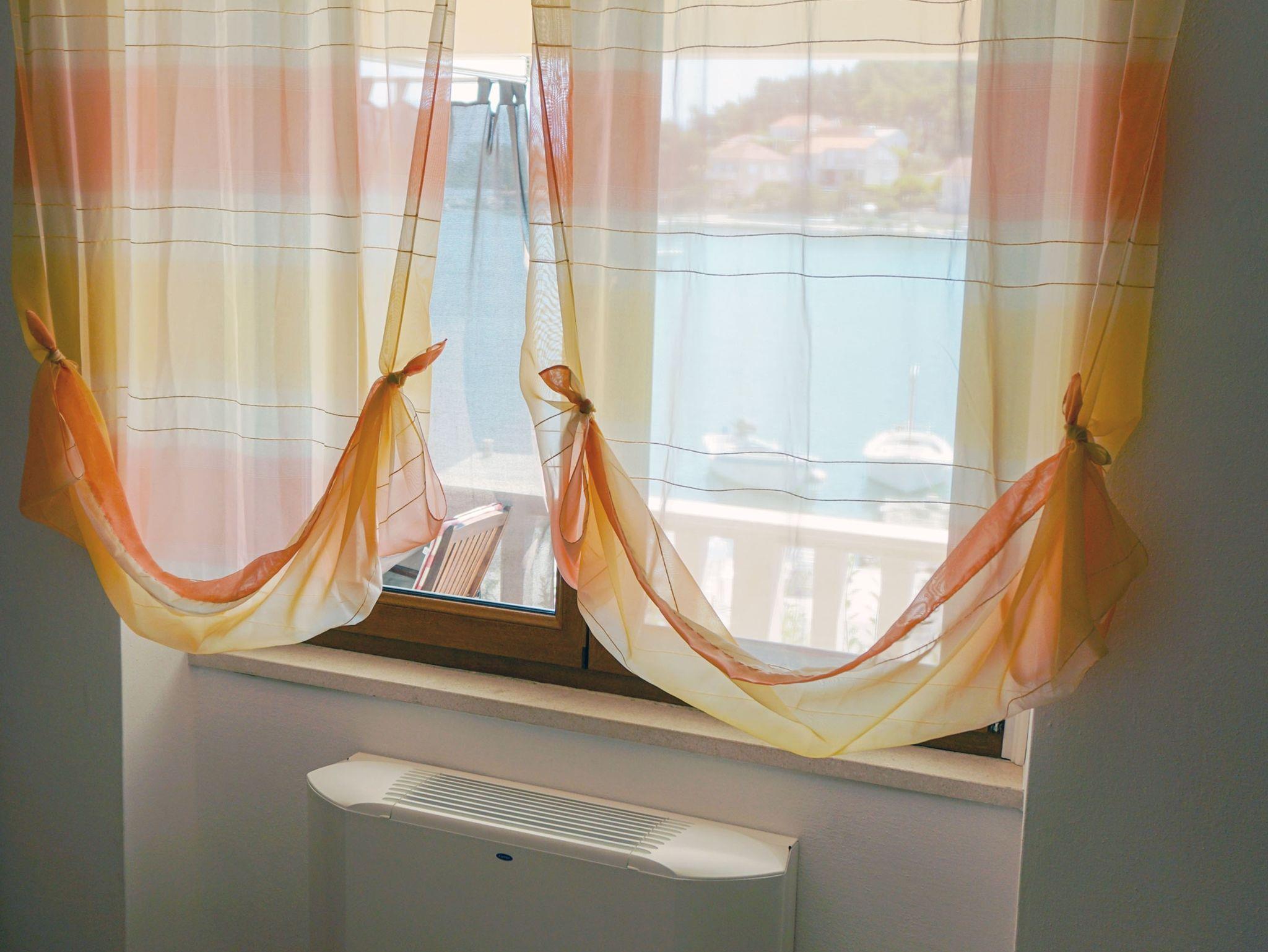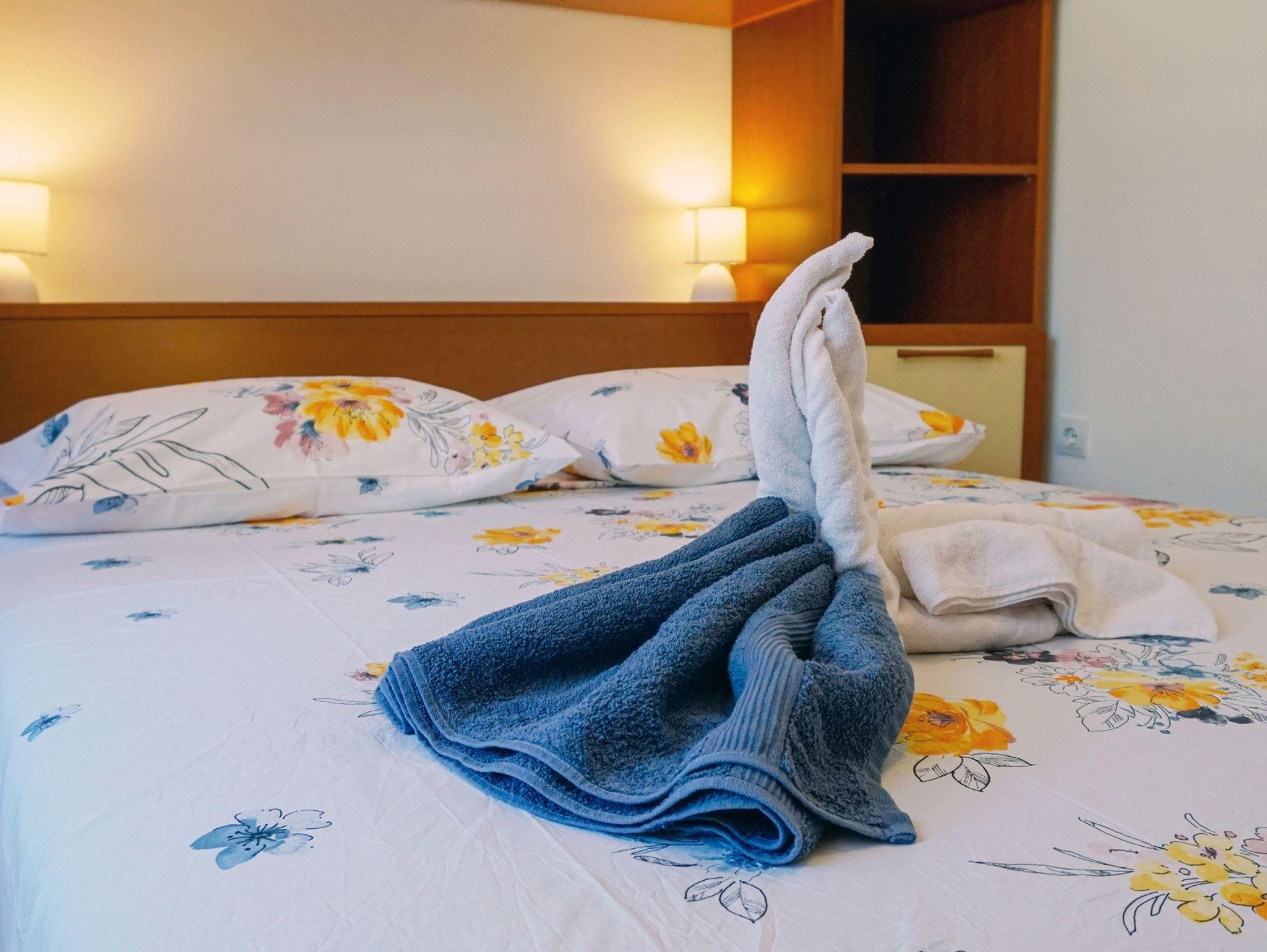 Ferienwohnung bietet Platz für 5 Gäste. Die Betten sind in Schlafzimmern, die es 2 gibt, und in Esszimmer, innerhalb einer Gesamtfläche von 52m2, angeordnet. Die Gäste haben eine eigene Terrasse zur Verfügung, auf der sie in warmen Sommernächten genießen können. Das Apartment bietet Meerblick. Es ist erlaubt, Speisen auf dem Gemeinschafts-Grill vorzubereiten. IM PREIS INBEGRIFFEN: Kurtaxe, Endreinigung, Klimatisierung, Zentralheizung, Parkplatz, Internet, Wäschewaschen, Bootsanlegeplatz, Kinderbett, Bügeleisen, Bügelbrett, Föhn. VERBINDLICHE ZUSÄTZLICHE KOSTEN: Aufzahlung für Kurzaufenthalte (prozentualer Zuschlag pro Nächtigungsanzahl: 30% - 1, 20% - 2, 10% - 3). UNVERBINDLICHE ZUSÄTZLICHE KOSTEN: Frühstück (10,00 €, 50% Nachlass für Kinder zwischen 4 und 12 Jahren, Kinder bis 4 Jahre sind frei.), Halbpension (30,00 €, 50% Nachlass für Kinder zwischen 4 und 12 Jahren, Kinder bis 4 Jahre sind frei.). Die Verfügbarkeit zusätzlicher Dienstleistungen in Ihrem reservierten Termin und die Preise derselben (falls nicht aufgeführt) müssen im Voraus überprüft werden. Zusätzliche Dienstleistungen die in der Zahlungsaufforderung nicht aufgeführt sind werden direkt beim Vermieter bezahlt, angenommen der Gast nutzt auch diese. Ermäßigung auf den Grundpreis: Gratistag 14=13 (bei einem Aufenthalt von 14 Tagen oder mehr erhalten Sie einen Gratistag für den Aufenthalt bis 31.12.26).