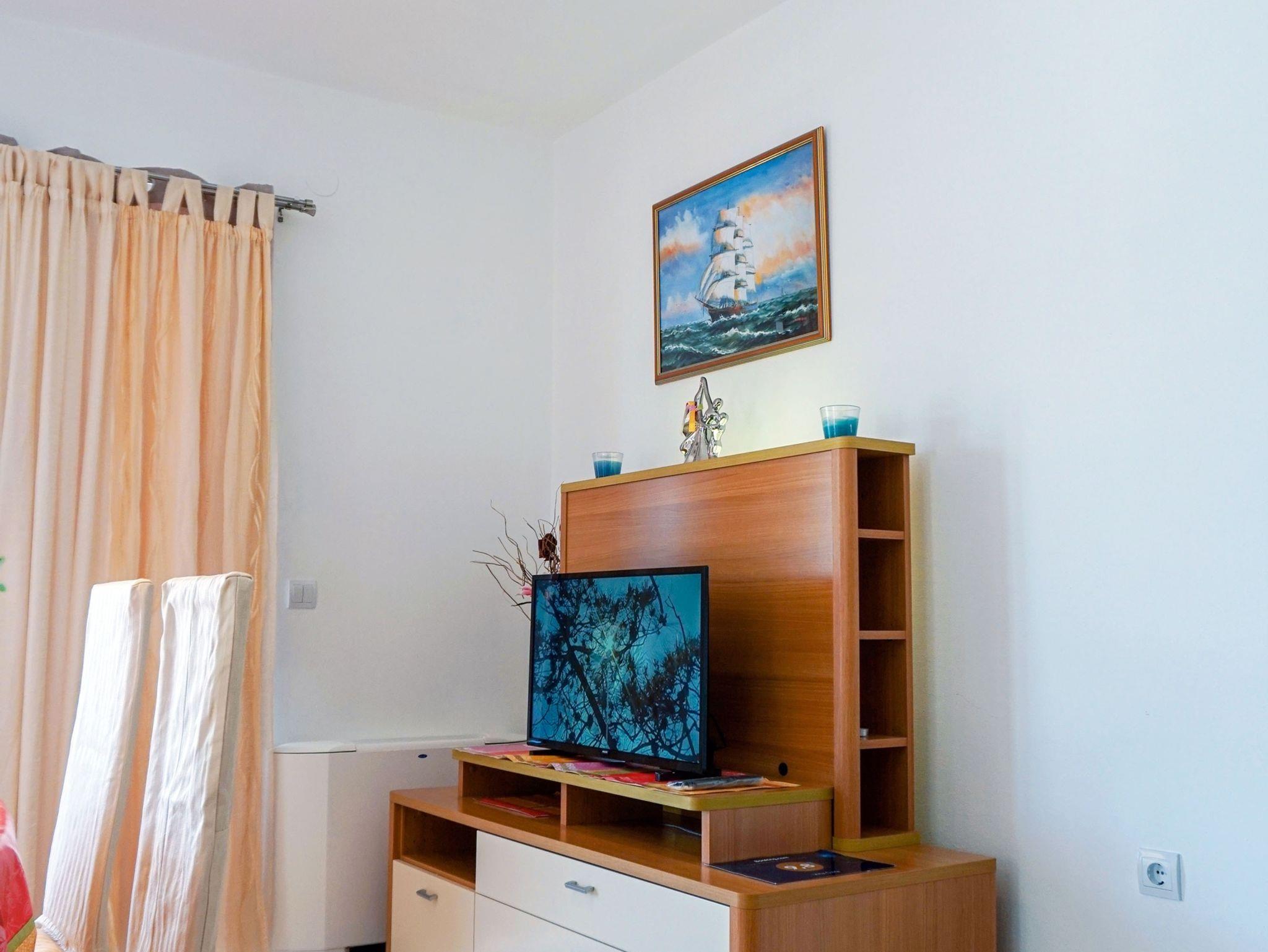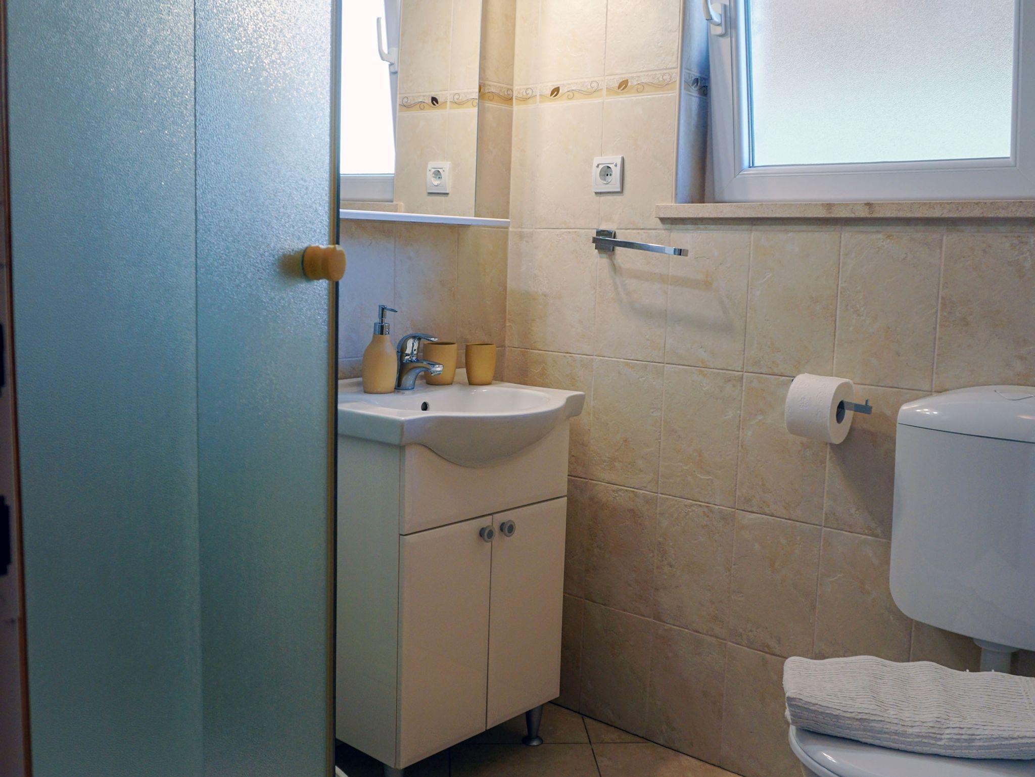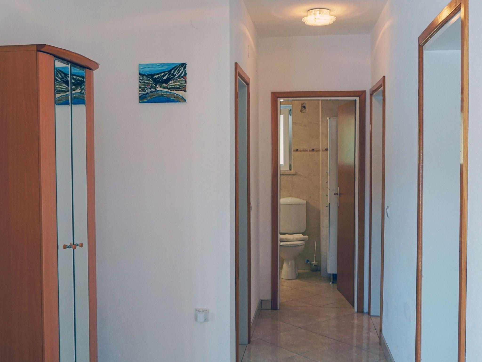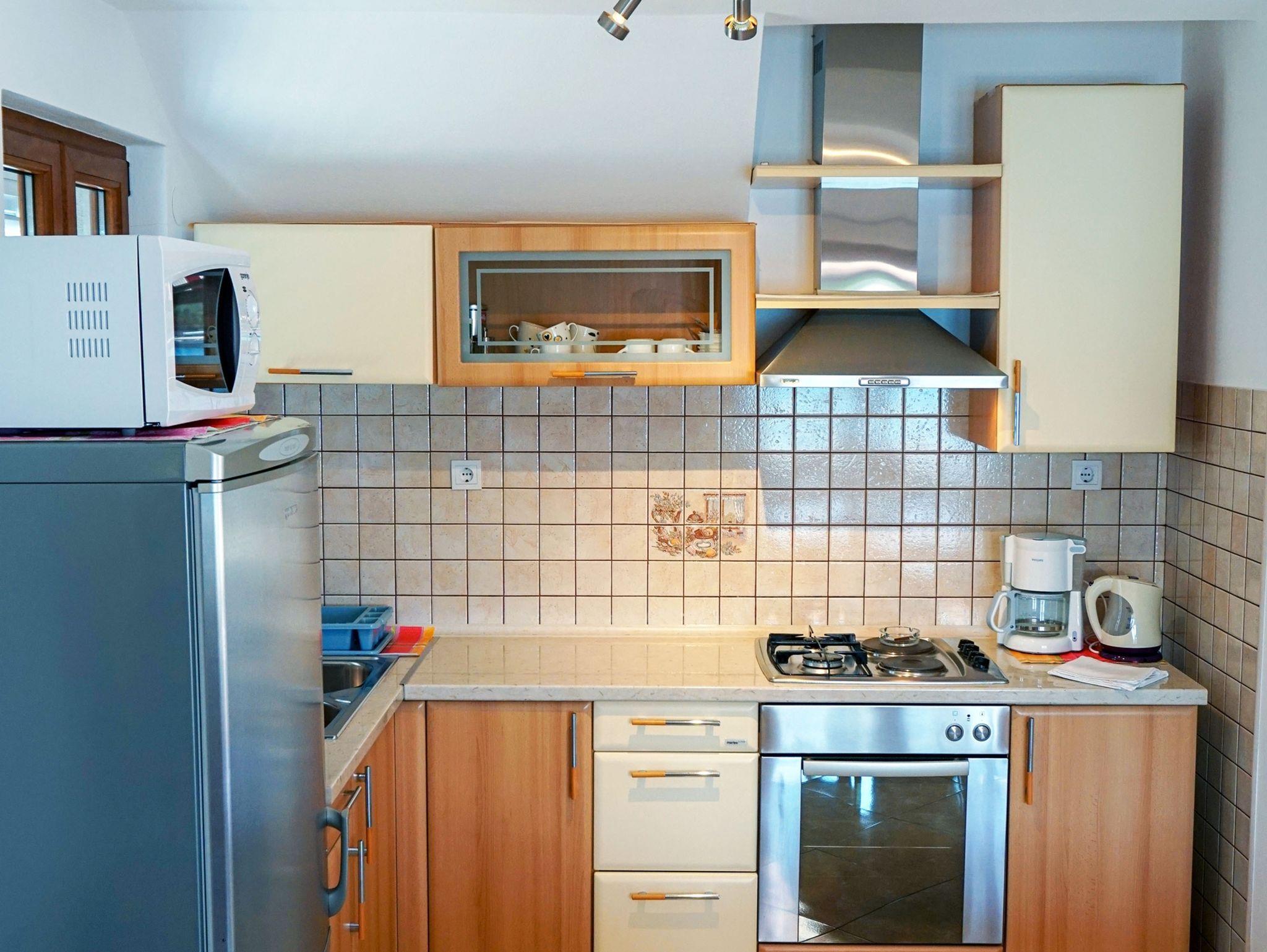 Ferienwohnung bietet Platz für 5 Gäste. Die Betten sind in Schlafzimmern, die es 2 gibt, und in Esszimmer, innerhalb einer Gesamtfläche von 52m2, angeordnet. Die Gäste haben eine eigene Terrasse zur Verfügung, auf der sie in warmen Sommernächten genießen können. Das Apartment bietet Meerblick. Es ist erlaubt, Speisen auf dem Gemeinschafts-Grill vorzubereiten. IM PREIS INBEGRIFFEN: Kurtaxe, Endreinigung, Klimatisierung, Zentralheizung, Parkplatz, Internet, Wäschewaschen, Bootsanlegeplatz, Kinderbett, Bügeleisen, Bügelbrett, Föhn. VERBINDLICHE ZUSÄTZLICHE KOSTEN: Aufzahlung für Kurzaufenthalte (prozentualer Zuschlag pro Nächtigungsanzahl: 30% - 1, 20% - 2, 10% - 3). UNVERBINDLICHE ZUSÄTZLICHE KOSTEN: Frühstück (10,00 €, 50% Nachlass für Kinder zwischen 4 und 12 Jahren, Kinder bis 4 Jahre sind frei.), Halbpension (30,00 €, 50% Nachlass für Kinder zwischen 4 und 12 Jahren, Kinder bis 4 Jahre sind frei.). Die Verfügbarkeit zusätzlicher Dienstleistungen in Ihrem reservierten Termin und die Preise derselben (falls nicht aufgeführt) müssen im Voraus überprüft werden. Zusätzliche Dienstleistungen die in der Zahlungsaufforderung nicht aufgeführt sind werden direkt beim Vermieter bezahlt, angenommen der Gast nutzt auch diese. Ermäßigung auf den Grundpreis: Gratistag 14=13 (bei einem Aufenthalt von 14 Tagen oder mehr erhalten Sie einen Gratistag für den Aufenthalt bis 31.12.26).