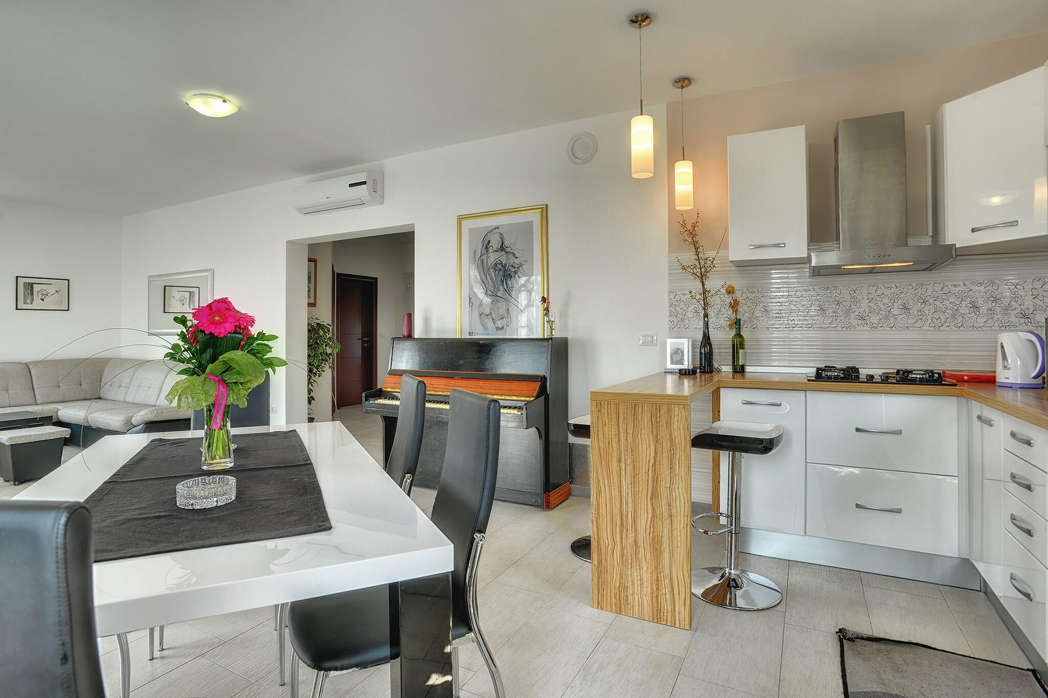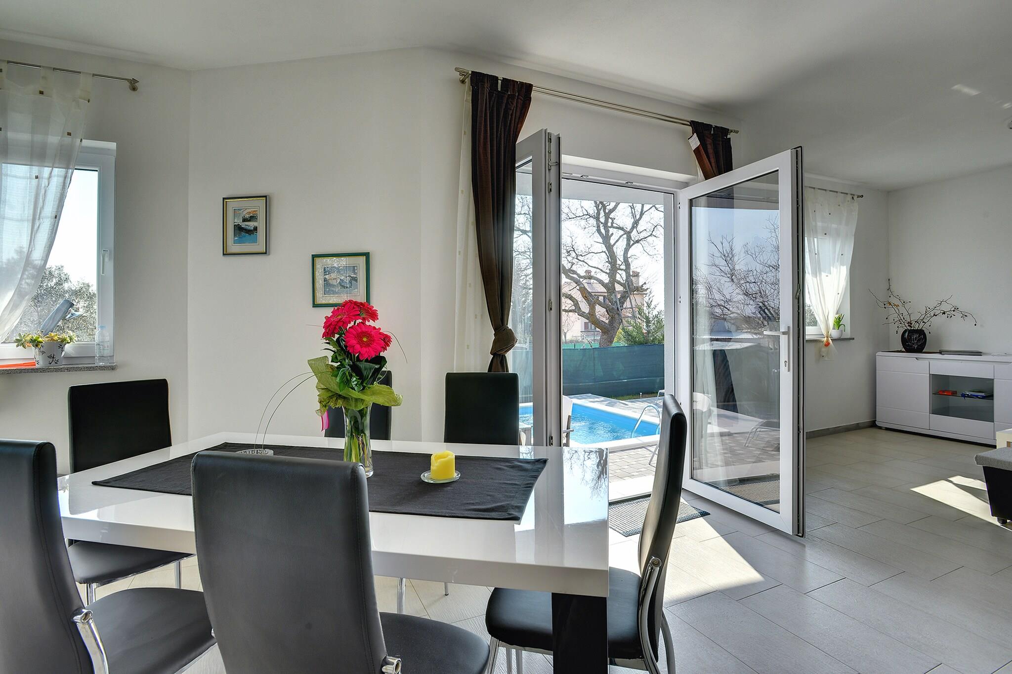 Beliggende i det charmerende istriske hinterland er Villa Amber i Majmajola kun fem minutter i bil fra byen Vodnjan. Denne moderne villa i Majmajola er fuldt udstyret og spredes på to niveauer - stue og køkken er indrettet i stueetagen samt et af soveværelserne, mens de resterende tre soveværelser ligger ovenpå og alle har eget badeværelse. Stueetagen er et rum stort og lyst, der er godt forbundet. Køkkenet er hvidt, enkelt og fuldt udstyret, mens stuen er meget komfortabel takket være sofaen hjørnet ligger lige overfor indgangsdøren. Gæsterne kan nyde de komfortable liggestole ved poolen, udendørs bruser og plads til at lege med børn og kæledyr, i den indhegnede ejendoms sikkerhed. Villa Amber er et godt valg, hvis du er på udkig efter et roligt sted og privatliv, og det er perfekt for en familieferie. I nærheden er der også en fantastisk cykelsti, der vil glæde fans af aktive ferier.