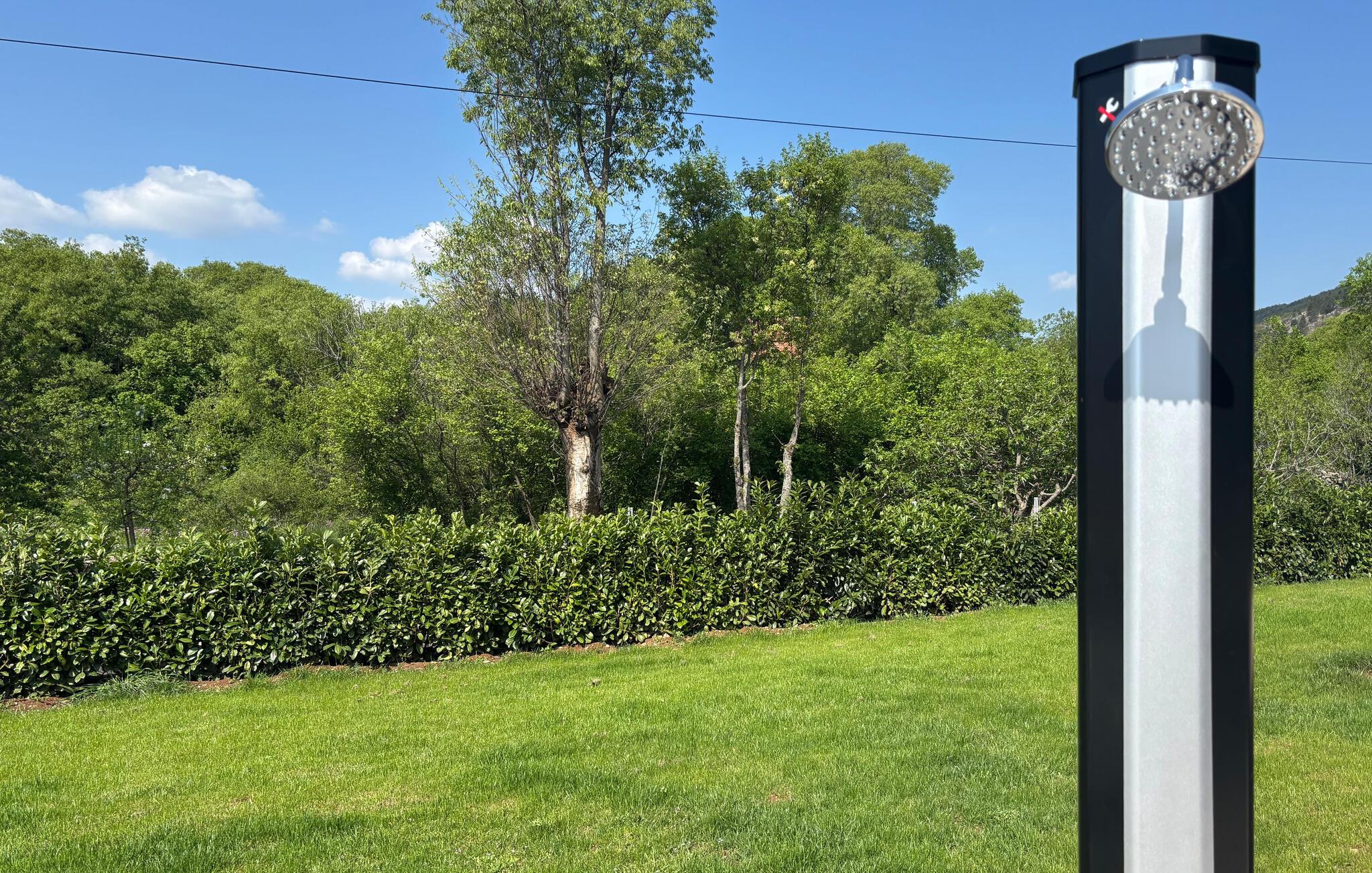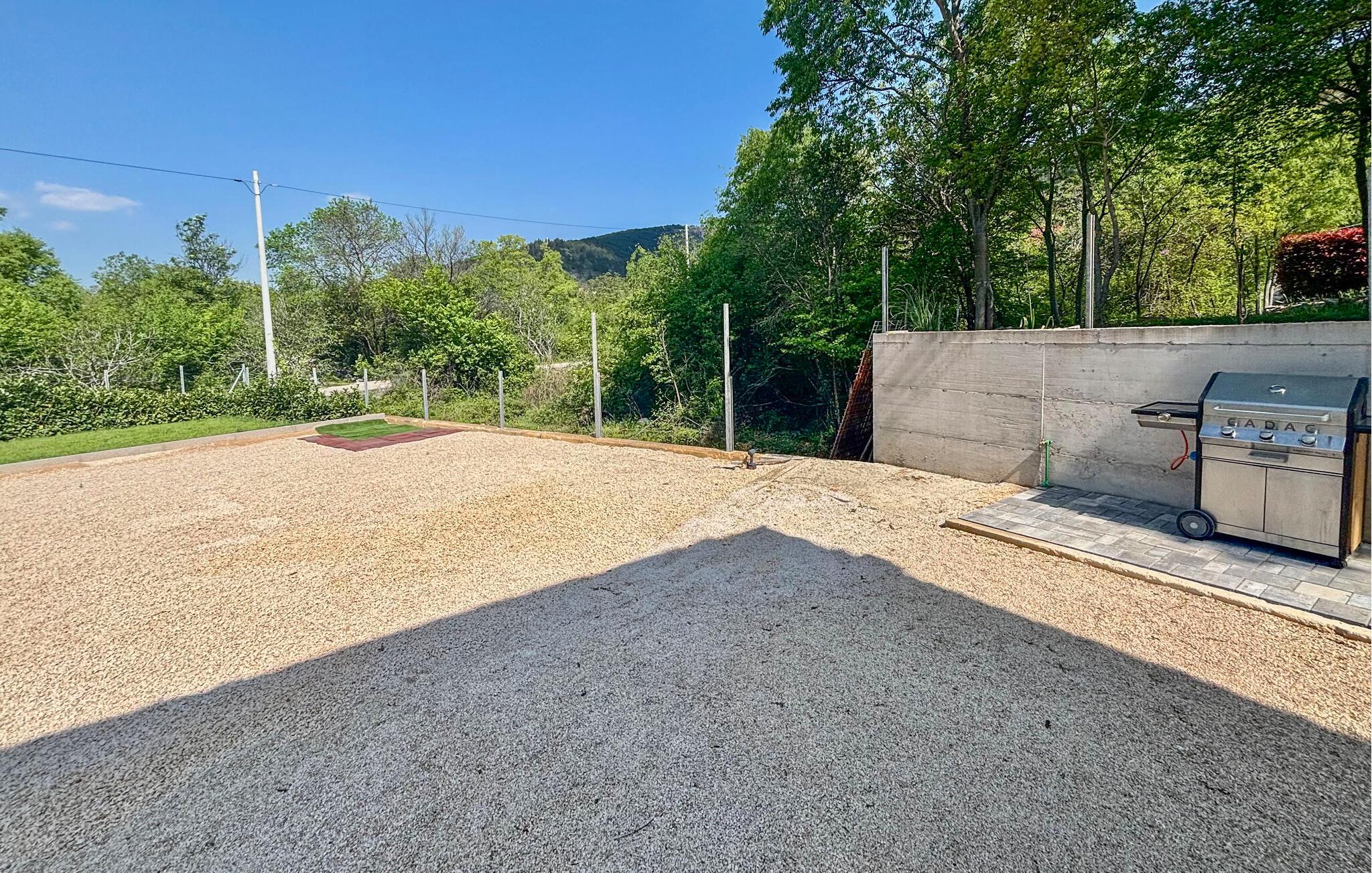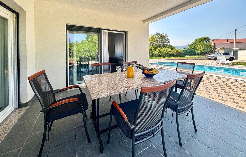 Udenfor finder du et rummeligt poolområde med liggestole og masser af plads til at slappe af. Du kan nyde afslappende timer i skyggen på den overdækkede terrasse, mens den rummelige have byder på fred og privatliv, ideelt til solrige dage og lune aftener.