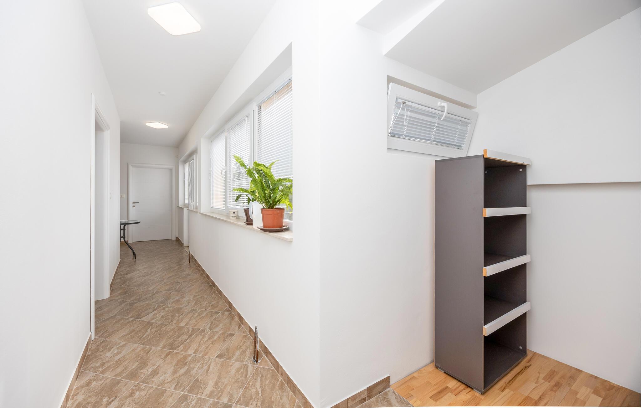 Denne moderne og venlige ferielejlighed med højt til loftet og rummelige værelser giver jer lige den komfort, I ønsker jer på ferien. Det hyggelige køkken, der er fuldt udstyret, indbyder til fælles madlavning, mens det komfortable opholdsområde er perfekt til afslappede aftener med spil og hygge. På ejendommen står en fælles grill til rådighed – ideel til at tilberede lækre retter under åben himmel, måske endda lokale specialiteter.