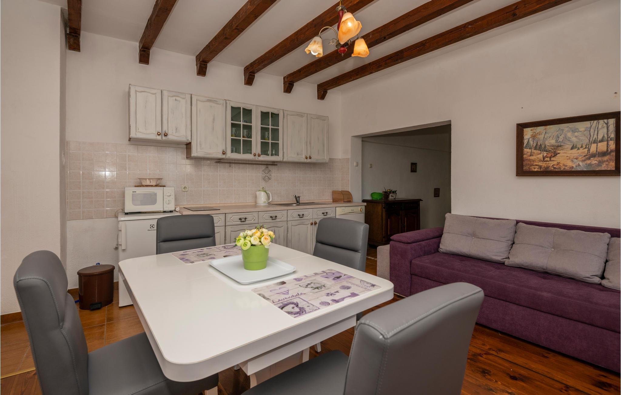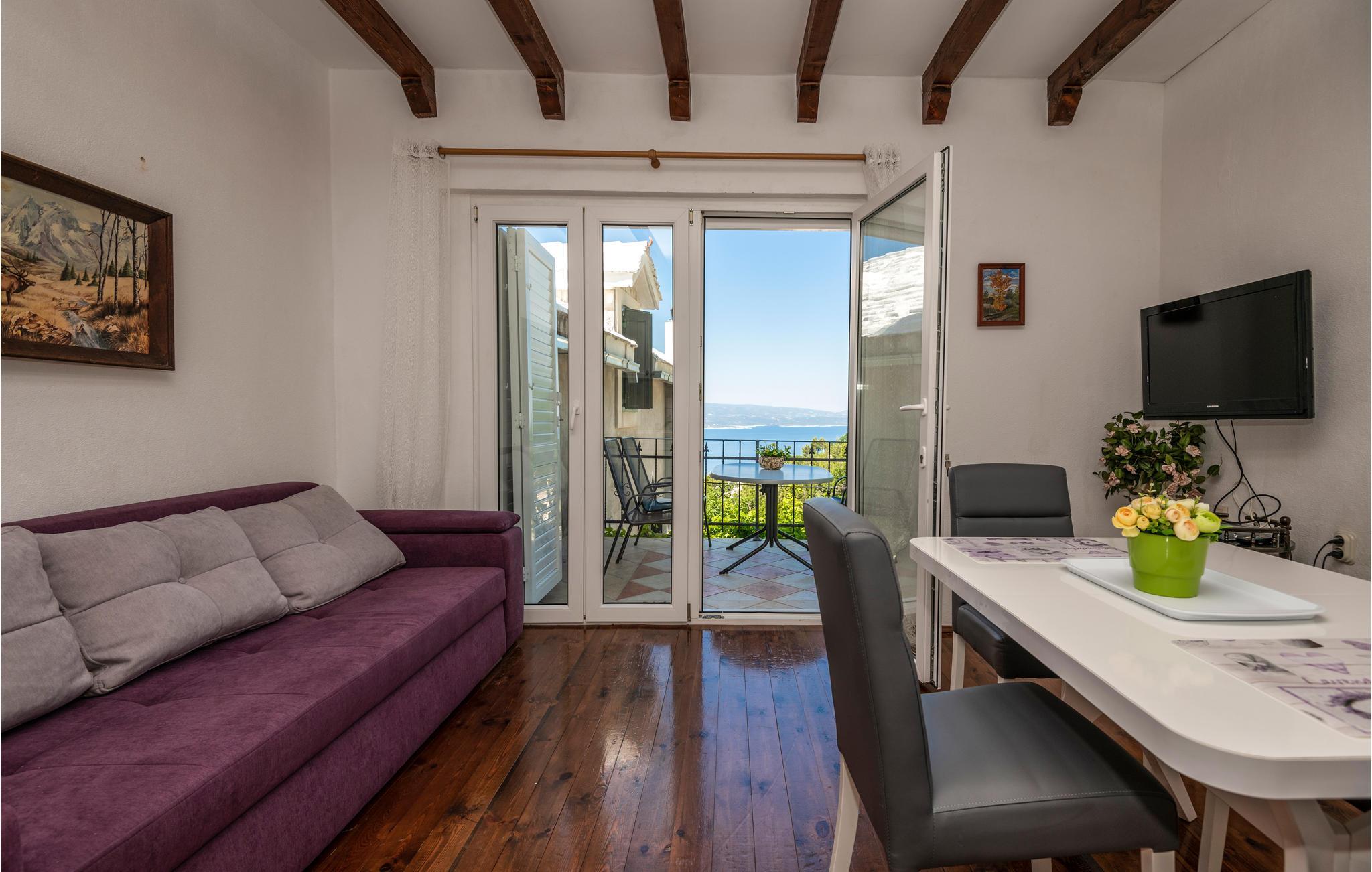 Huset ligger i en dalmatisk landsby på Makarska Riviera, ca. 350 m over havets overflade og ved foden af ??Monte Biokovo naturpark. Det består af to boligenheder på første og anden sal, der er forbundet via en intern trappe. Fra anden sal er der en terrasse med havudsigt, hvor I kan nyde solen og den friske luft. Huset er enkelt indrettet og holdes i original stil. I stueetagen med separat indgang er der et lille køkken med grill til sociale sammenkomster.