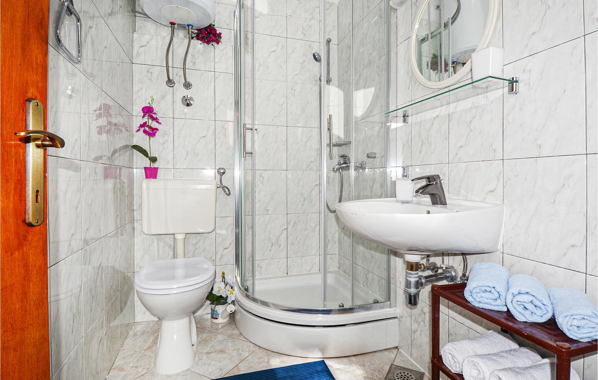 Badeværelse (nr. 1) - WC. Varmt og koldt vand. Bruser