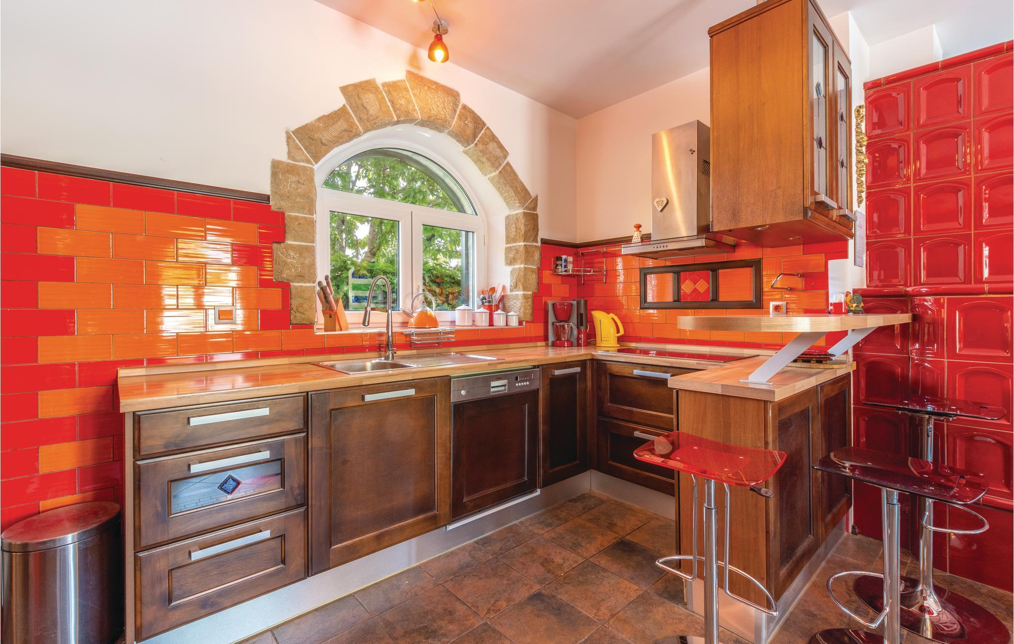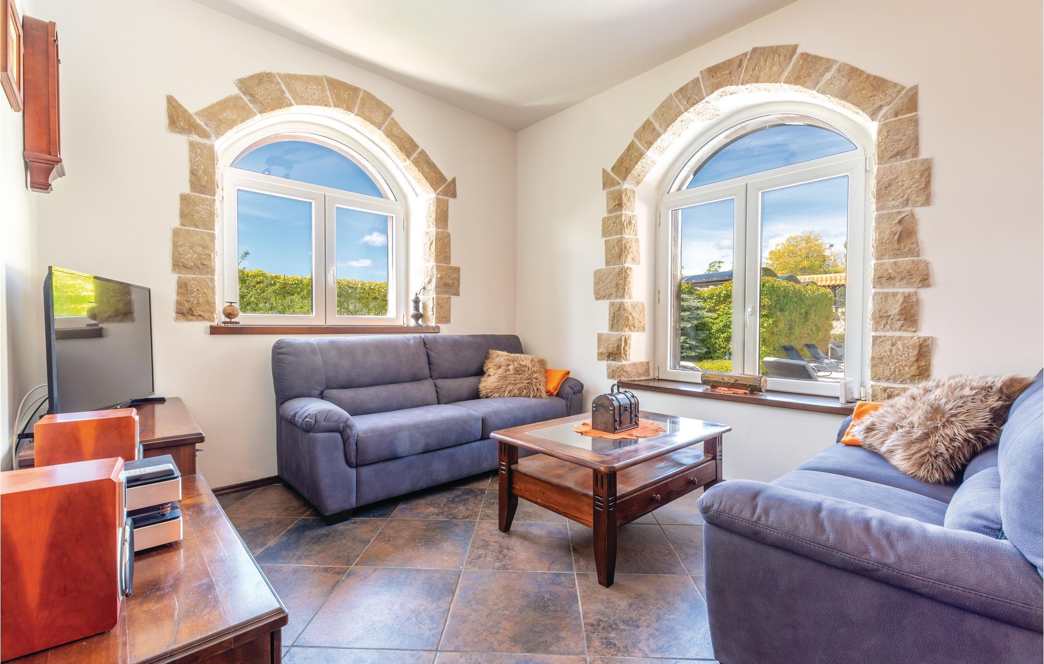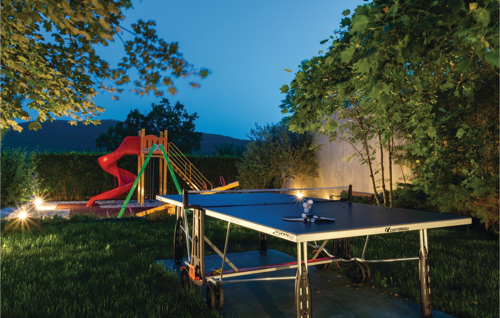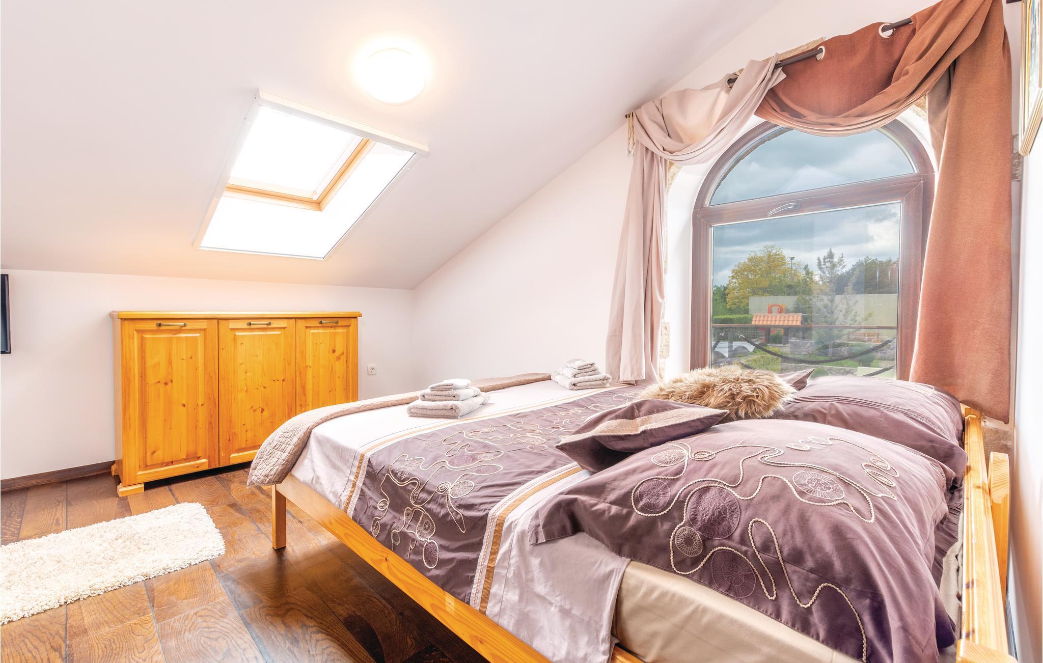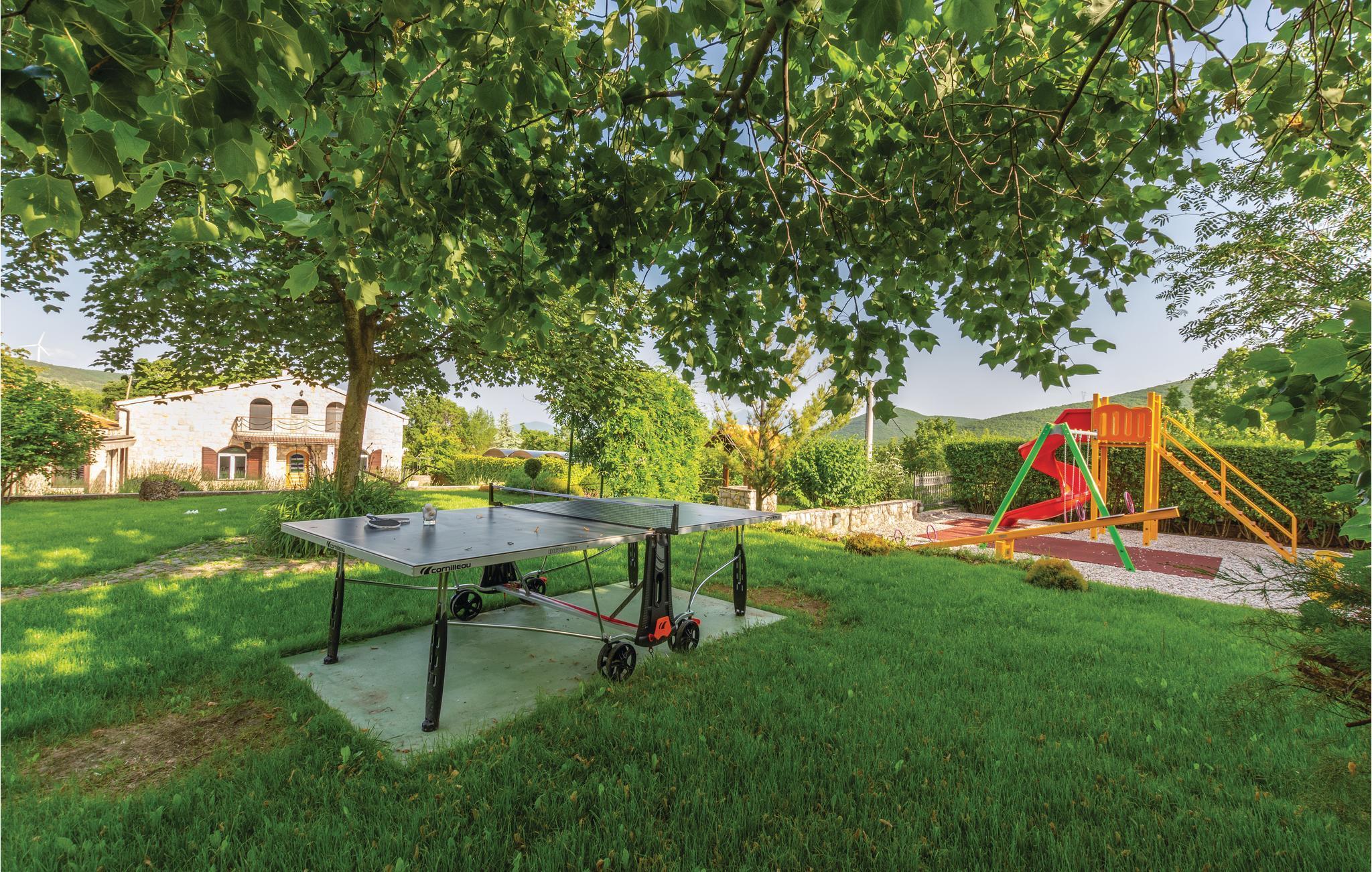 Denne luksuriøse og rummelige villa ligger i Dalmatiens fastland. Villaen er i bygget i en blanding af moderne og traditionel stil. Den moderne møblerede stue, spisestue og køkken fordeler sig på over 100 kvadratmeter. En vindeltrappe fører op til den øverste etage med tre soveværelser. Fra terrassen er der en dejlig udsigt over de rolige omgivelser i haven, petanque-bane og swimming pool med jacuzzi. Poolen er stor, her kan I tage et en god svømmetur og få løsnet det ømme muskler. Mod betaling kan du smage de fine vine i vinkælderen, ejer giver gerne en forklaring om hvad det er flaskerne indeholder. Efter aftale og mod betaling kan udlejeren arrangere en traditionel middag. På en halv times kørsel i bil kan I nå de smukke strande i Omis eller Makarska. Fra den gamle borg i Omis, er der en fantastisk udsigt over den gamle by og havet. Bestemt et besøg værd! Soveværelse nr 5 har separat indgang. Der er flere underholdende spil I kan benytte her.