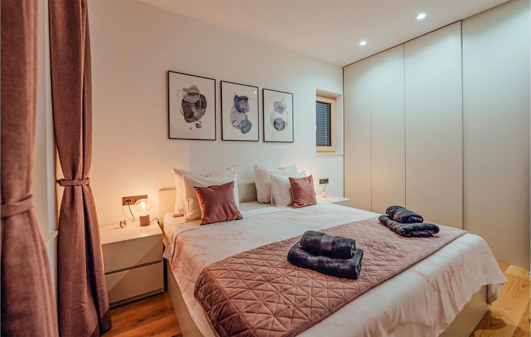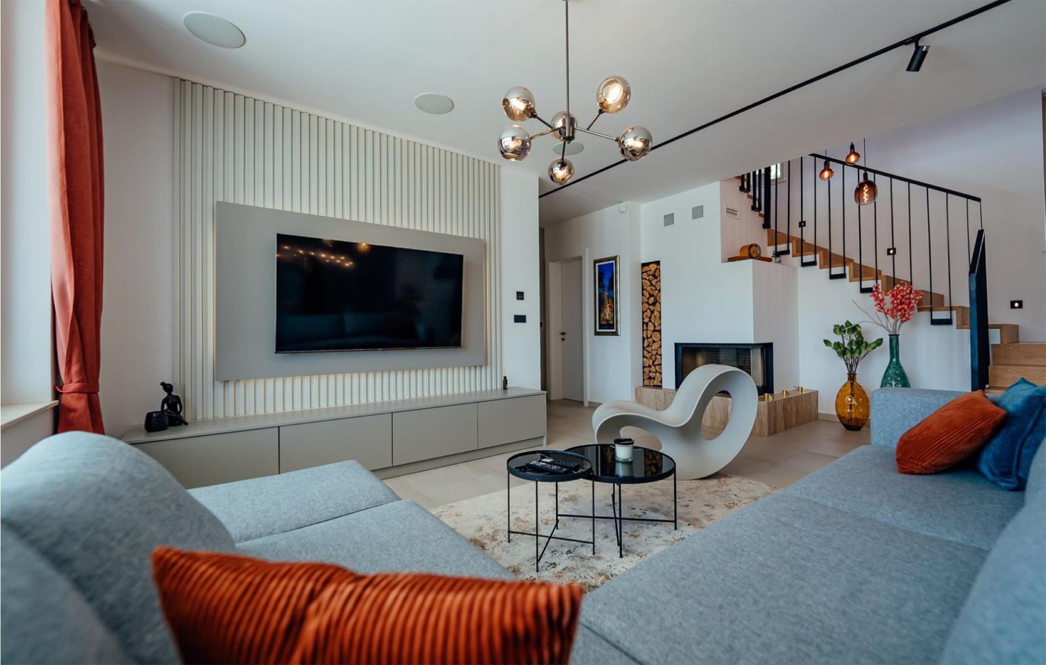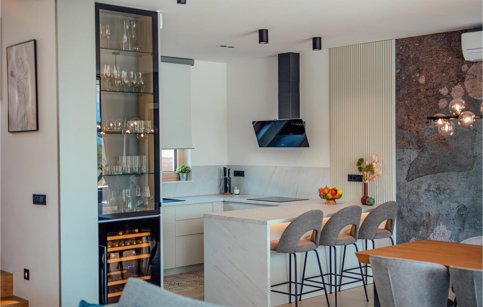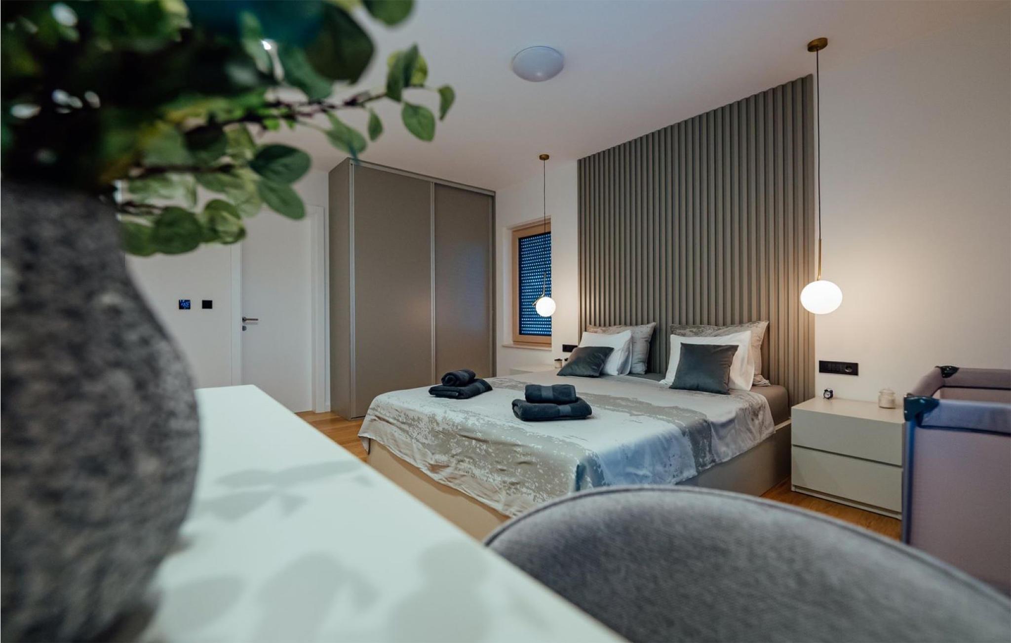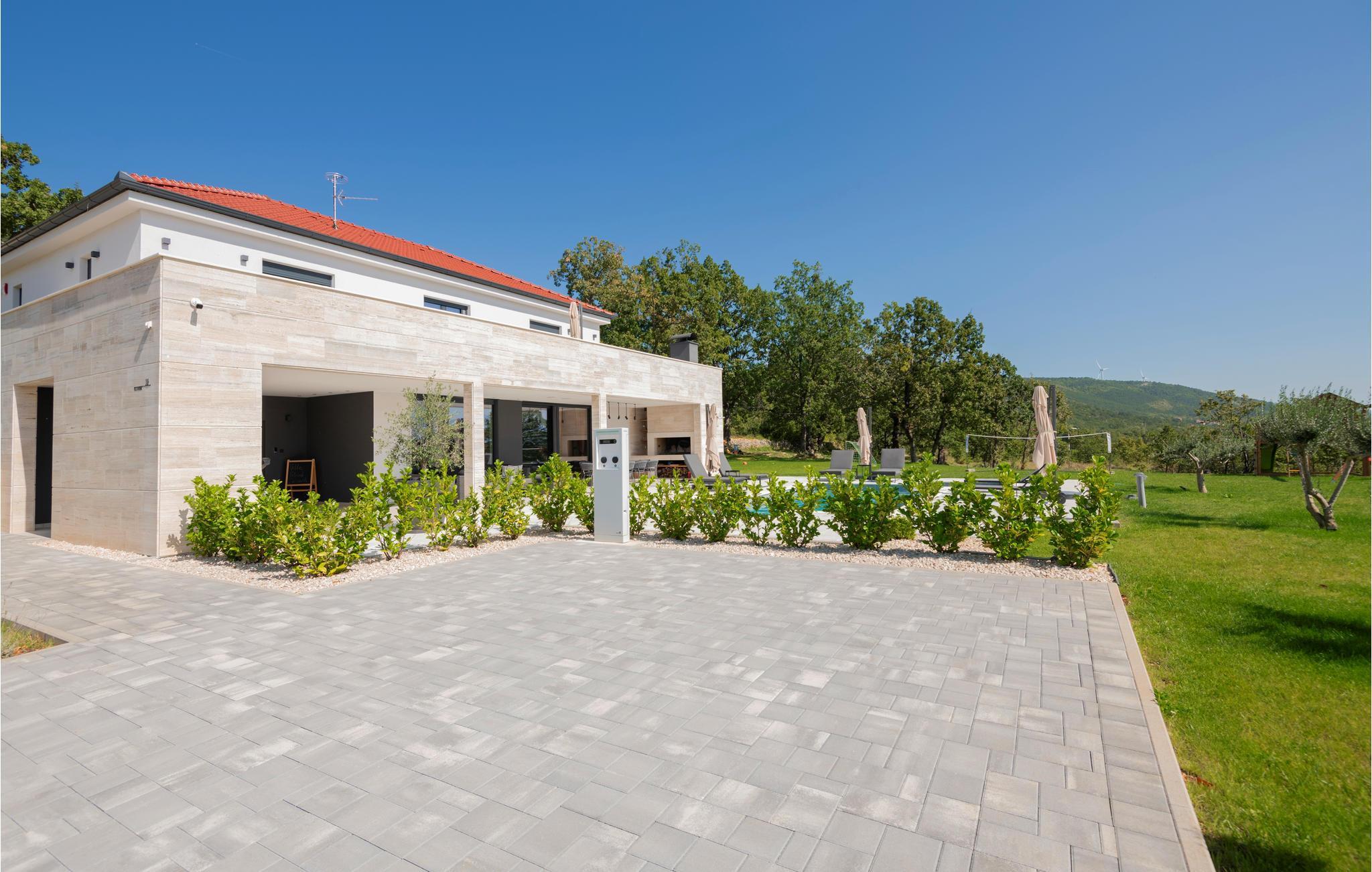 Det børnevenlige og komfortable hus byder jer velkommen med en fantastisk beliggenhed bag den dalmatiske kyst, og her kommer I ikke til at mangle noget. Noget af det første, I vil lægge mærke til, er udsigten over det maleriske landskab gennem de store panoramavinduer. Den stilfulde atmosfære indgyder ren afslapning, og efter en behagelig massage i boblebadet og en tur i saunaen kan I sætte jer godt til rette ved pejsen og sludre til sent ud på aftenen. Her har I valget mellem flere terrasser, hvor I kan nyde solen og den smukke udsigt. Se jeres børn lege på den store grund og saml hele familien om aftenen til et lækkert måltid fra grillen.