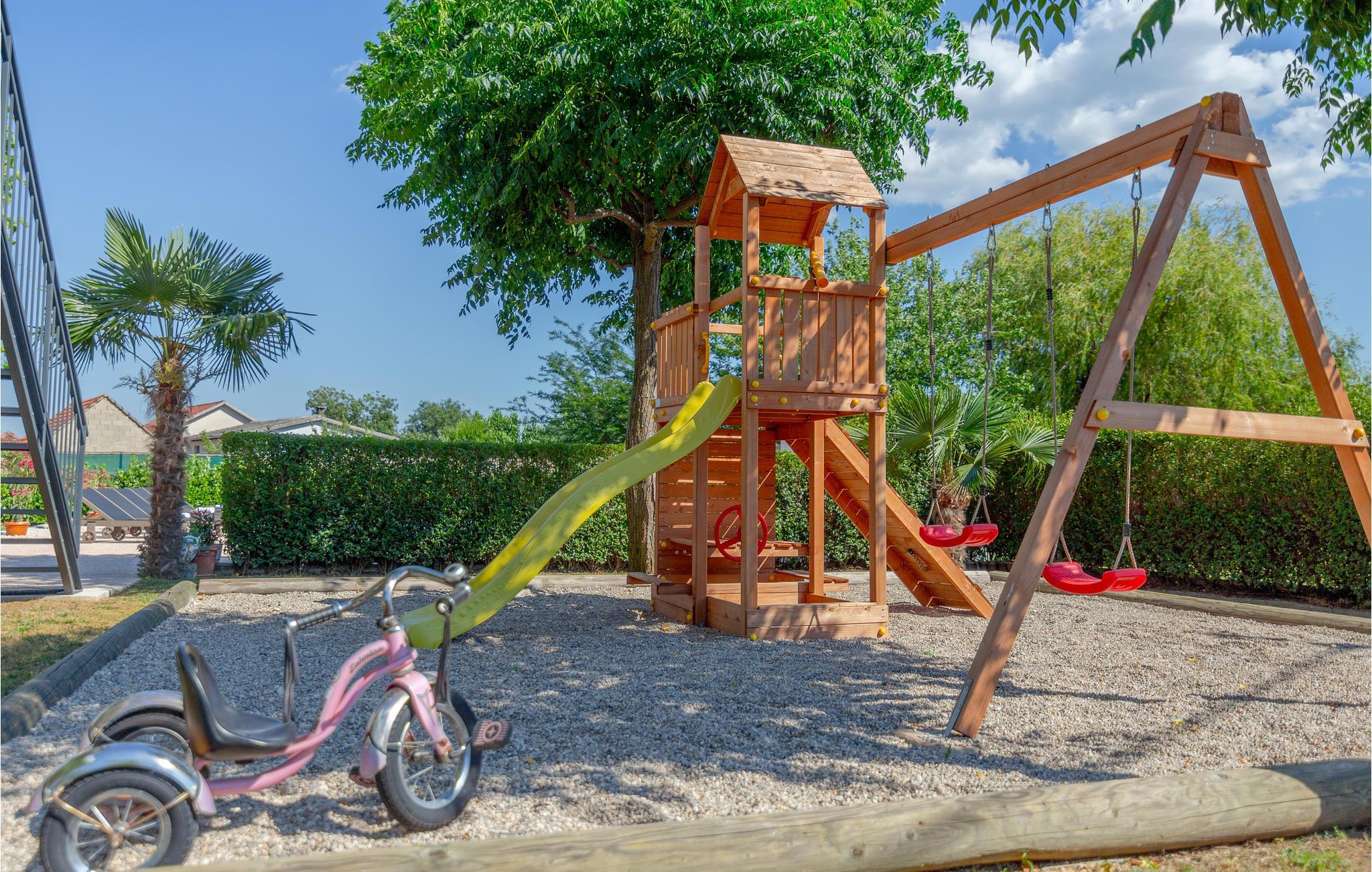 Det består af to boenheder med separate indgange, der er tilgængelige udefra. Den mindre lejlighed ligger i stueetagen, og den større, med en overdækket terrasse, er på første sal. Ferieboligen har en anden overdækket terrasse med grill, der er beregnet til hyggelige grillaftener, og der er legeredskaber til børn på græsplænen, så her er der ikke nogen, der kommer til at kede sig.