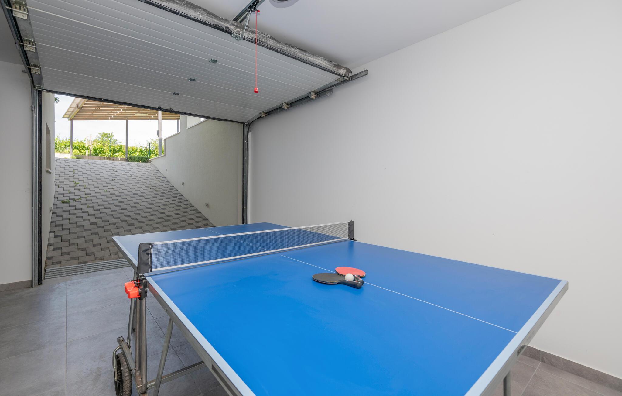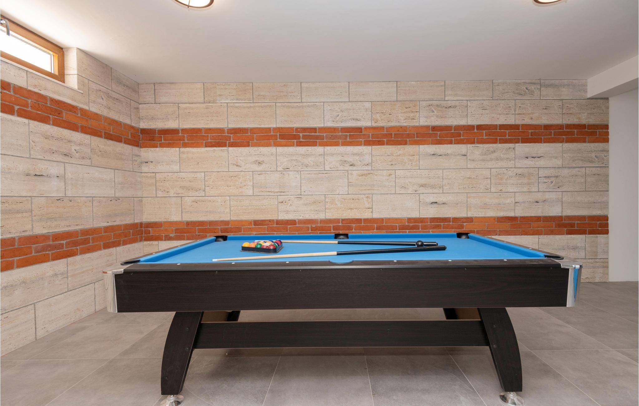 I dette veludstyrede hus bliver I budt velkommen af smagfulde, moderne møbler og lyse lokaler. I kælderen sørger billard-, bordfodbold- og bordtennisbordene for underholdning, mens det rummelige køkken og opholdsrum sørger for en hyggelig ramme om samværet på jeres ferie. Terrassehaven er stor og indhegnet med grill, liggestole og en rummelig pool med lavvandet sektion til børn og hydromassagestråler. For de mindste er der en legeplads med gynge, sandkasse og rutsjebane