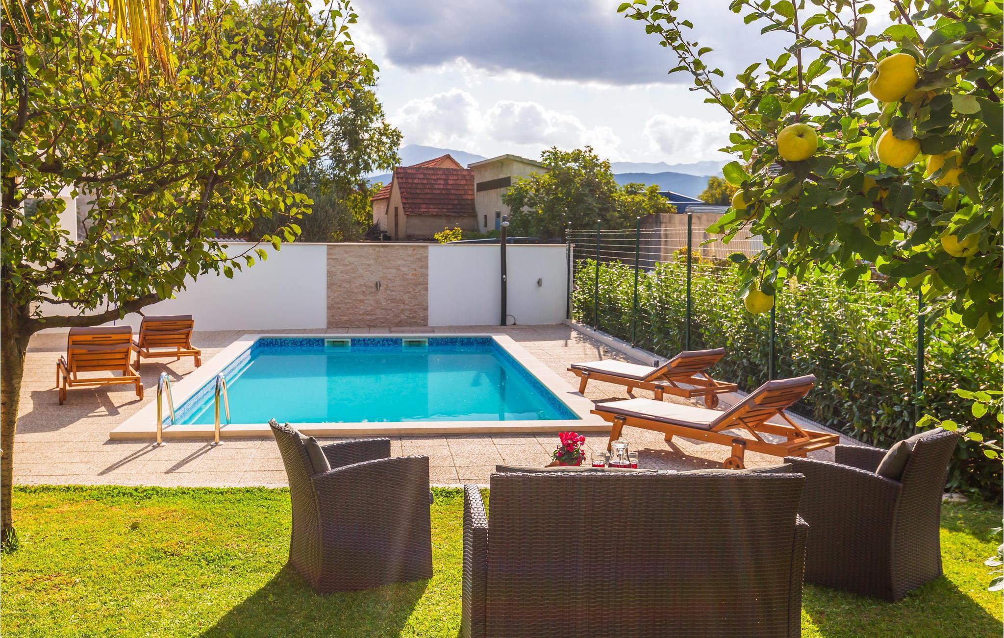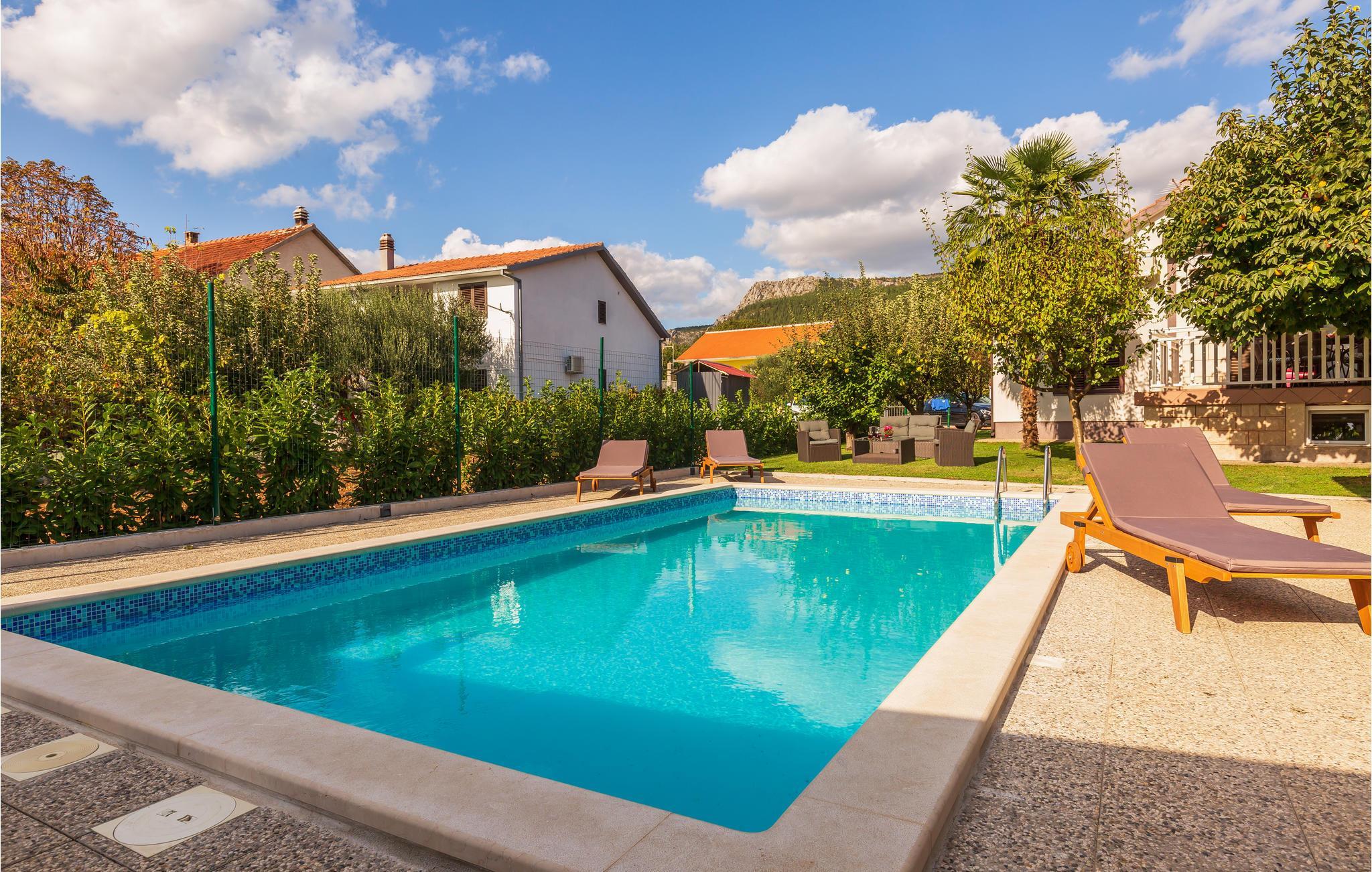 Dette enkelt og indbydende indrettede feriehus ligger i byen Donji Prolozac. Huset er omgivet at frugttræer og vinbjerge og i haven er poolen parat, til vandsjov og svømmeture på de dejligt varme og lange feriedage. Terrassen indbyder til hyggeligt udendørs samvær og på legepladsen er der mange timers underholdning til de små familiemedlemmer. Til de større findes der aktivitetsrum med spændende udfordringer. Til byen Imotski, med mange former for ferieunderholdning er der seks km. Der er 25 km til de skønne kiesstrande ved Makarskas riviera.