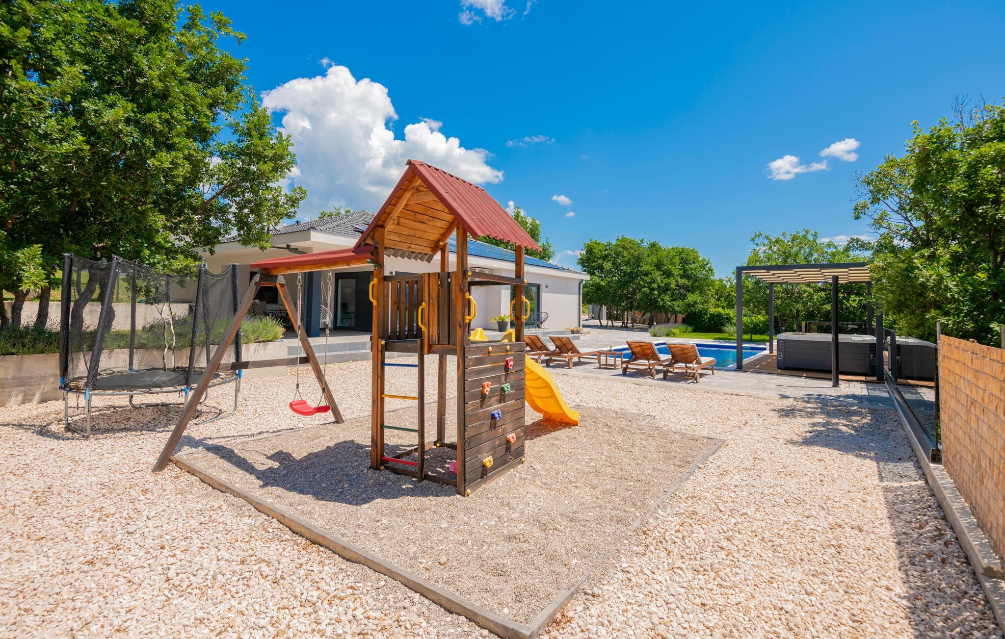 Fritidsudstyr som billard, fodbold, bordtennis og træningsudstyr i loungen giver mere underholdning. De mindste gæster kan have det sjovt på legepladsen. Placeringen af ??huset, ikke langt fra smukke søer samt cykel- og vandrestier, er ideel til yderligere aktiviteter og vandreture.