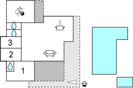 Opholdsstue/køkken 70m2 - 2 Sovepladser. (Sofa, madras eller lignende).