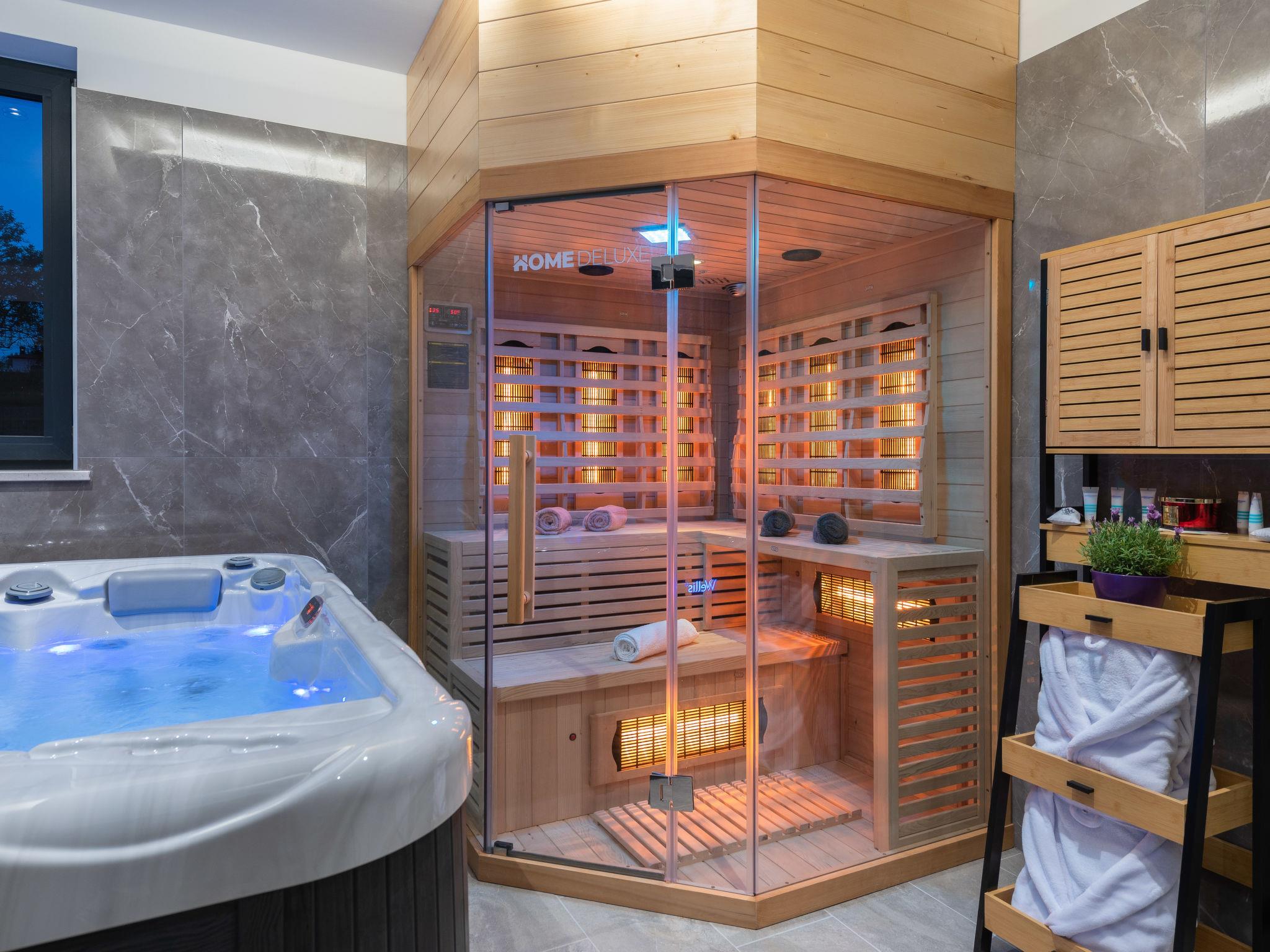 Outdoor the villa you can enjoy in a smaller building of 30 m2 with sauna and Jacuzzi for your relax. By the big size heated pool is a BBQ grill and an covered outdoor dinning area.