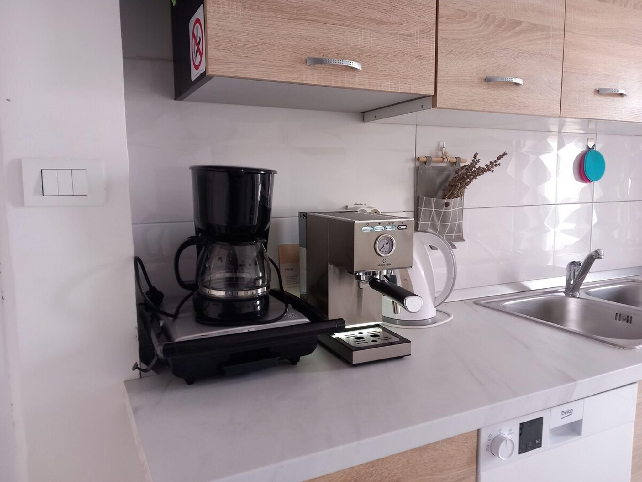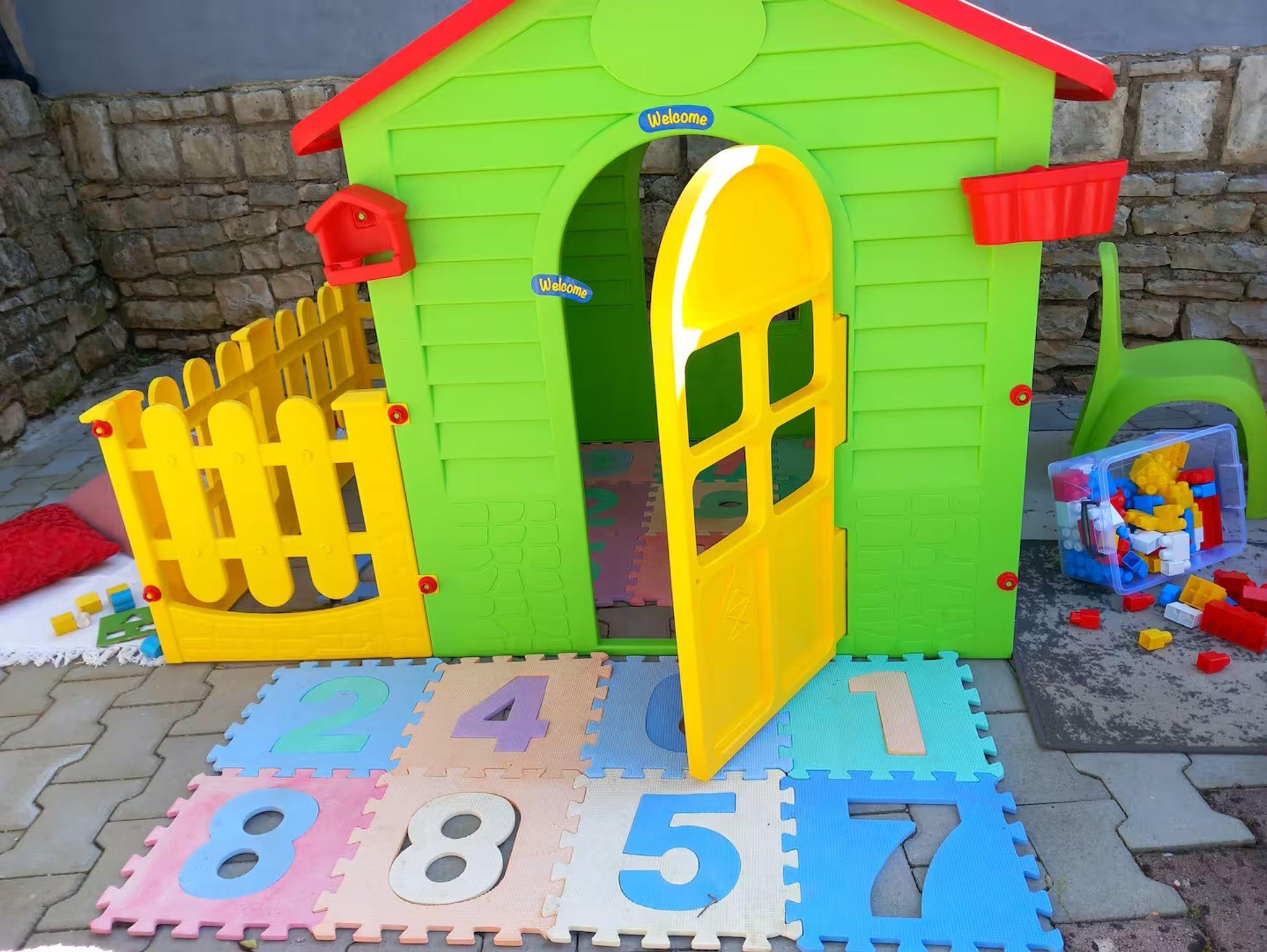 Hof (250m2, Kinderbereich, Sitzbereich), Parkplatz (Anzahl der Parkplätze: 6, Entfernung vom Objekt: 10 m), Pool: gemeinsam, Dimensionen: 6.9m x 3.5m x 1.5m, Wassertyp: Süßwasser, Grill: gemeinsam, WiFi Internet, Föhn, Sonnenschirm, Kinderbett