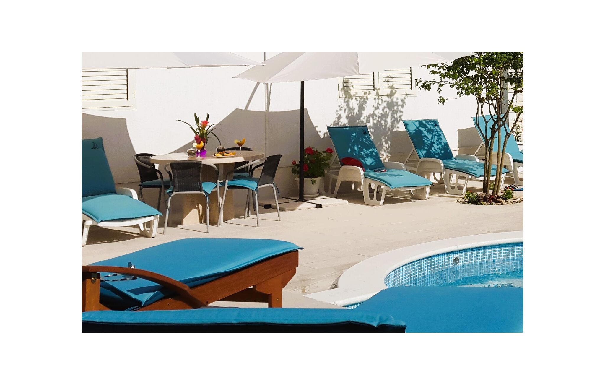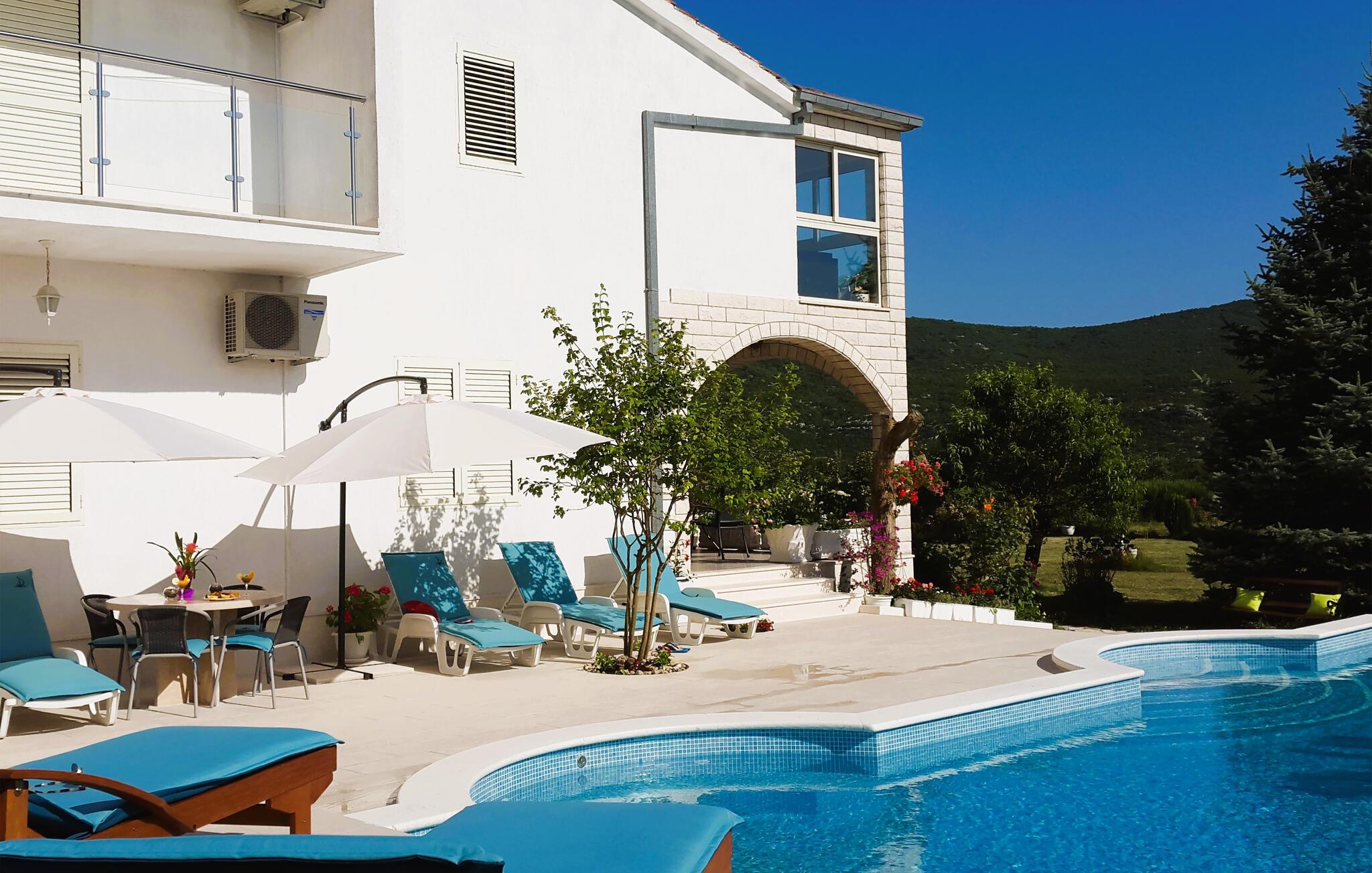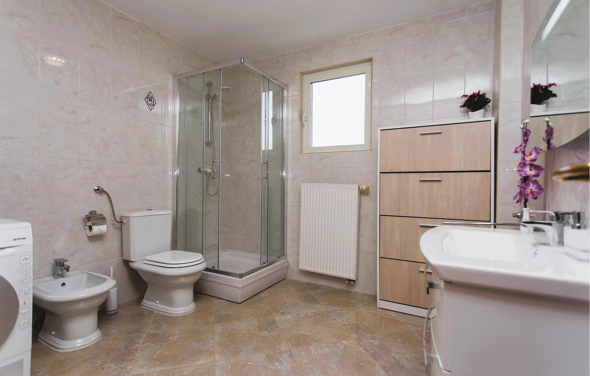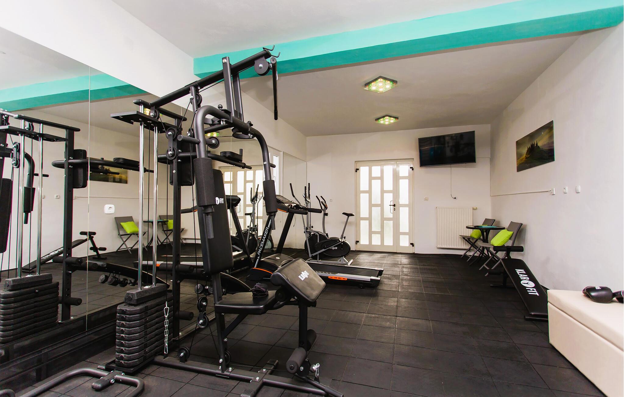 Dette rummelige feriehus i Neoric tilbyder jer det perfekte tilflugtssted for en uforglemmelig ferie. De lyse og komfortable møbler skaber en afslappet atmosfære, hvor I straks føler jer hjemme. Det store køkken-alrum med langbord og behageligt sofaområde byder på god plads til fællesspisning og hyggeaftener - og alt sammen med direkte udsigt til poolen. Sæt hverdagen på pause, og nyd de førsteklasses faciliteter: hvad enten det er i saunaen, i fitnessrummet eller på den udendørs sportsplads - her får alle for pengene. Den store pool sikrer forfriskende stunder under den kroatiske sol.