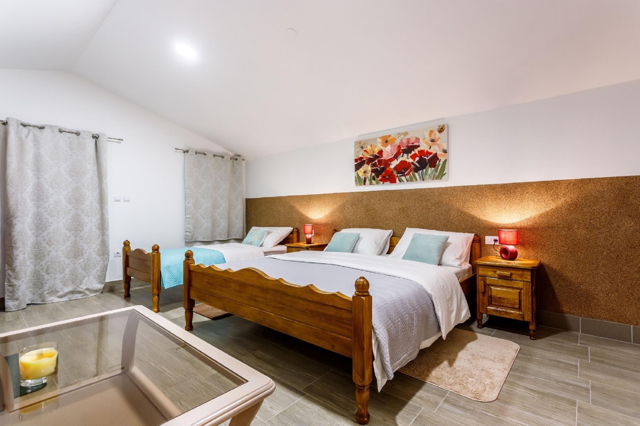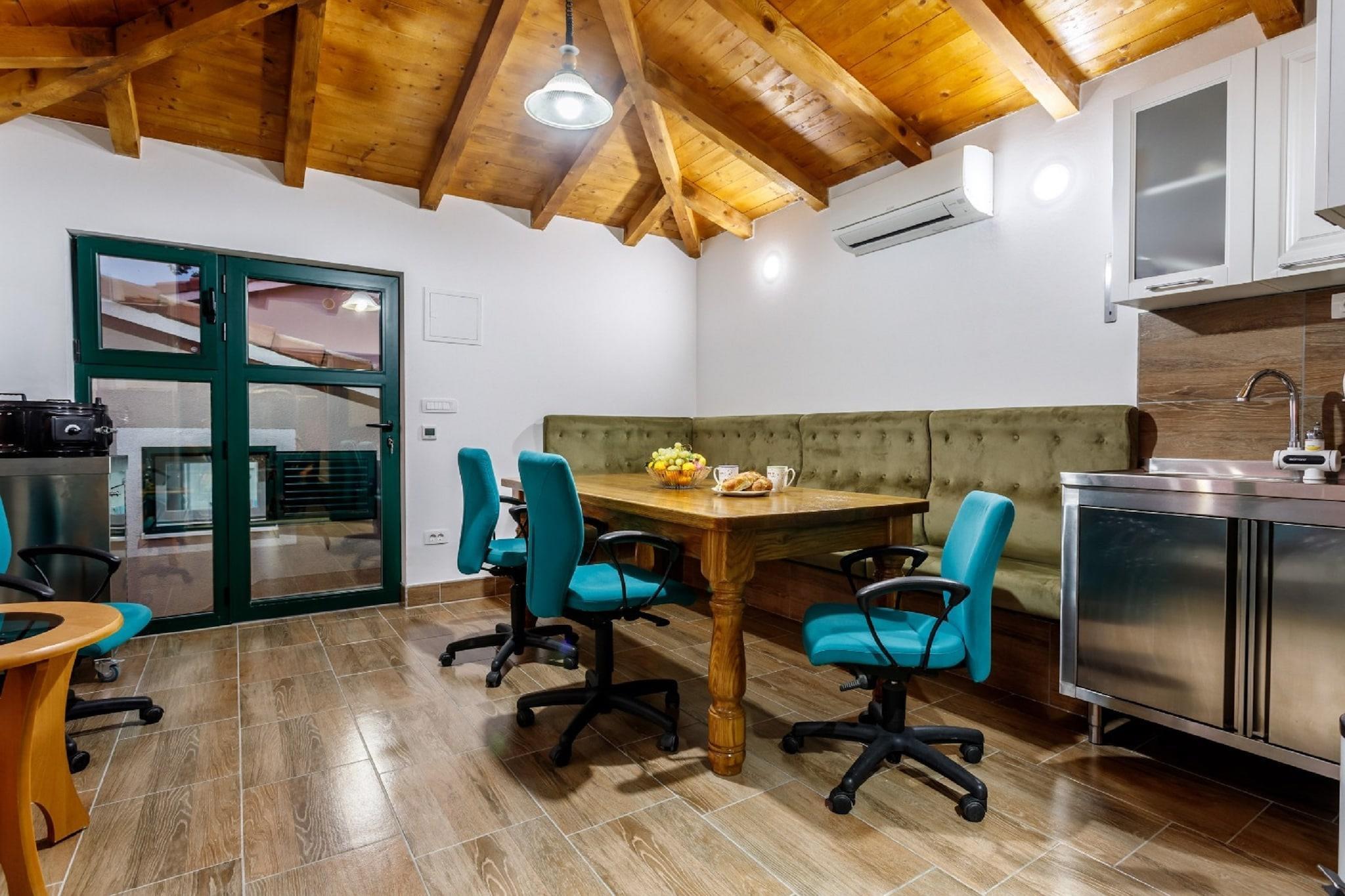 Hvis du planlægger en ferie med en stor gruppe eller en familie, skal dette rummelige sommerhus være dit sted. Hjemmet ligger i Neoric og kan rumme 12 gæster i dets 4 soveværelser. Der er en fælles opvarmet swimmingpool, der tilføjer stedets komfortkvotient. Du kan slugte den lokale mad fra de restauranter, der ligger 5 minutters kørsel væk. Ikke langt fra ligger supermarkedet, hvorfra du kan få et væsentligt dagligt for opholdet. Hvis du er en historiebuffet og er interesseret i at vide om den lokale historie i Split, kan du besøge Saint Domnius-katedralen. Der er tre spisestuer og to køkkener til et jævnt ophold i store grupper. Klimaanlægget holder temperaturen under kontrol. Middagen kan nydes under stjernerne på terrassen. En stor veranda har møbler og en gynge til at slappe af. Det har også en pejs til at holde hjemmet varmt. Der er et stort rekreationsrum med billard og et bordtennisbord. Splitlufthavn er 42,1 km væk.
