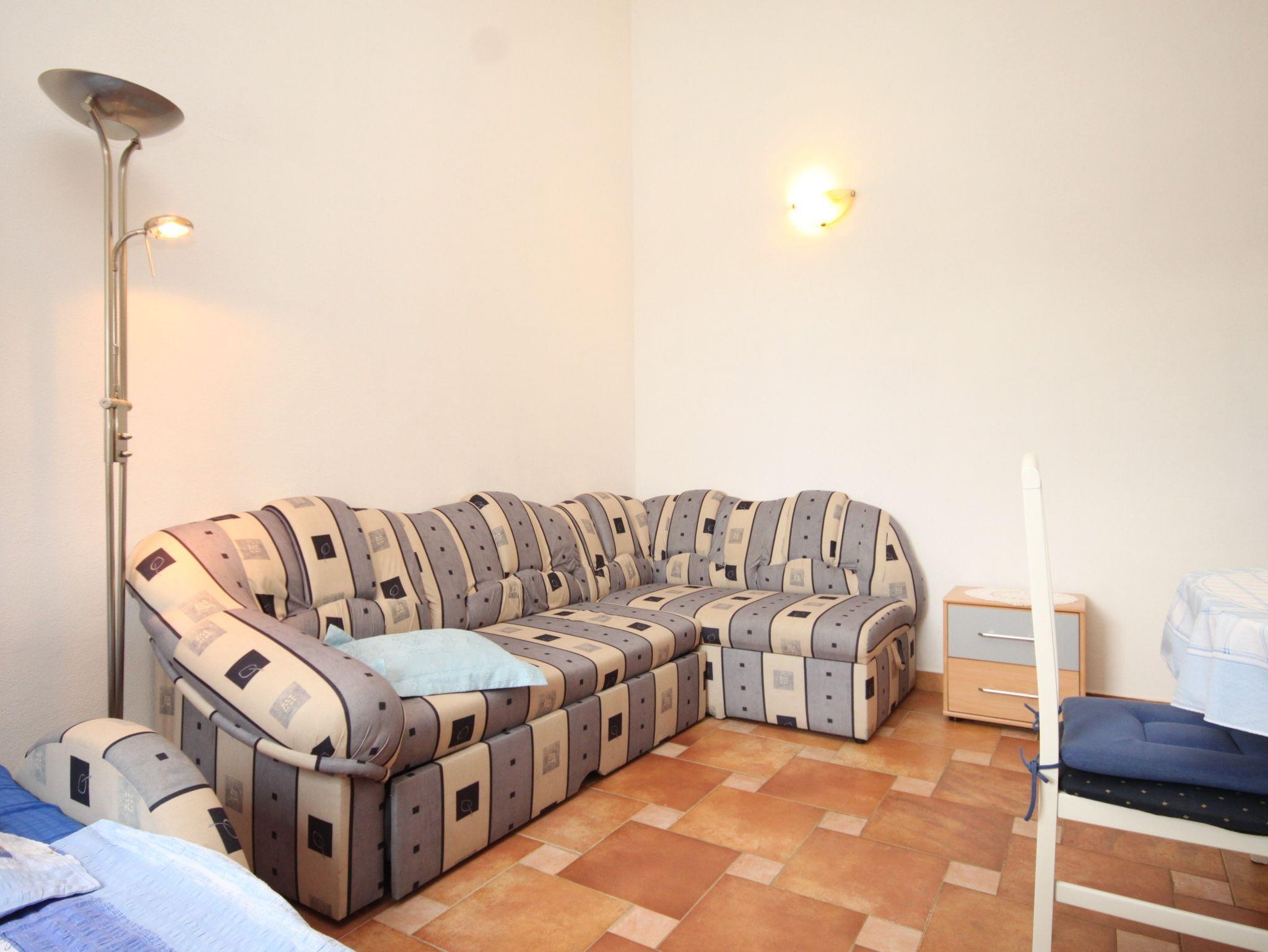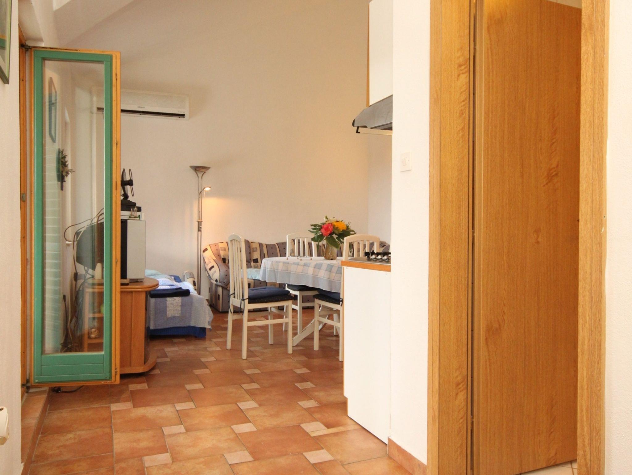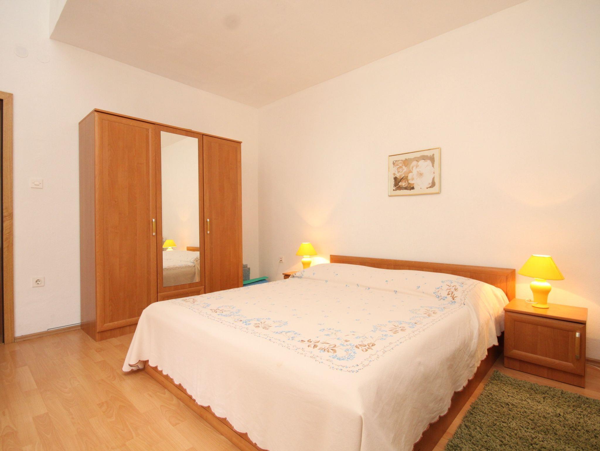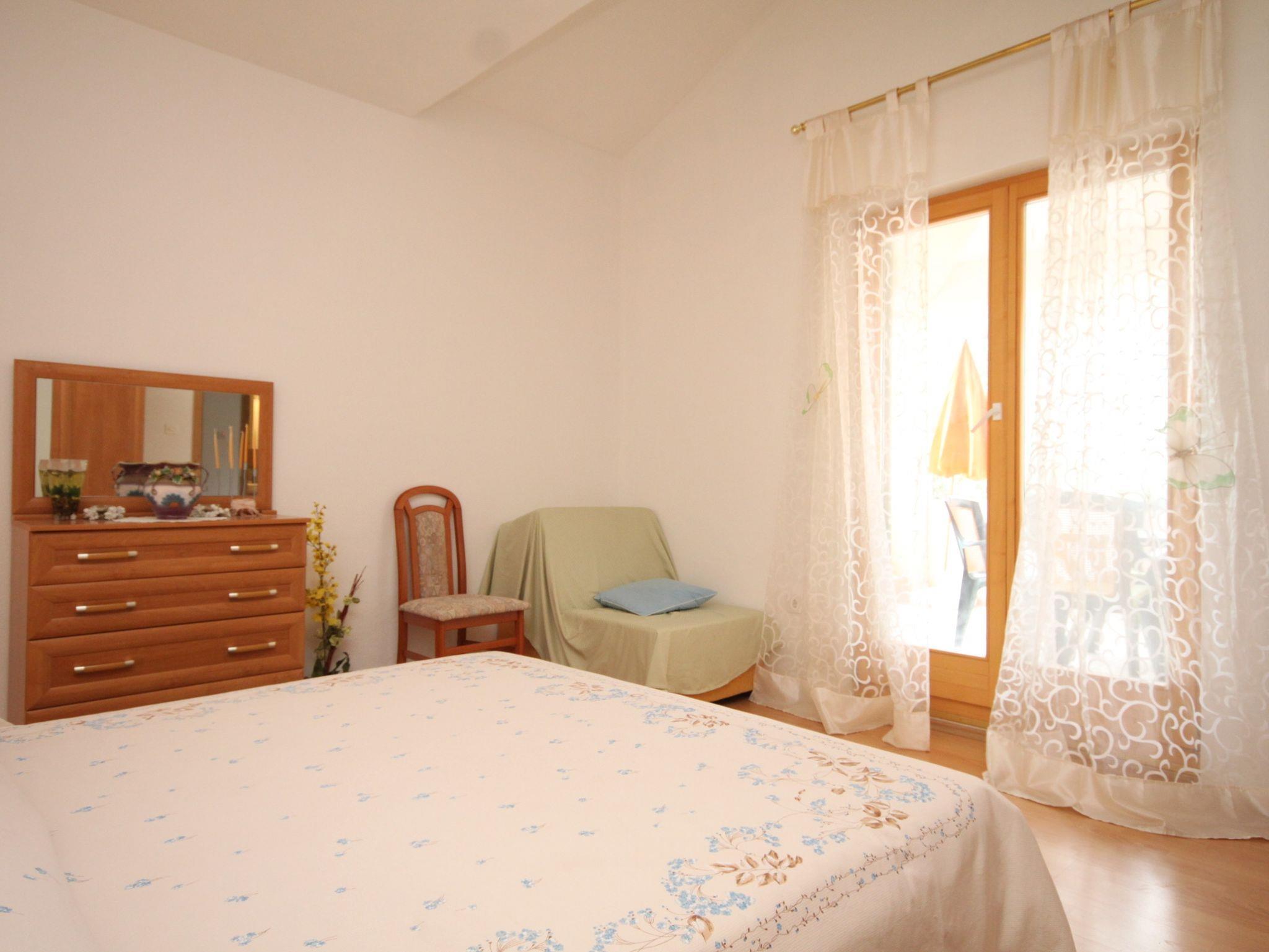 Ferienwohnung bietet Platz für 4 Gäste. Die Betten sind in Schlafzimmern, die es 1 gibt, und in Esszimmer, innerhalb einer Gesamtfläche von 43m2, angeordnet. Die Gäste haben eine eigene Terrasse zur Verfügung, auf der sie in warmen Sommernächten genießen können. Das Apartment bietet Meerblick. Es ist erlaubt, Speisen auf dem Gemeinschafts-Grill vorzubereiten. In der Unterkunftseinheit besteht die Möglichkeit des Mitbringens von Haustieren gegen Aufpreis. IM PREIS INBEGRIFFEN: Kurtaxe, Endreinigung, Klimatisierung, Parkplatz, Internet, Kinderbett, Zusatzbett, Bügeleisen, Bügelbrett, Föhn, tragbarer Grill, Sonnenschirm, Liegestühle. VERBINDLICHE ZUSÄTZLICHE KOSTEN: Aufzahlung für Kurzaufenthalte (prozentualer Zuschlag pro Nächtigungsanzahl: 30% - 1, 20% - 2, 10% - 3). UNVERBINDLICHE ZUSÄTZLICHE KOSTEN: Haustiere (5,00 € pro Nacht). Die Verfügbarkeit zusätzlicher Dienstleistungen in Ihrem reservierten Termin und die Preise derselben (falls nicht aufgeführt) müssen im Voraus überprüft werden. Zusätzliche Dienstleistungen die in der Zahlungsaufforderung nicht aufgeführt sind werden direkt beim Vermieter bezahlt, angenommen der Gast nutzt auch diese.