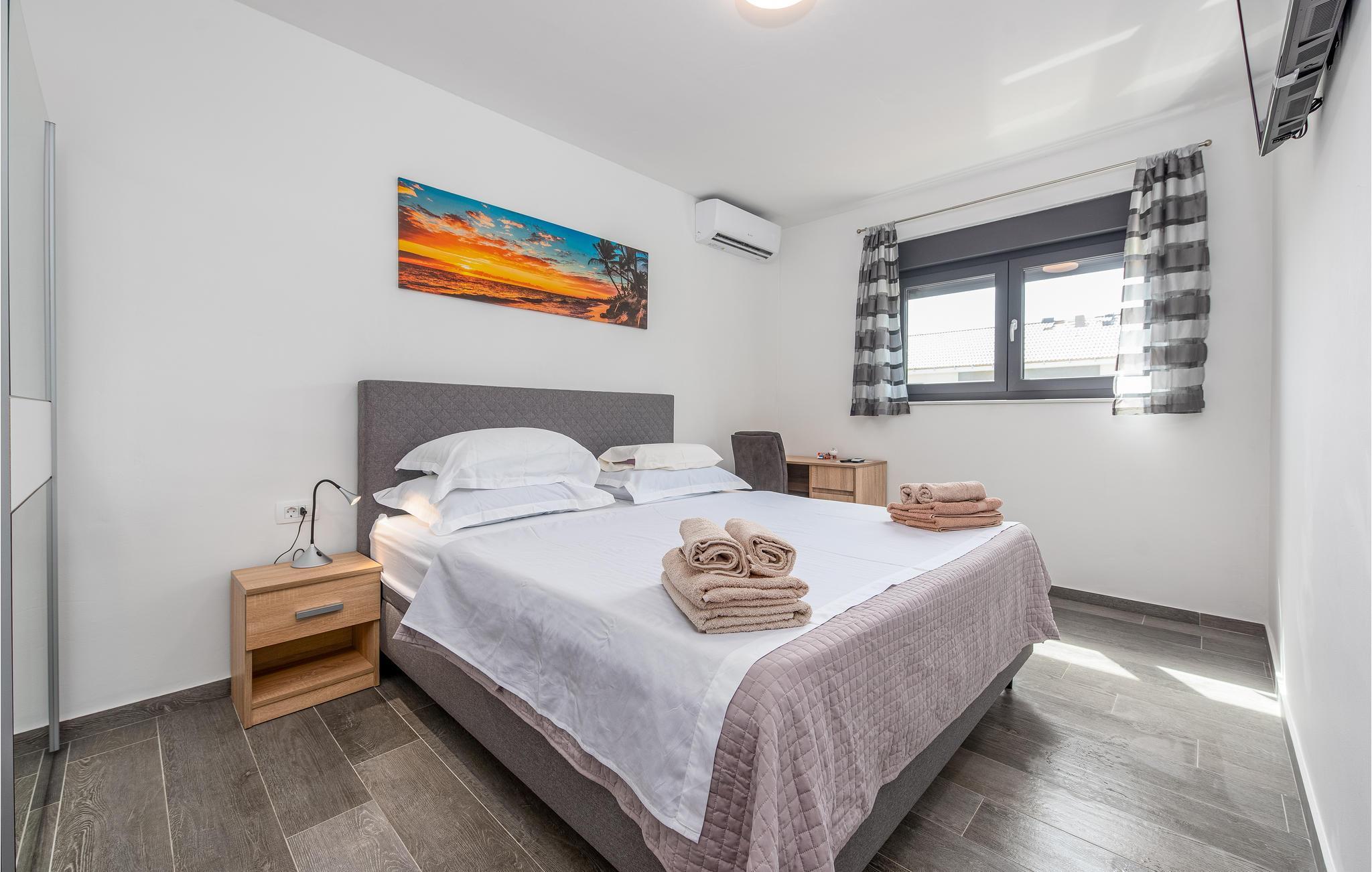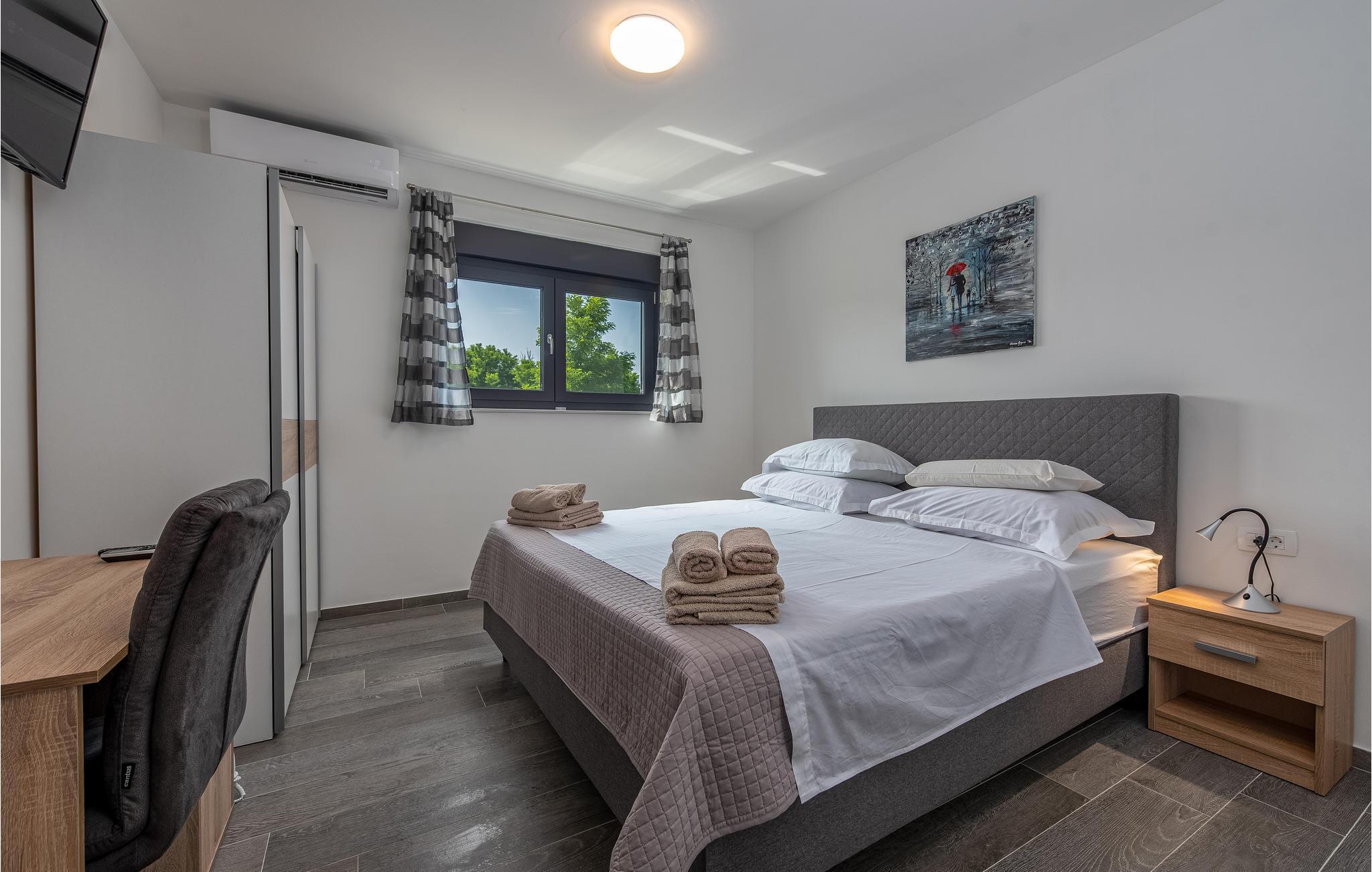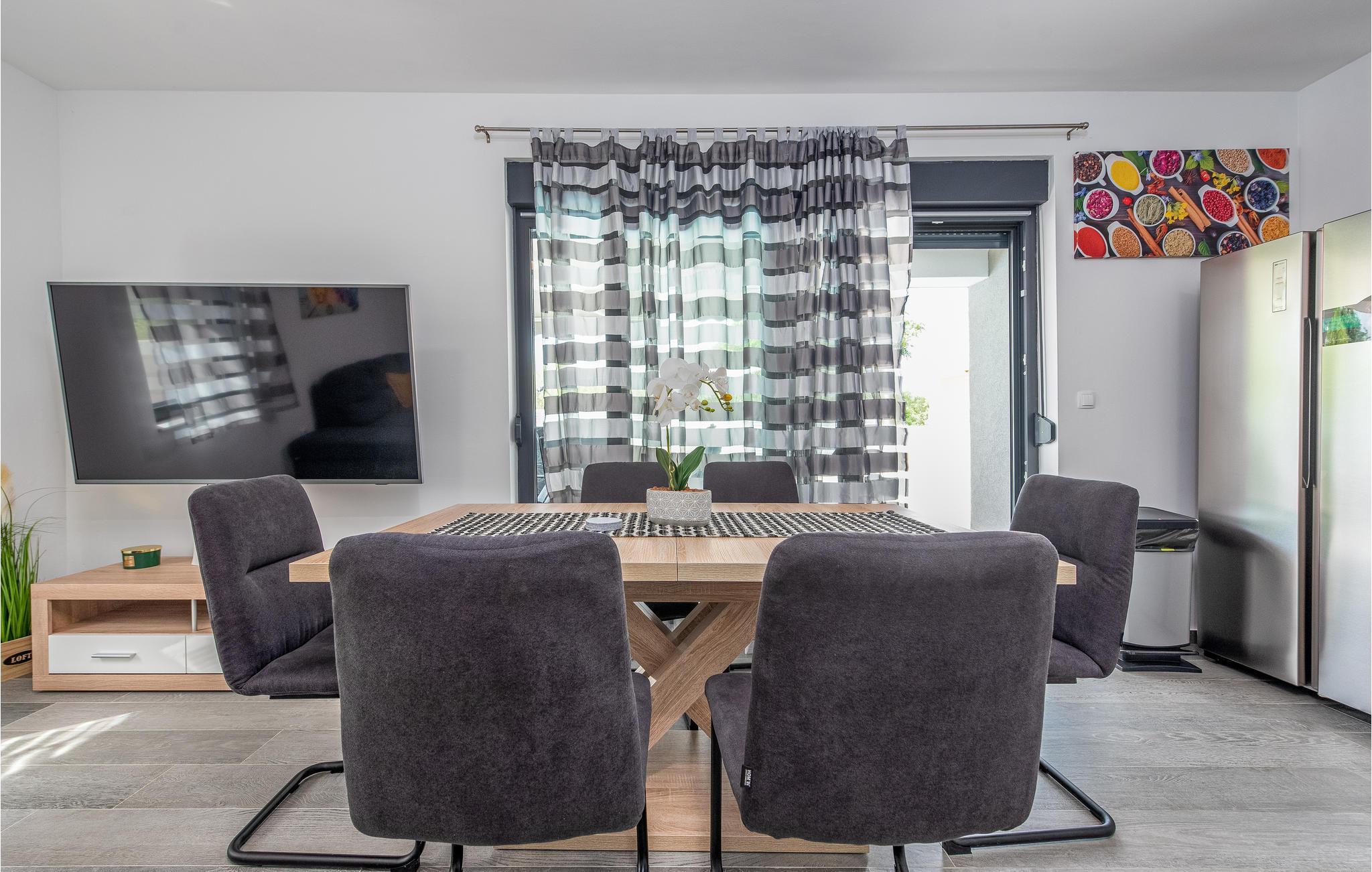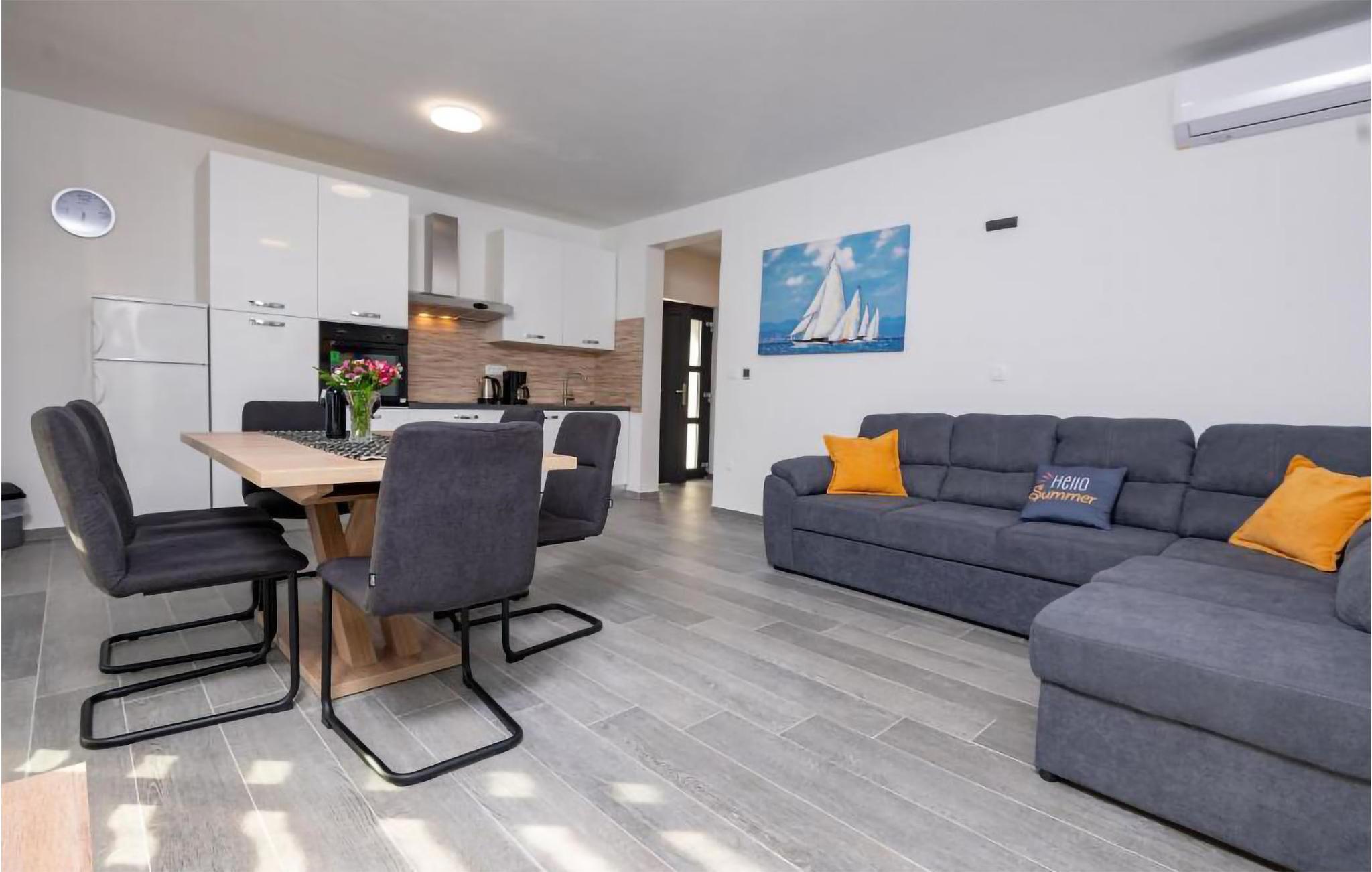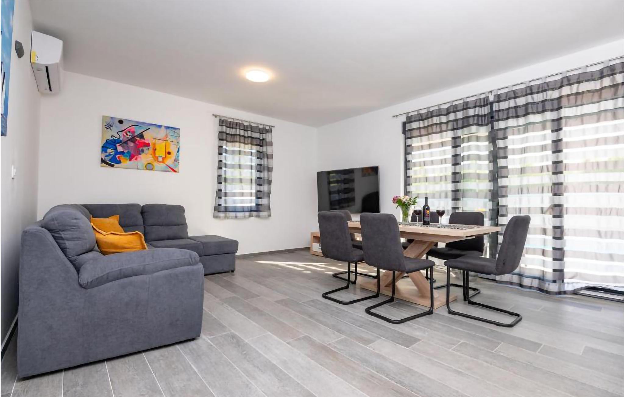 Dette moderne og familievenlige feriehus med pool byder jer velkommen nær stranden. Leder I efter den ideelle feriebolig til en afslappet ferie med en kort gåtur til havet og en kulturel og spændende by i nærheden? Så har I fundet det perfekte og moderne feriehus her. Det komfortable hus tilbyder jer alle bekvemmeligheder på ét plan, så I kan føle jer godt tilpas og hjemme her. Den skønne stue kombinerer madlavning, leg og afslapning, så I kan se børnene male, mens I fremtryller lækre retter i det lyse køkken. Nyd jeres måltider al fresco på den skyggefulde terrasse og hop derefter i poolen for at køle af. Mens børnene fortsætter med at lege i vandet, kan I føle jer godt tilpas på en liggestol. I kan også solbade i fred på tagterrassen, hvorfra I også kan få et glimt af havet. Grib jeres strandtaske og gå en tur til den nærliggende stenstrand. Dyk ned i havet og hop i bølgerne med jeres børn. Spil bold på stranden og slap af. Udforsk området på de andre dage af jeres ferie. Besøg byen Nin eller kør over broen til øen Vir. I vil også nyde en dag i Zadar og efterlade mange oplevelser og indtryk i jeres hukommelse.