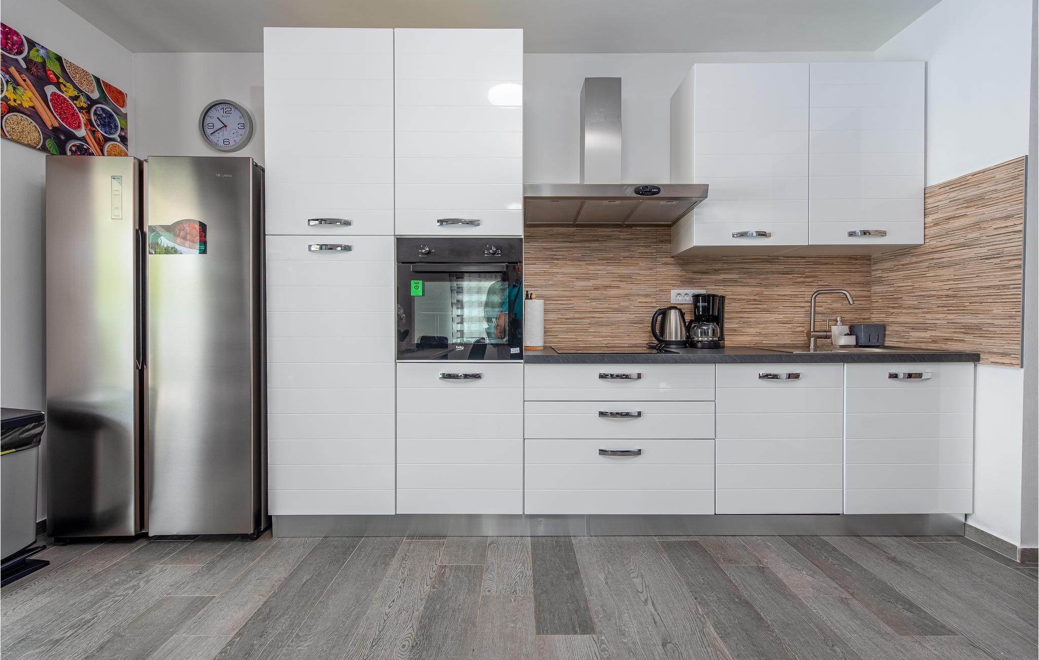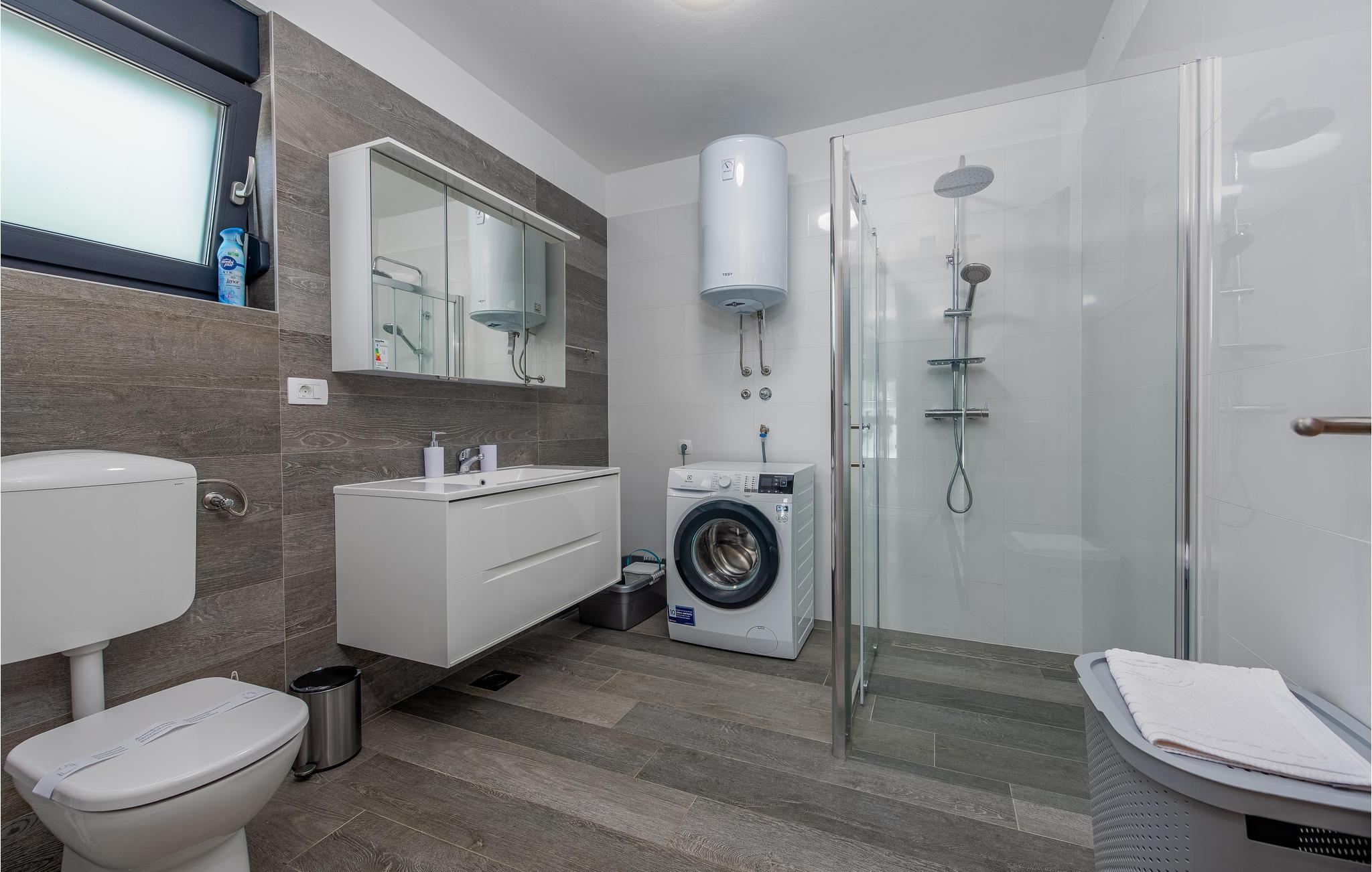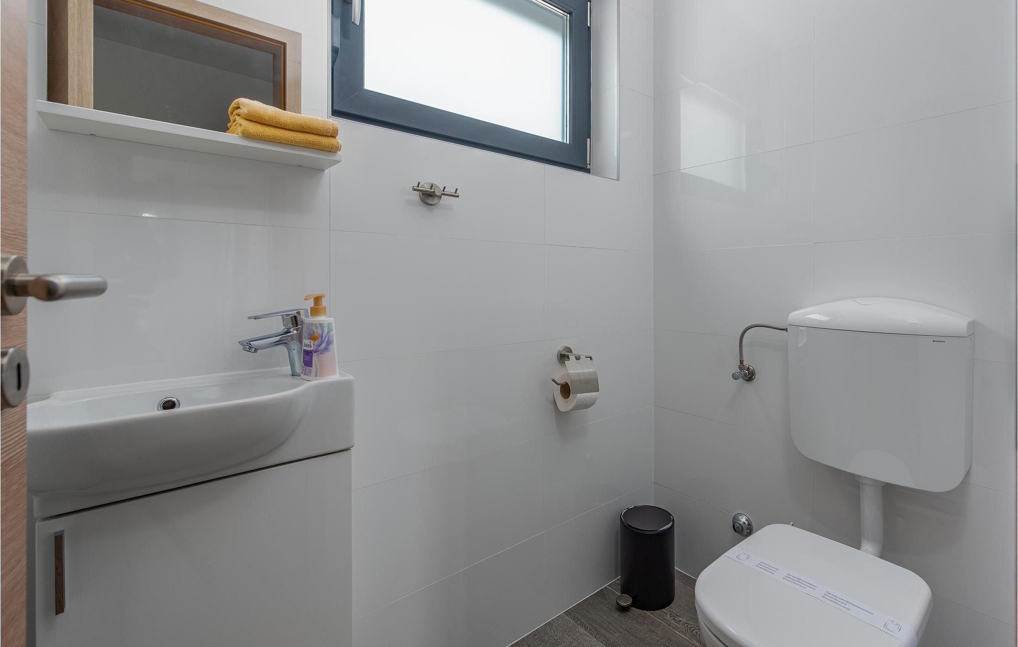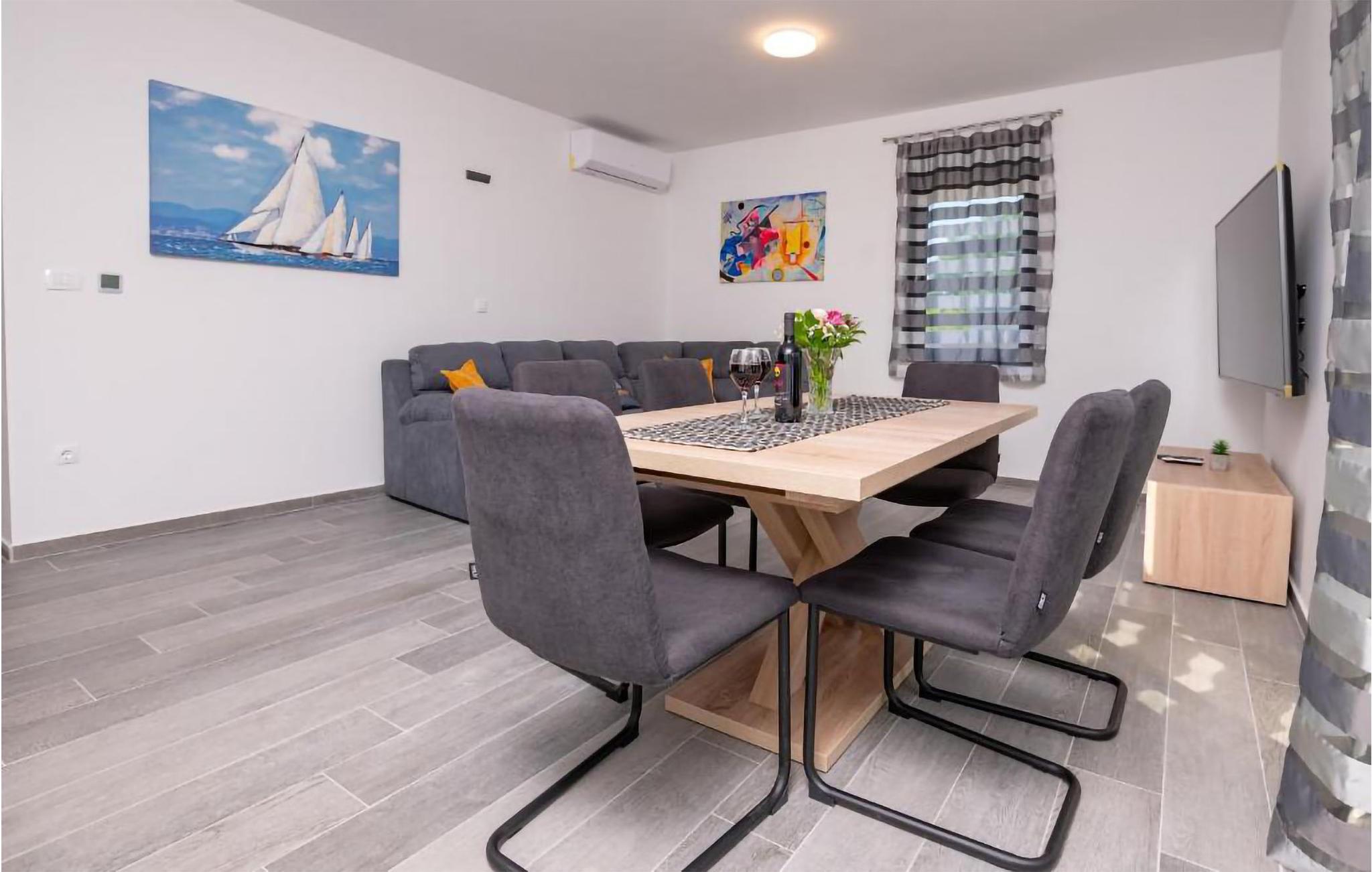 Dette moderne og familievenlige feriehus med pool byder jer velkommen nær stranden. Leder I efter den ideelle feriebolig til en afslappet ferie med en kort gåtur til havet og en kulturel og spændende by i nærheden? Så har I fundet det perfekte og moderne feriehus her. Det komfortable hus tilbyder jer alle bekvemmeligheder på ét plan, så I kan føle jer godt tilpas og hjemme her. Den skønne stue kombinerer madlavning, leg og afslapning, så I kan se børnene male, mens I fremtryller lækre retter i det lyse køkken. Nyd jeres måltider al fresco på den skyggefulde terrasse og hop derefter i poolen for at køle af. Mens børnene fortsætter med at lege i vandet, kan I føle jer godt tilpas på en liggestol. I kan også solbade i fred på tagterrassen, hvorfra I også kan få et glimt af havet. Grib jeres strandtaske og gå en tur til den nærliggende stenstrand. Dyk ned i havet og hop i bølgerne med jeres børn. Spil bold på stranden og slap af. Udforsk området på de andre dage af jeres ferie. Besøg byen Nin eller kør over broen til øen Vir. I vil også nyde en dag i Zadar og efterlade mange oplevelser og indtryk i jeres hukommelse.