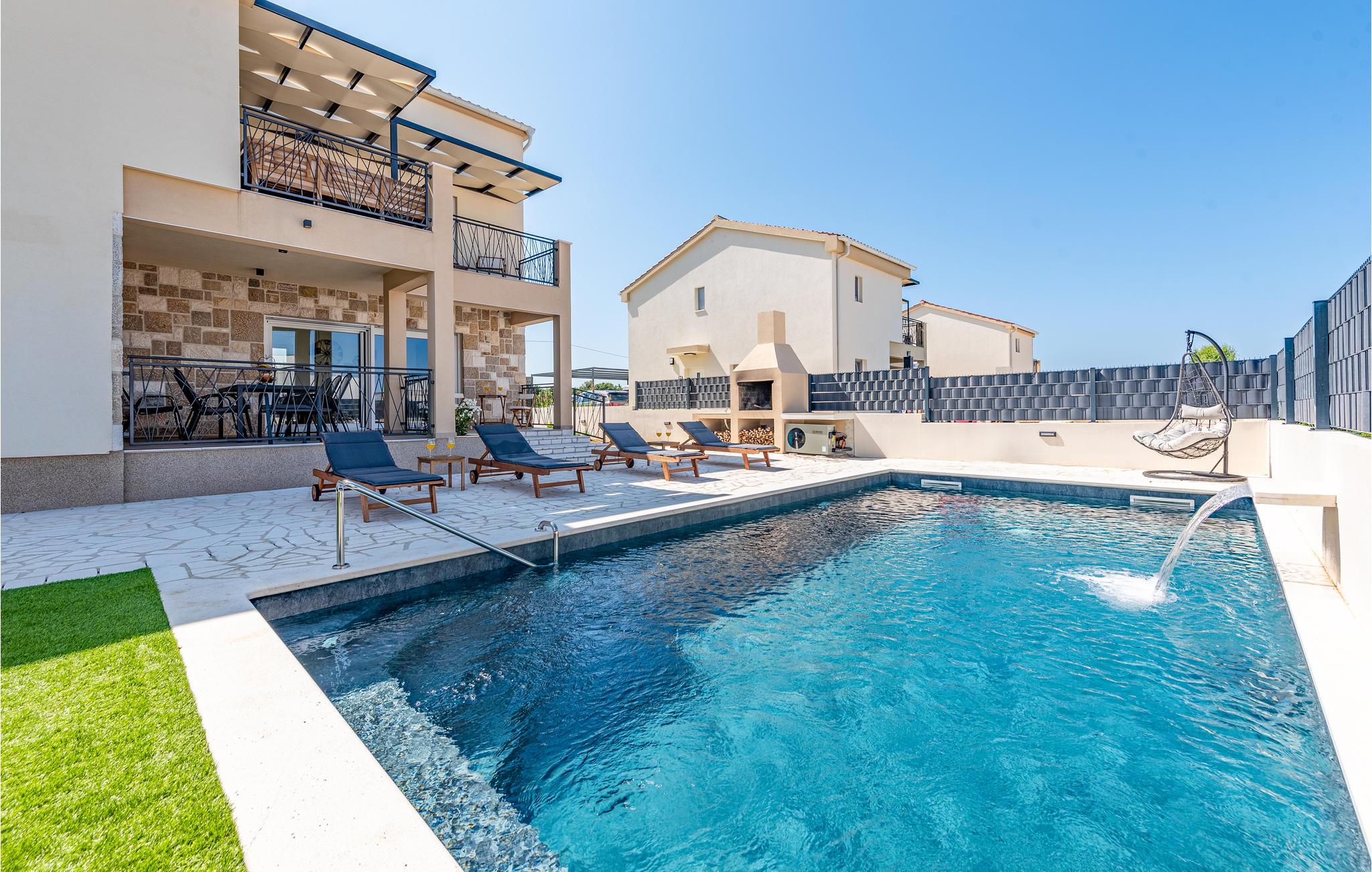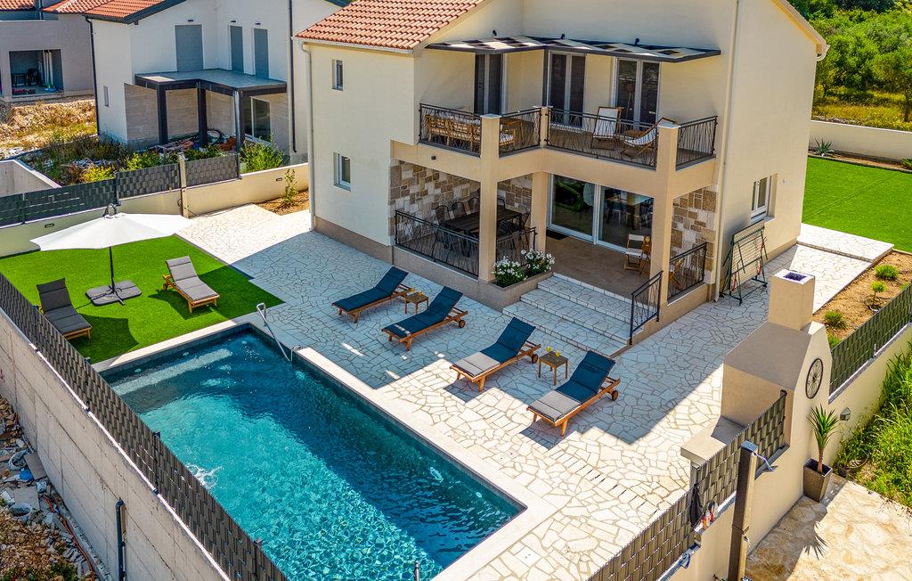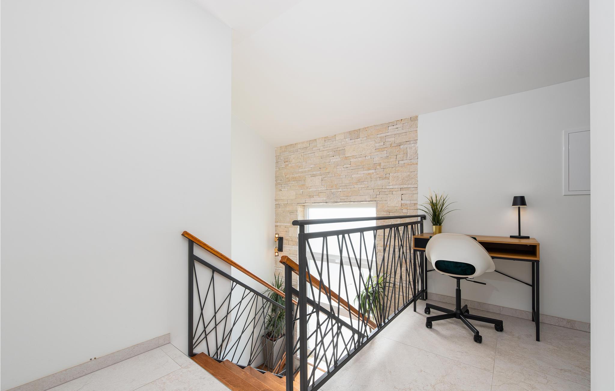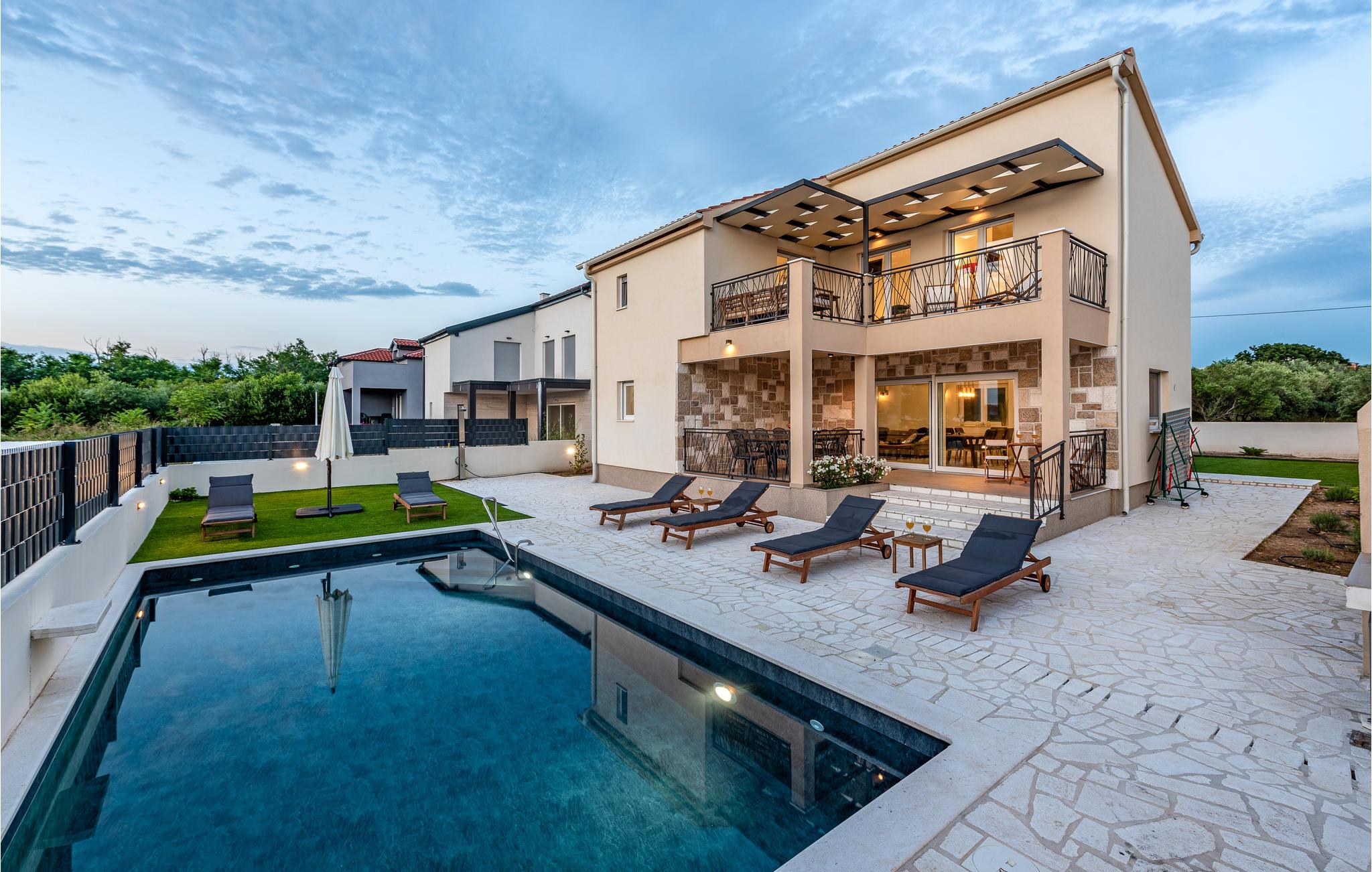 Slap af nær stranden i dette smukke og moderne feriehus med pool. Velkommen til Vrsi og dette indbydende hus i to etager. Du og din familie kan slappe af her og nyde husets bekvemmeligheder. Jordnære og lyse farver og komfortabel indretning gør boligen til dit andet hjem og giver dig gode muligheder. Sving træskeerne i køkkenet eller spil brætspil ved spisebordet. Både på 1. sal og i stueetagen kan du nyde de rummelige terrasser, mens du spiser eller slapper af. Fra den øverste terrasse kan du ikke kun se dine kære i poolen, men også få et glimt af havet. Vrsi er det perfekte sted at opdage det smukke område nord for Zadar. Du er ikke langt fra alle mulige forskellige strande. Især på øen Vir er der romantiske små bugter og smukke landskaber, der skal opdages. Zadar ved kysten mod syd er ideel til en bytur. Benyt dig af det rige gastronomiske tilbud og lad dig overraske af de mange arrangementer i sommermånederne. Solnedgangen fra Istarska obala er især værd at se. Bliv fortryllet af farvernes spil i naturen!