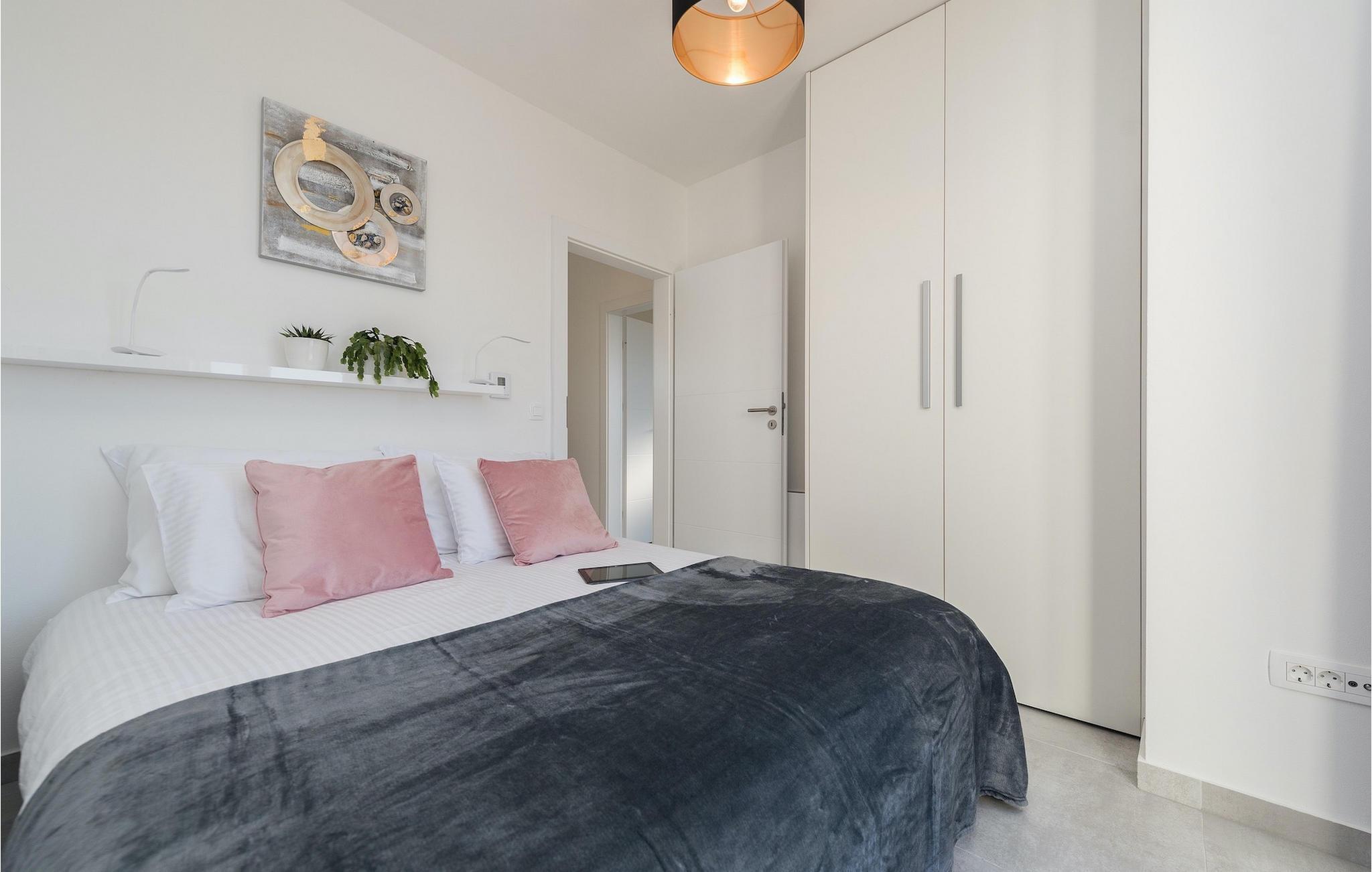 Kommer du nu ind i husets indre, står du i den lyse, åbne opholdsstue. Her hænger stuen, spisepladsen og det fuldt udstyrede, moderne køkken sammen. Masser af interessante detaljer vil fange dit øje. Det lille spa-område med sauna er også på dette niveau. De 4 smarte soveværelser er på øverste etage. Hver af dem har sit eget badeværelse. Terrassen med jacuzzi, som byder på en vidunderlig udsigt over havet, er særlig smuk. Dette sted er bare perfekt til at nyde den første kop te om morgenen eller se på stjernehimlen om aftenen.