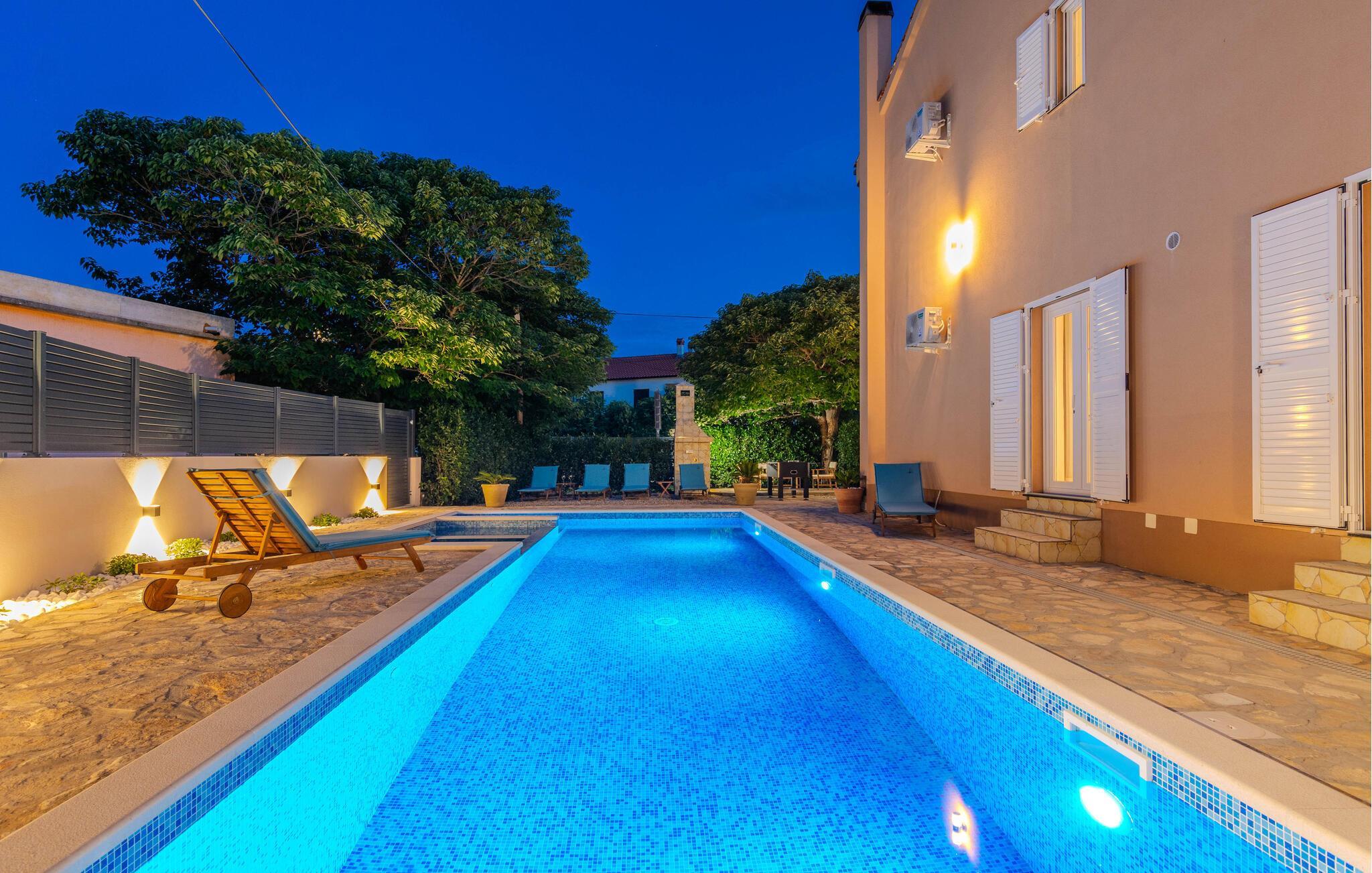 Se frem til årets bedste uger i dette rummelige og lækre hus med pool og mange faciliteter i centrum af Nin.