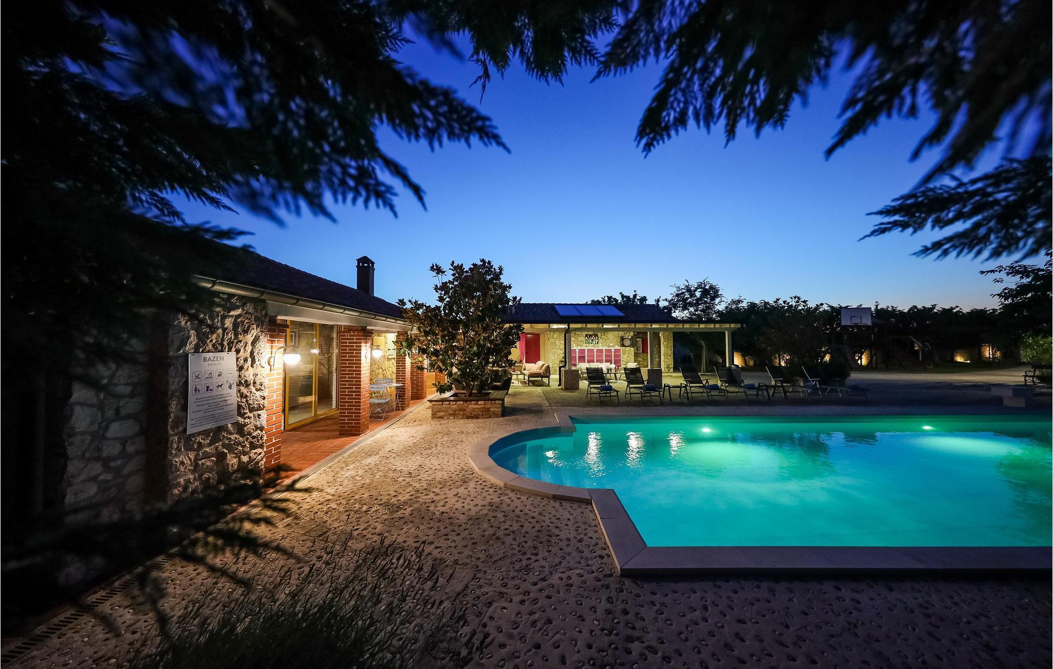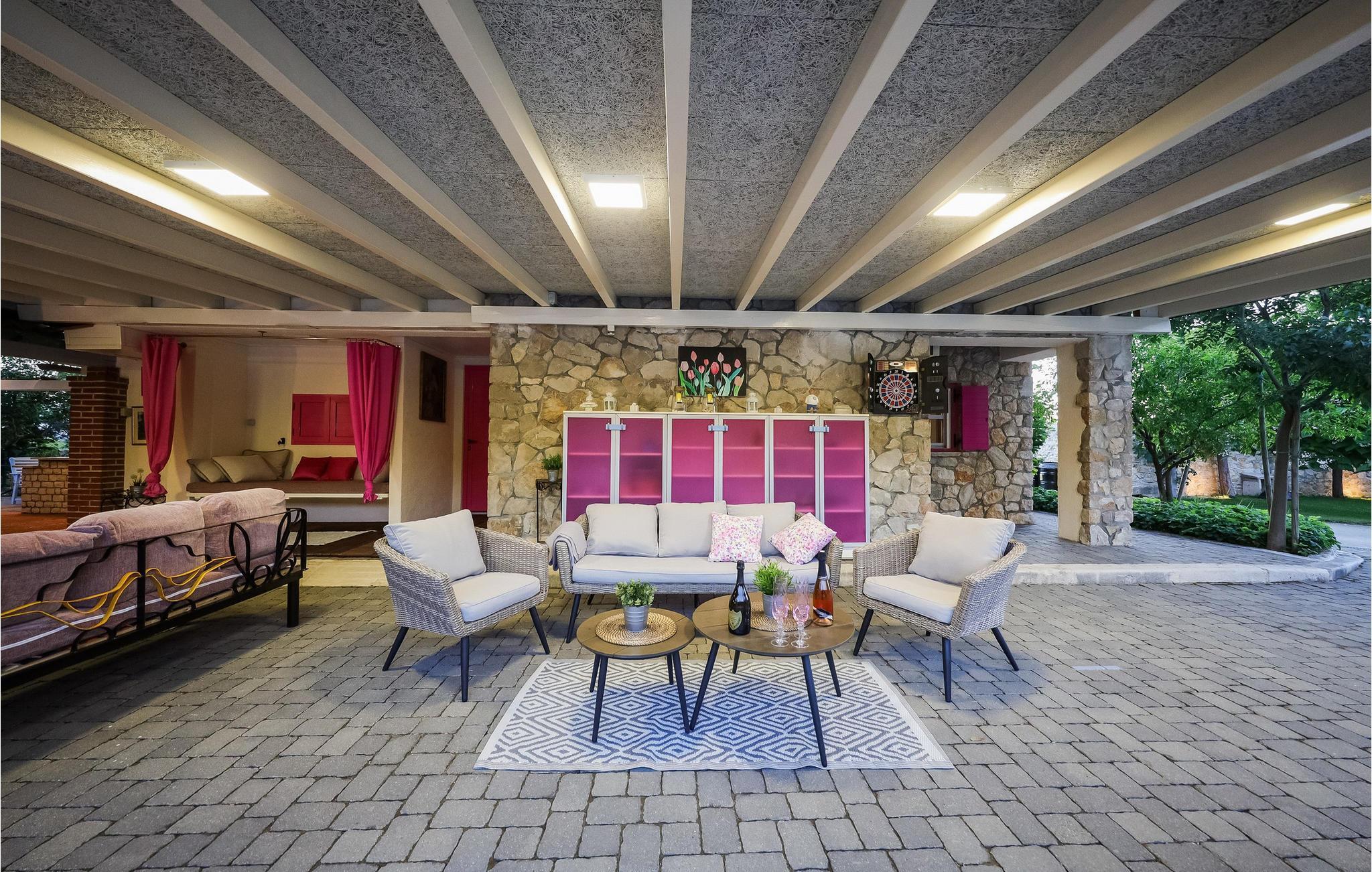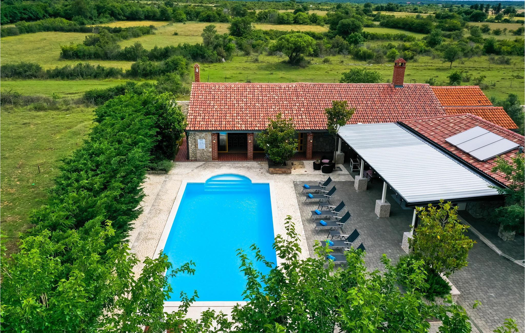 Tilbring en uforglemmelig ferie i dette rummelige feriehus med pool og spabad. Villa Pequena Perla ligger i den magiske dalmatiske landsby Poljica og tilbyder rigelig plads til en hyggelig ferie med venner eller familie. Den rustikke og hyggelige atmosfære skjuler luksuriøse, moderne faciliteter. Fremtryll lækre måltider i det rummelige køkken med venner og nyd dem i en hyggelig atmosfære. Saml jer til harmoniske spilleaftener eller fordyb jer i en spændende bog på jeres yndlingssted. Takket være den rolige beliggenhed væk fra travlheden kan I også nyde absolut privatliv i det atmosfæriske udendørsområde. Tag en afslappende svømmetur i den store pool om morgenen, genoplad batterierne på liggestolen, og lad børnene have det sjovt med de dejlige legeområder. Snak i den hyggelige lounge over en dalmatisk vin fra vinkælderen, slap af i spabadet, og forfin jeres grillretter med friske grøntsager fra haven. Gå gennem de charmerende gamle gader i Nin, besøg verdens mindste katedral, og prøv dalmatiske specialiteter i en traditionel taverna. Svøm på familievenlige sandstrande eller slap af i det berømte helbredende mudder. Bliv fortryllet af Havorglet og "Hilsen til solen" i Zadar, tag en bådtur til Kornatiøerne, vandre gennem spektakulære kløfter i Paklenica Nationalpark eller se vandfaldene i Krka Nationalpark.